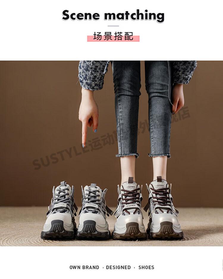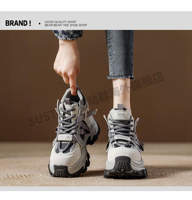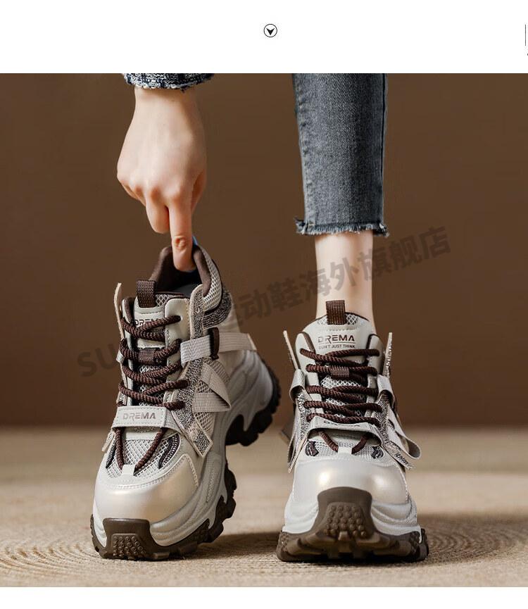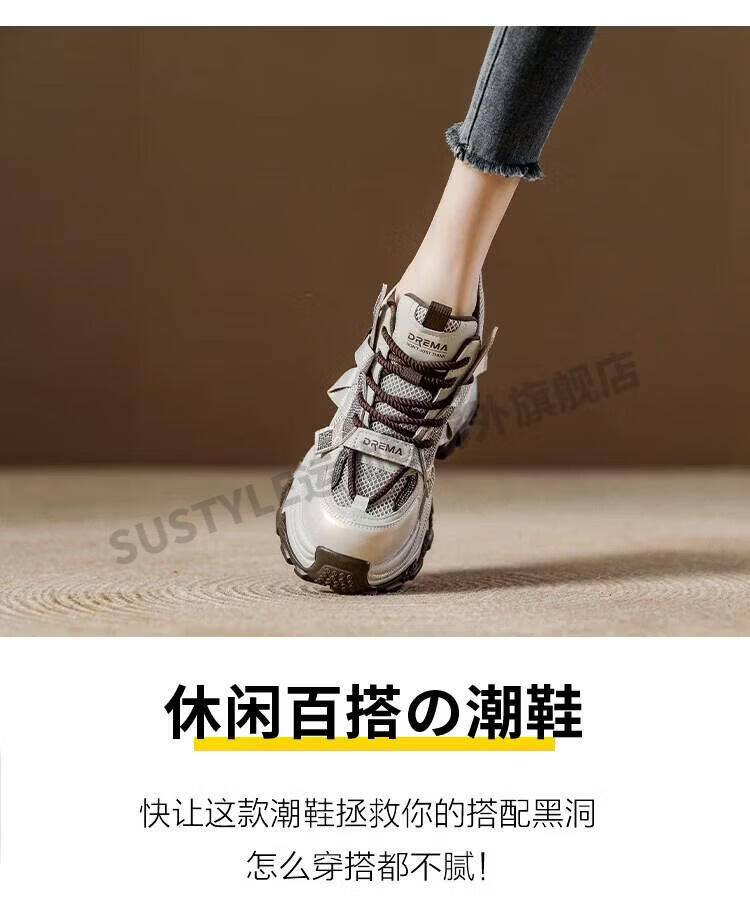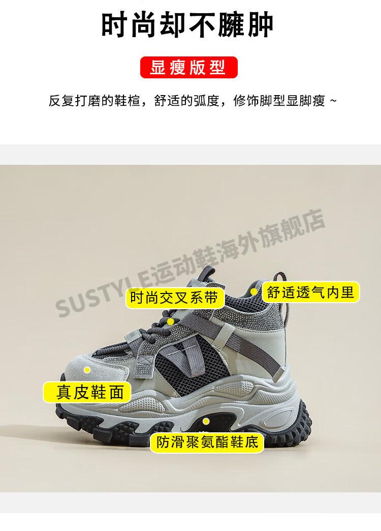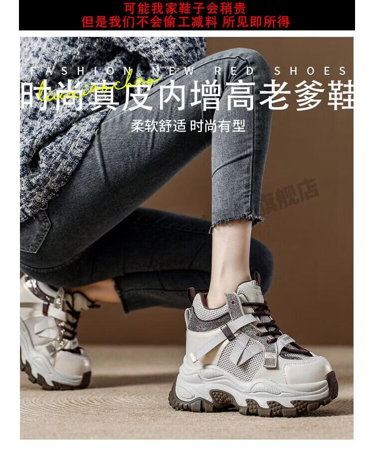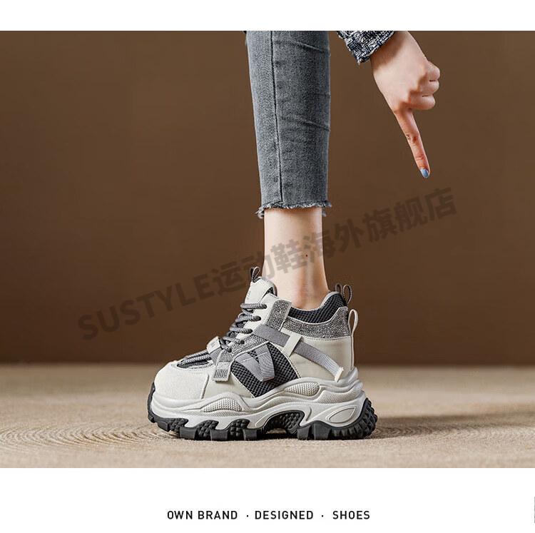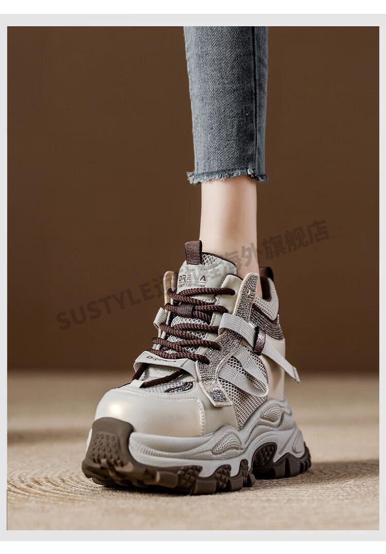 SUSTYLE luxury high-end brand small daddy shoes for women with invisible inner height increase of 12 cm women's shoes 2025 winter new style beige gray 37