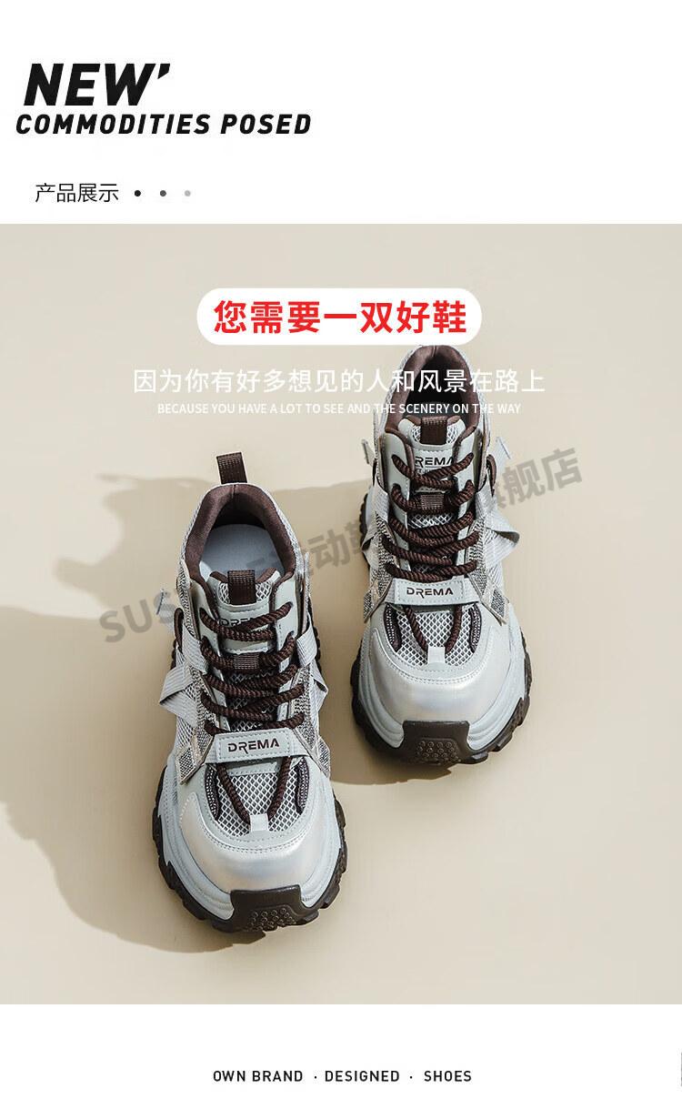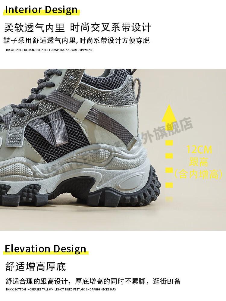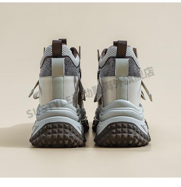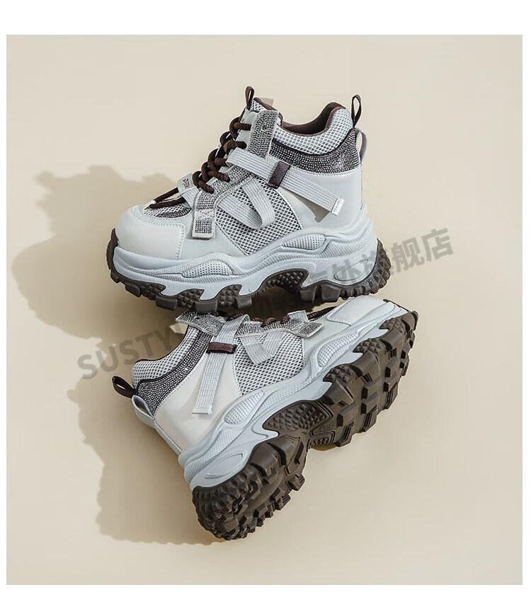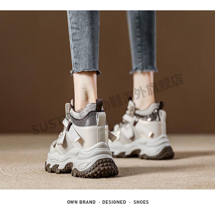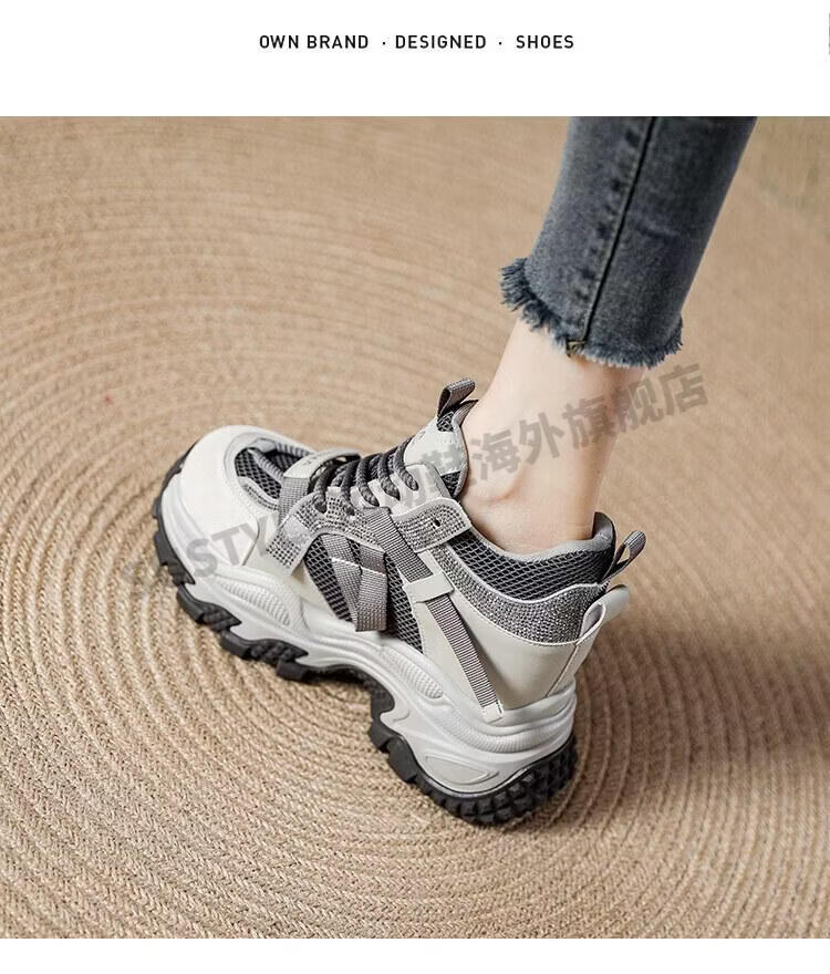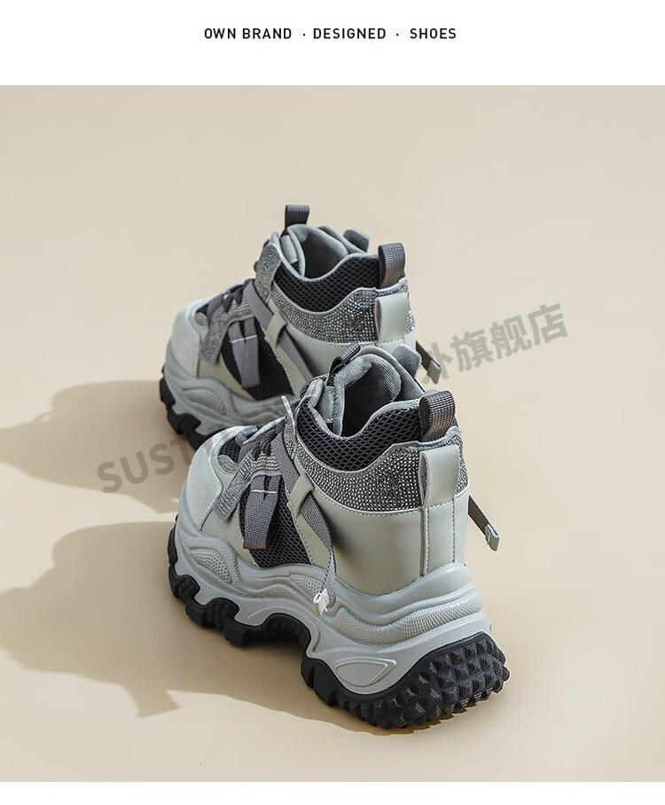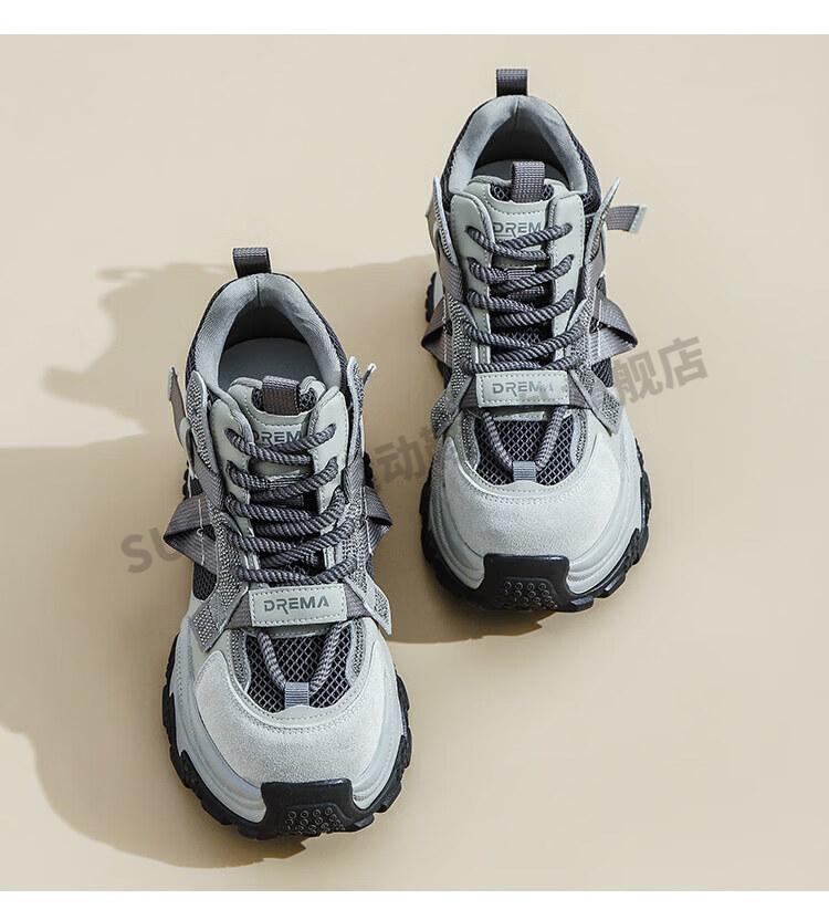 SUSTYLE luxury high-end brand small daddy shoes for women with invisible inner height increase of 12 cm women's shoes 2025 winter new style beige gray 37