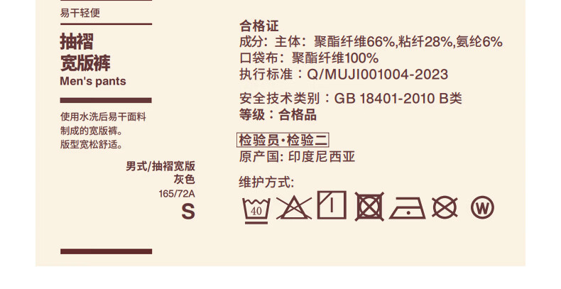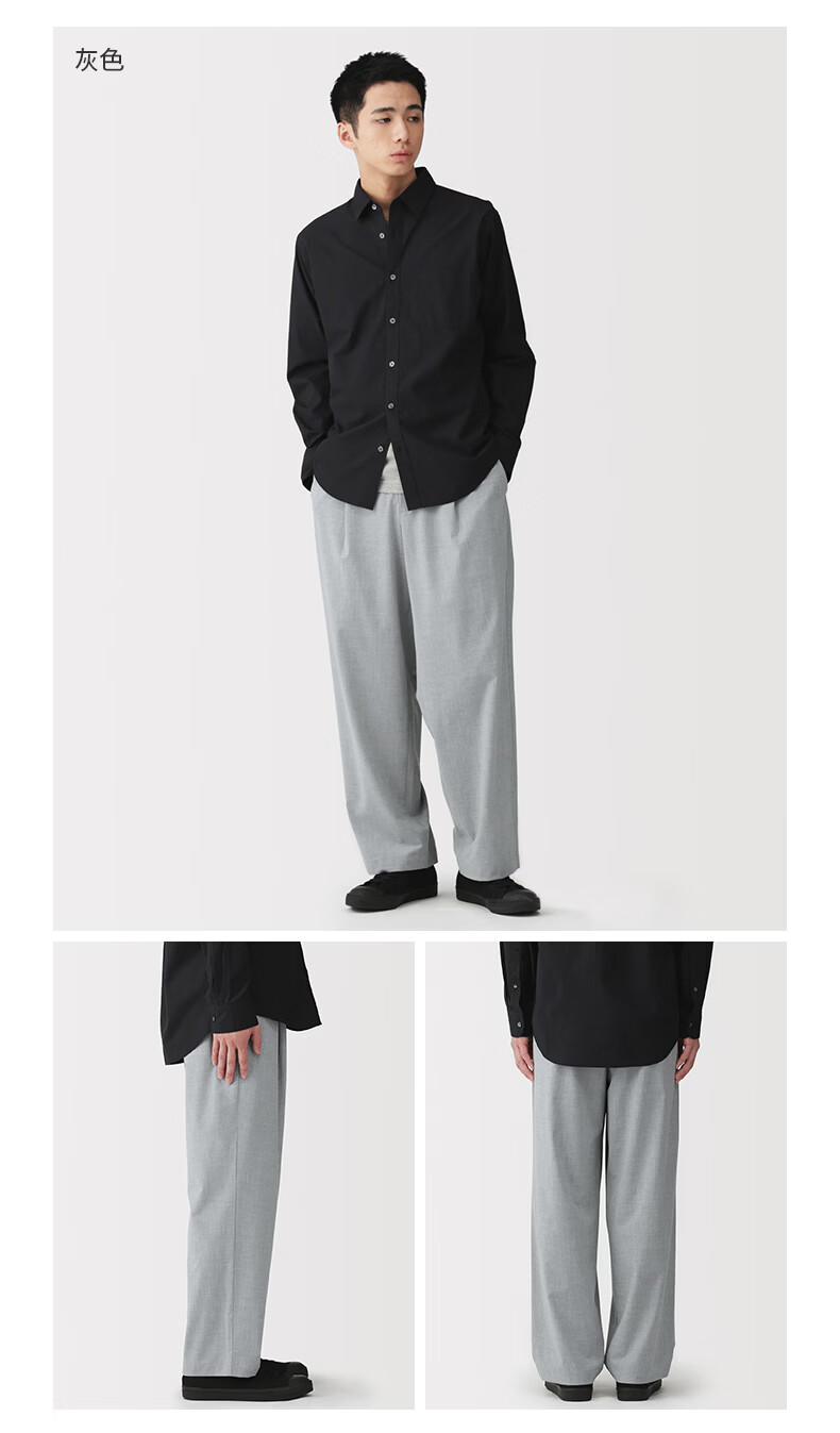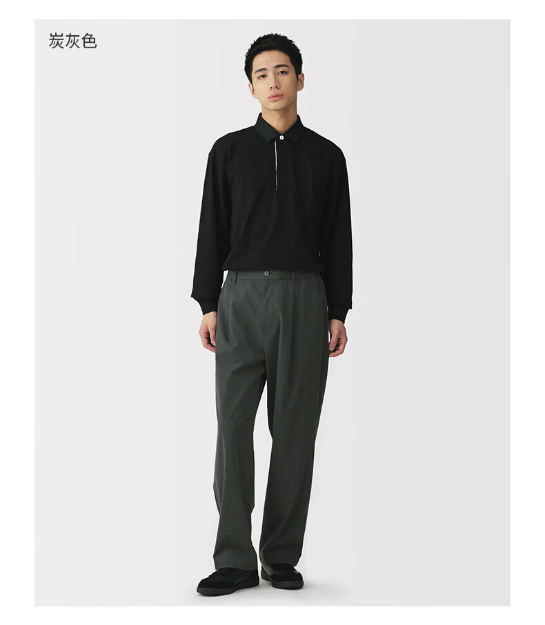 MUJI Men's Easy-drying Lightweight Pleated Wide Pants Men's Long Pants 26 Spring Men's Wear AE10XA6S Black L (175/88A)
