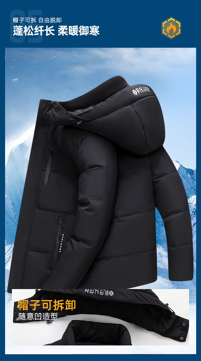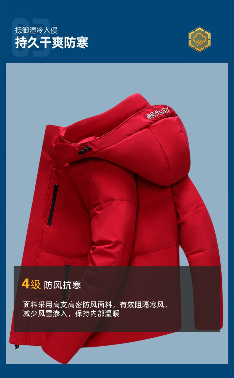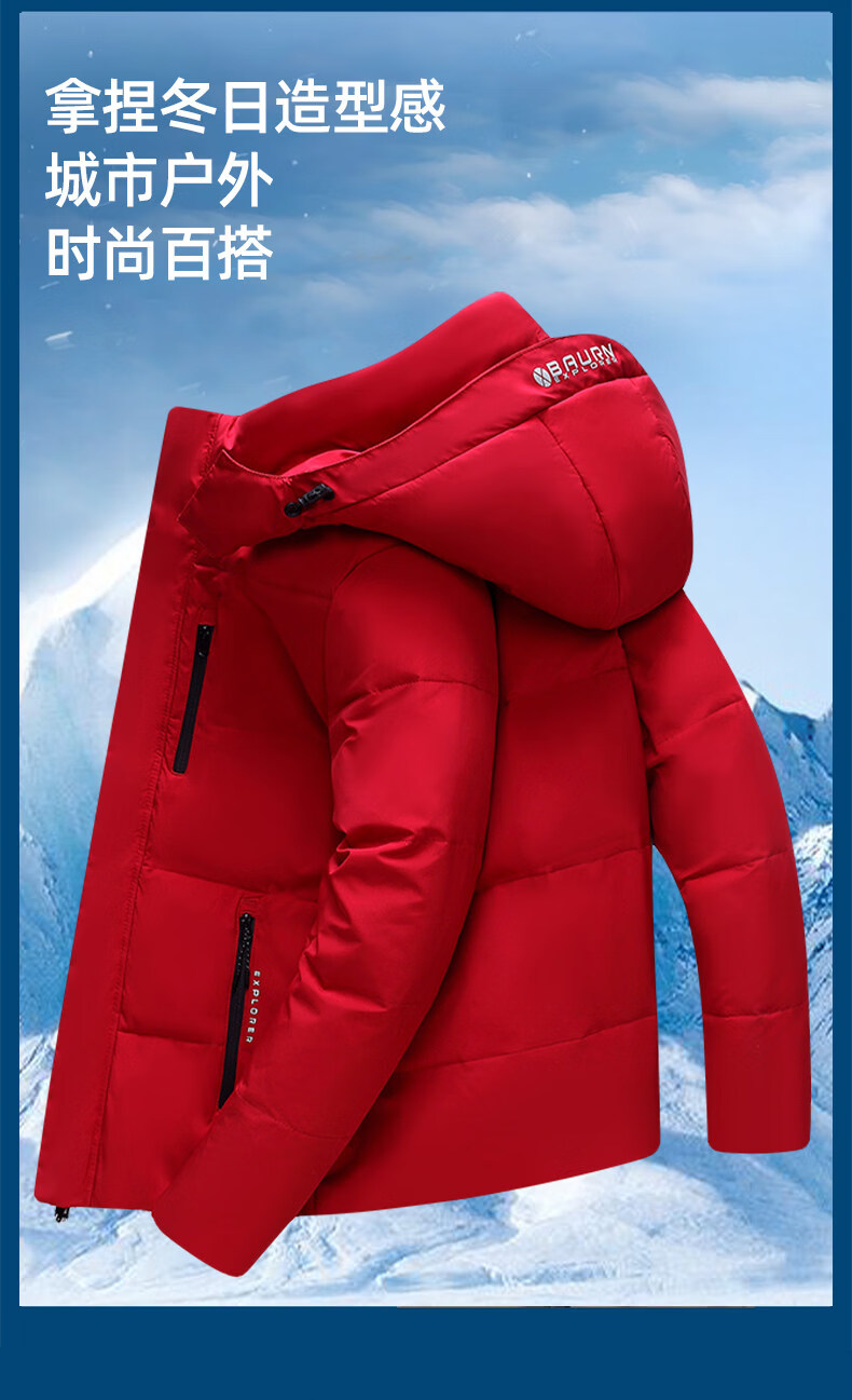 Hengyuanxiang white duck down jacket men's short removable hood thickened and warm winter middle-aged and elderly father's jacket red new national standard 90 white duck down M 95-120Jin Jin equals 0.5 kg