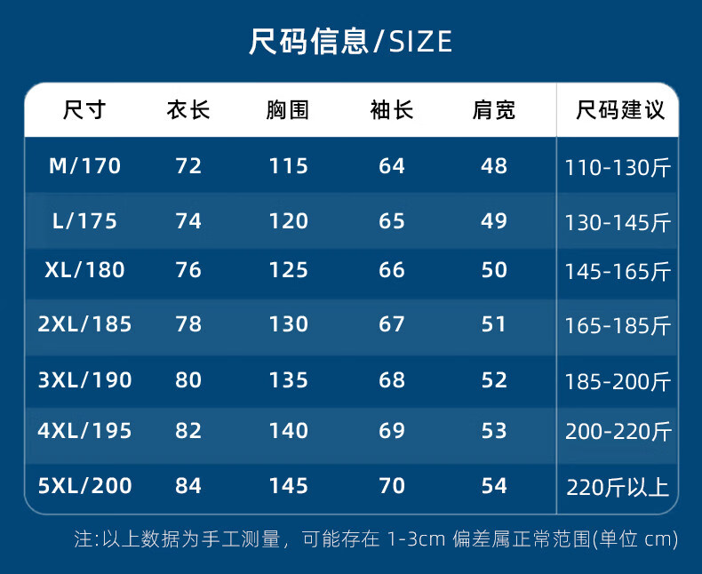 China (cm) 165 / 88-90 170 / 96-98 175 / 108-110 180 / 118-122 185 / 126-130