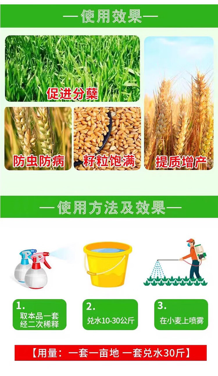 Wheat package, one spray, three preventions, wheat production increase, disease prevention, antibacterial, insecticide, anti-falling, strong seedlings, increase production package, eight-in-one (1 mu package)