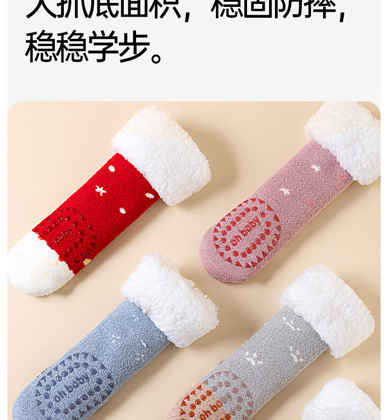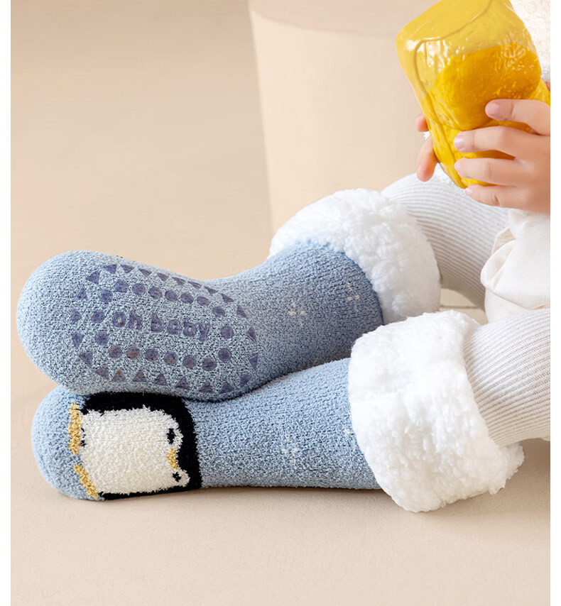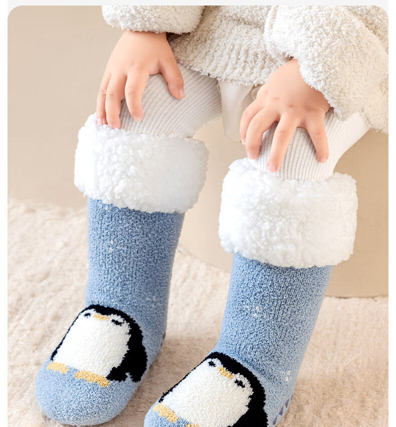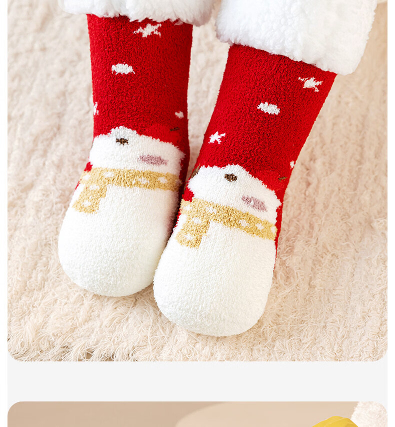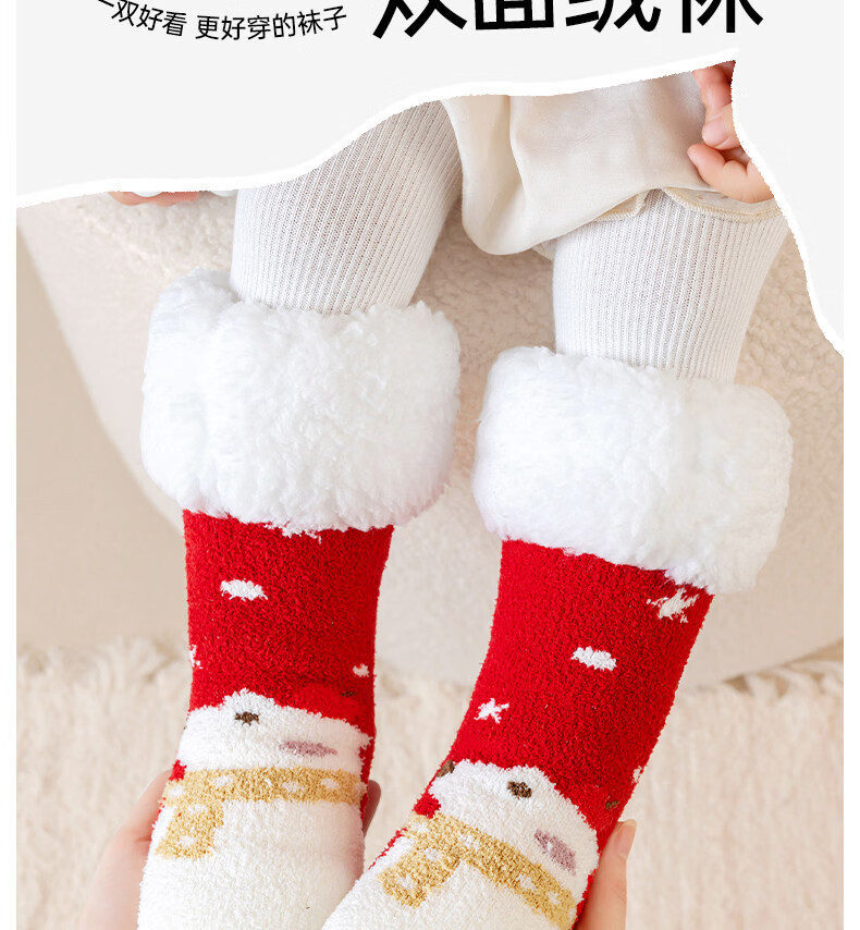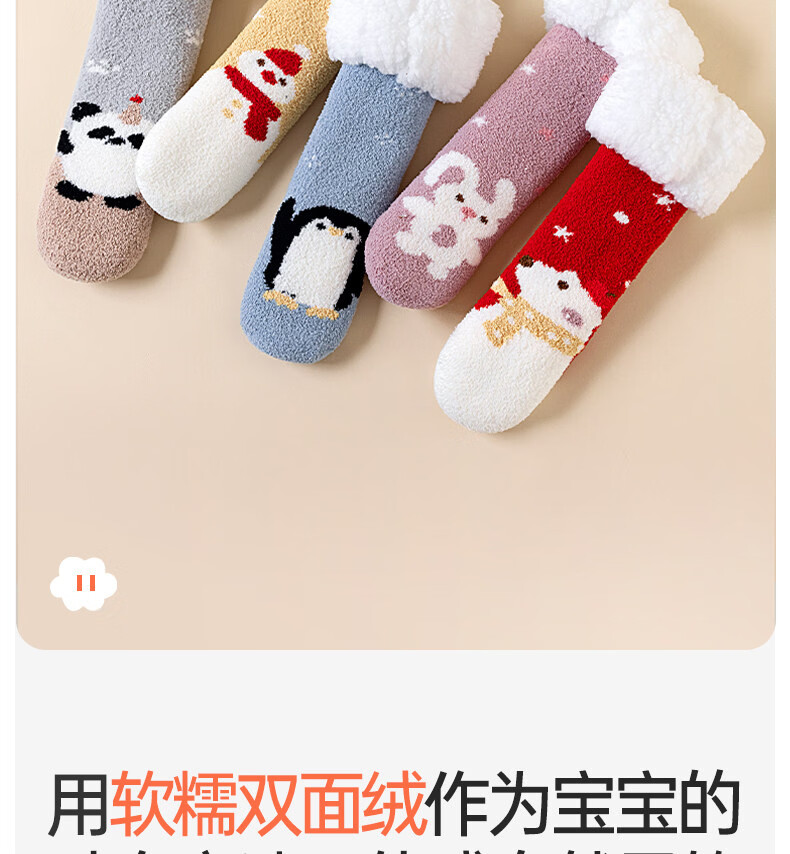 Cotton children's socks plus velvet cartoon baby socks unisex winter warm thickened double-sided velvet super soft cold-resistant winter socks QDD5179-pink + red warm double-sided velvet one size fits all - (sock length 30CM)