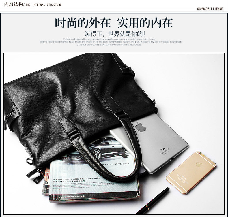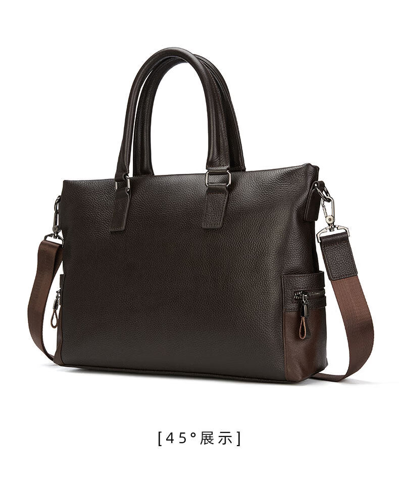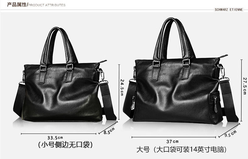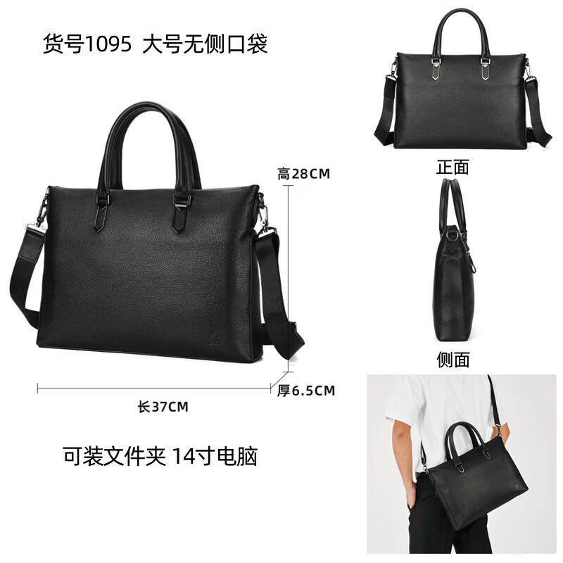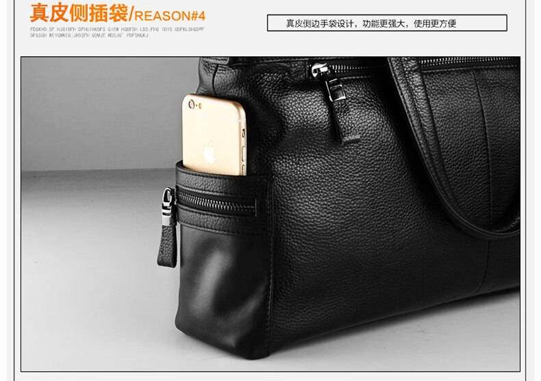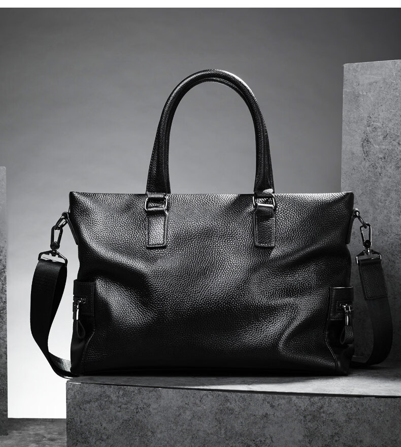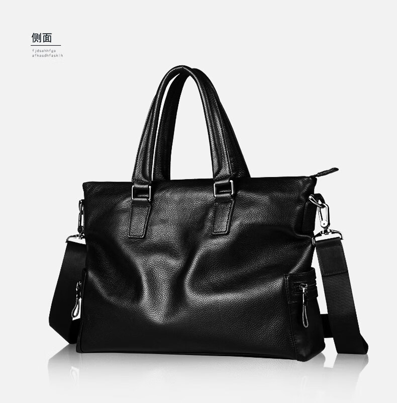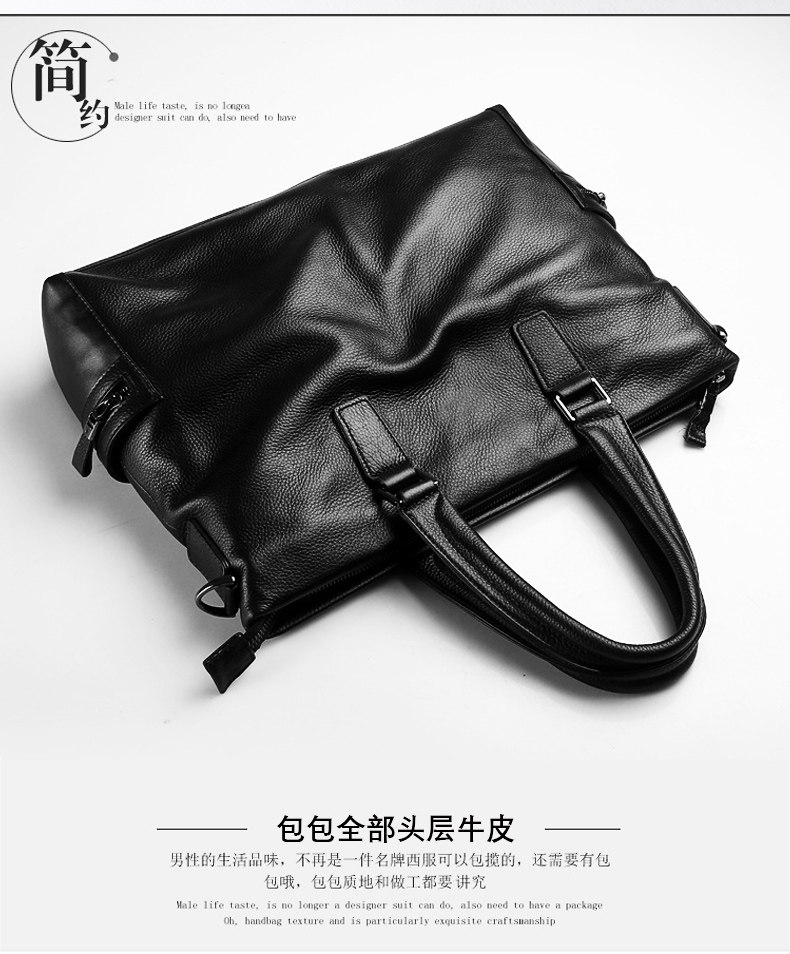 Shijanu men's bag handbag horizontal cowhide casual crossbody bag soft leather computer bag leather bag men's briefcase genuine leather business black large size genuine