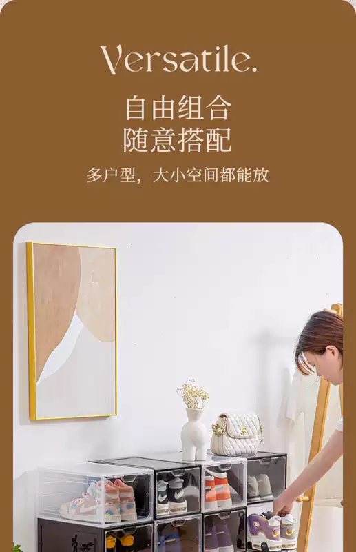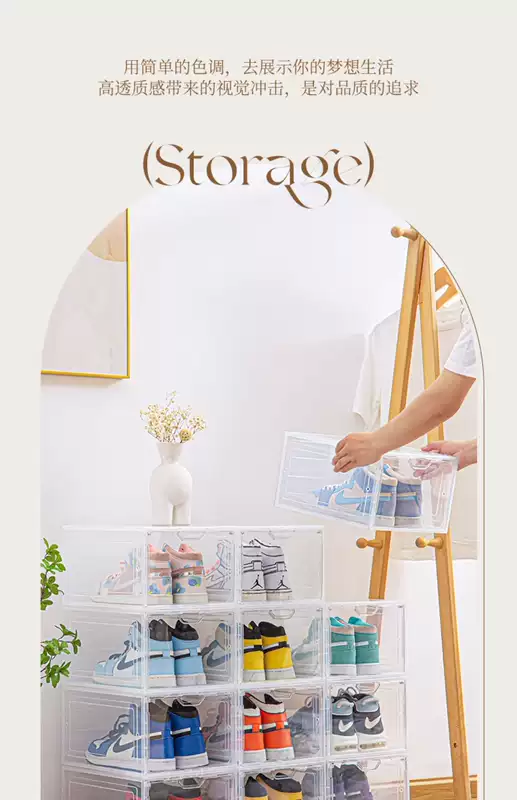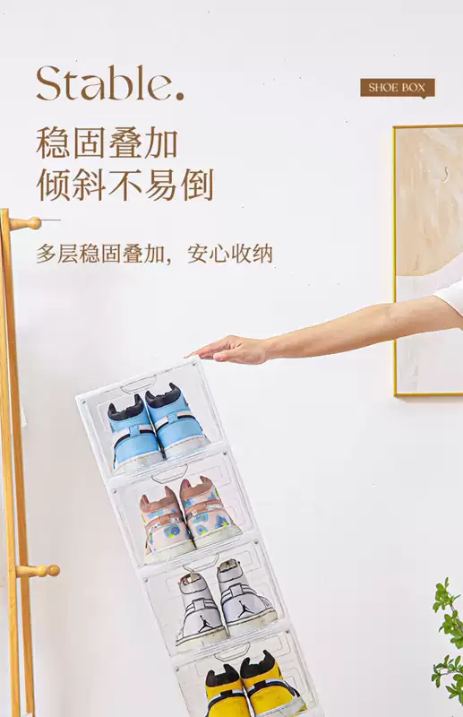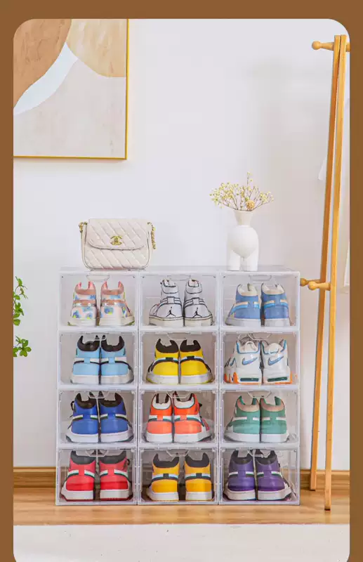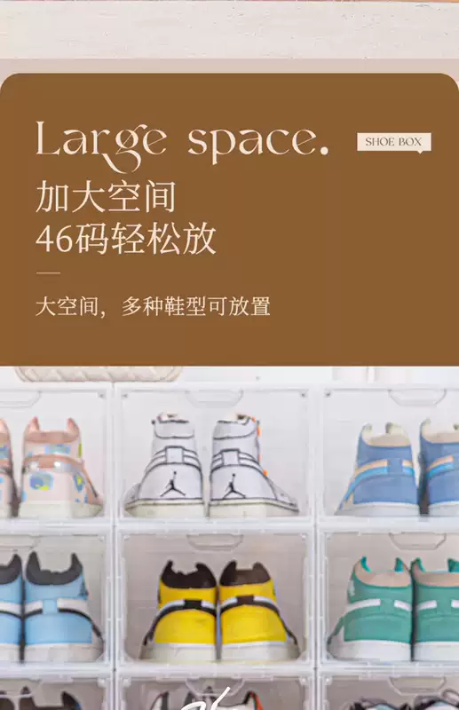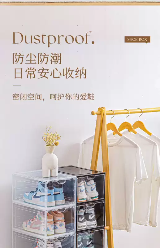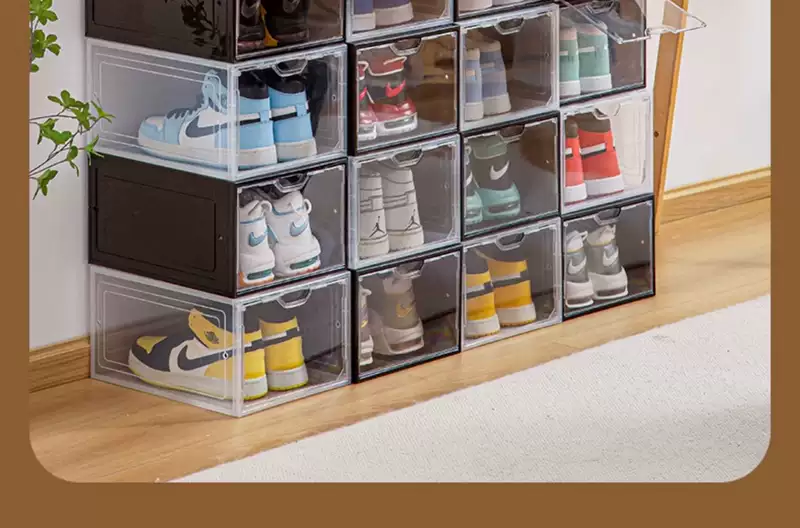 Yusenyi thickened fully hard transparent magnetic shoe box AJ shoe storage box AJ sneaker dust-proof display cabinet household plastic shoe wall 1 piece in black and see-through in the front, large size can be placed in high tops 1 piece in black and see-through in front, large size can be placed in high tops