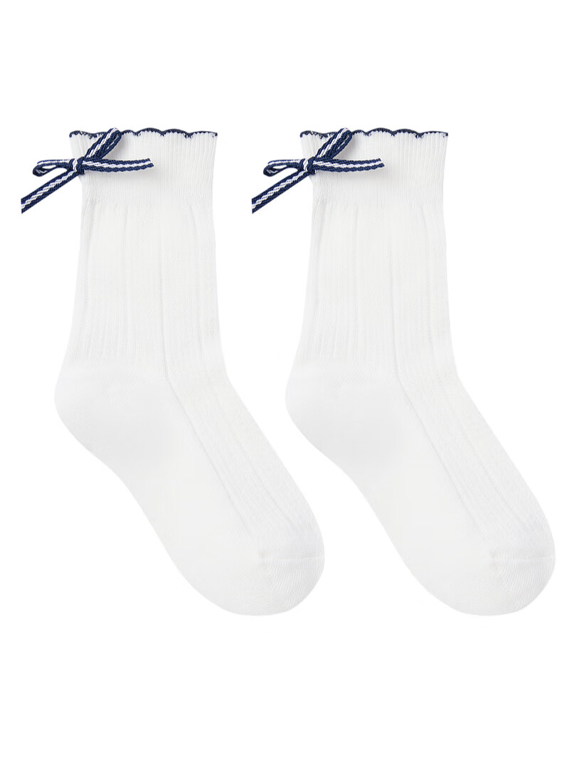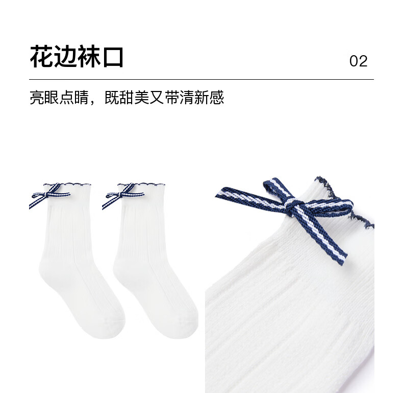 E LAND KIDS children's clothing girls socks 26 spring and summer new college style lace bow mid-calf socks Ivory ivory/39 10-12 years old