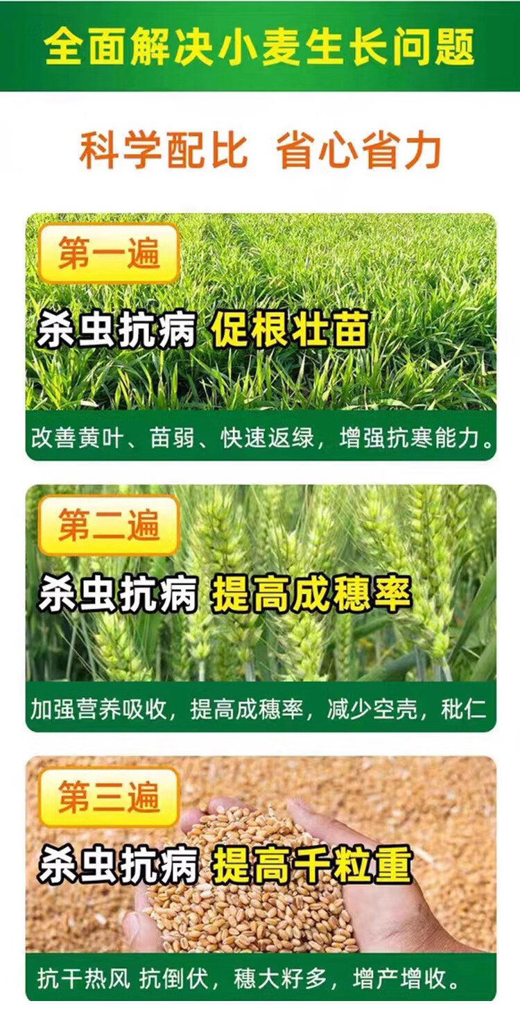 Wheat yield increase package, one spray, three prevention, high yield package, head blight, powdery mildew, insecticide, sterilization, seedling strengthening, yield increase pesticide, six-in-one (1 mu dosage)