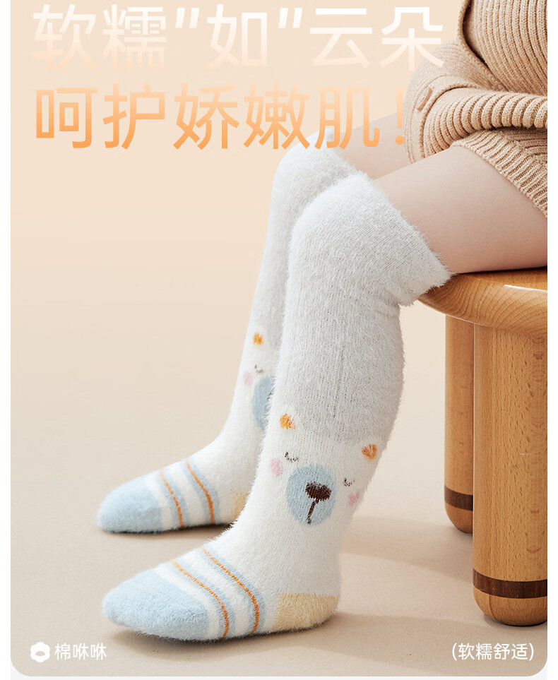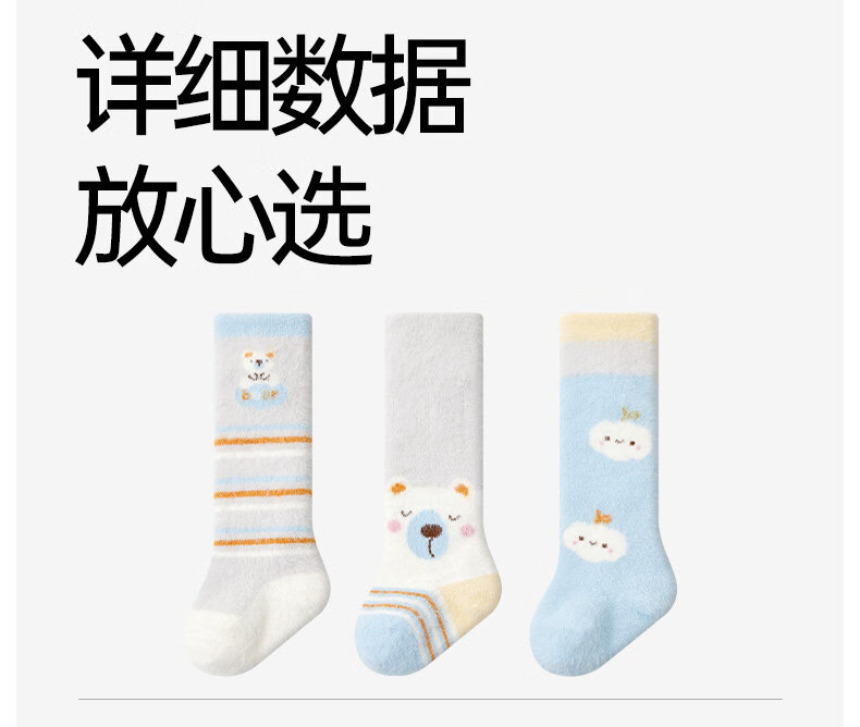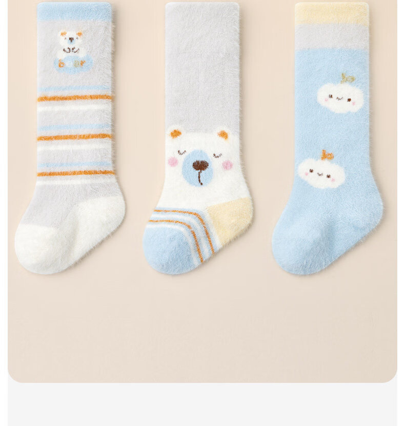 Cotton baby socks plus velvet to keep warm and thickened winter calf socks, cute cold-resistant and temperature-locking cartoon plush over-the-knee socks 3 pairs B5031-boy style-3 pairs of warm over-the-knee calf socks 0-6 months - recommended foot length 8-10cm
