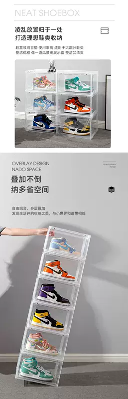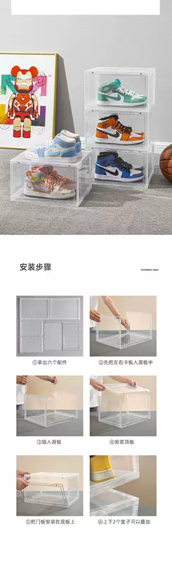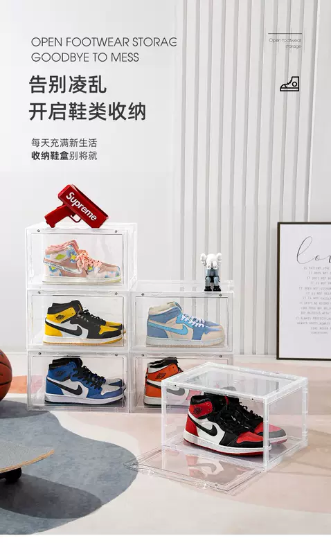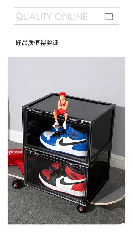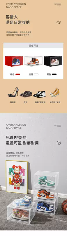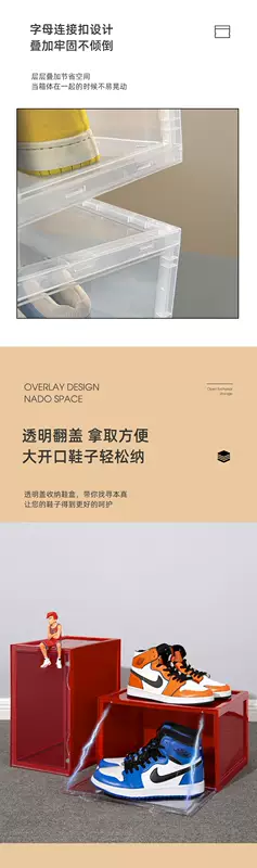 Yusen Yihuicheng acrylic transparent shoe box storage box AJ sneaker anti-oxidation cabinet plastic magnetic side opening shoe display wall (B) 2 red shoe boxes (B) 2 red shoe boxes 36x28x22cm 36 36x28x22cm