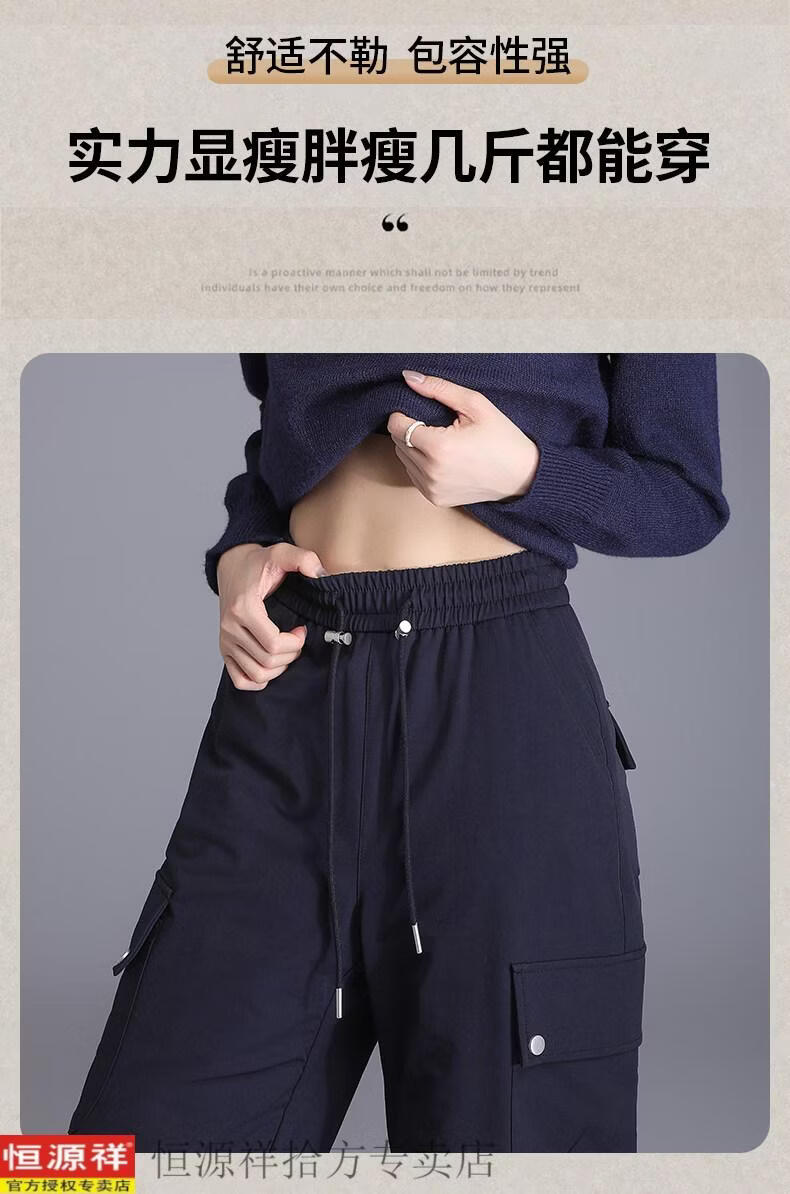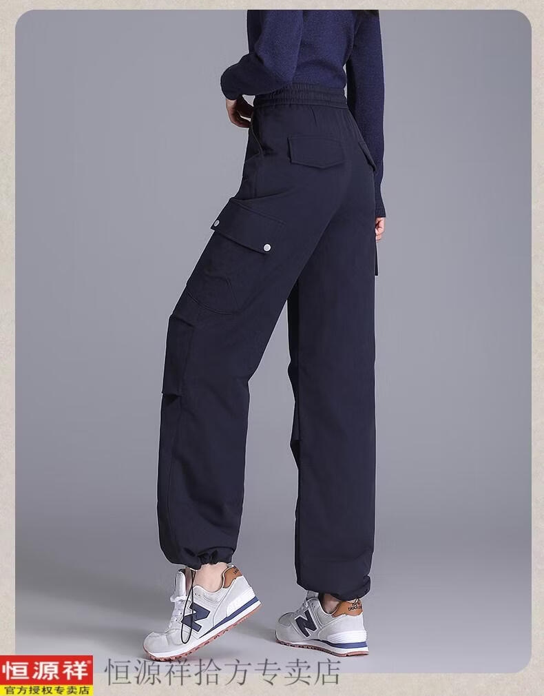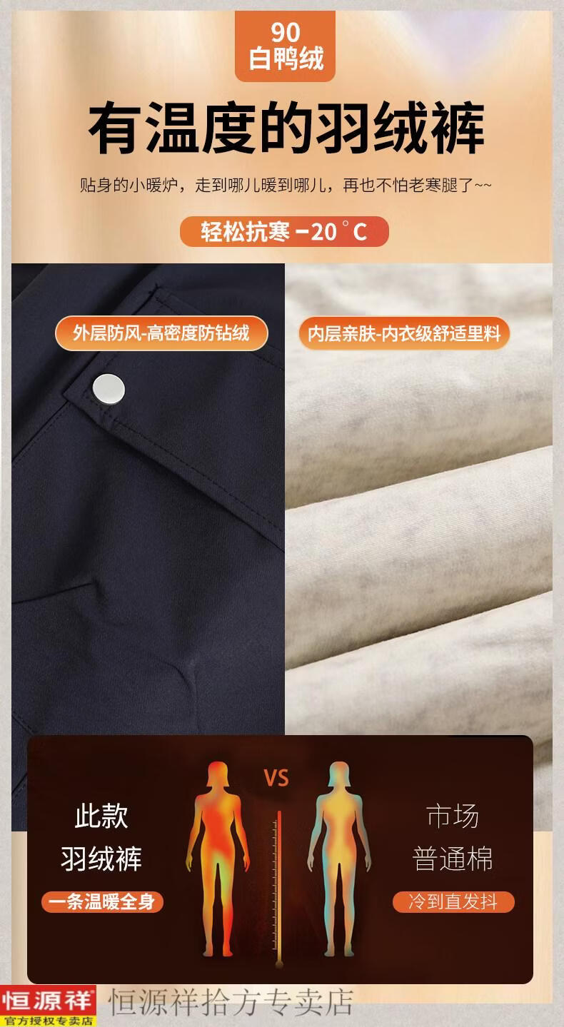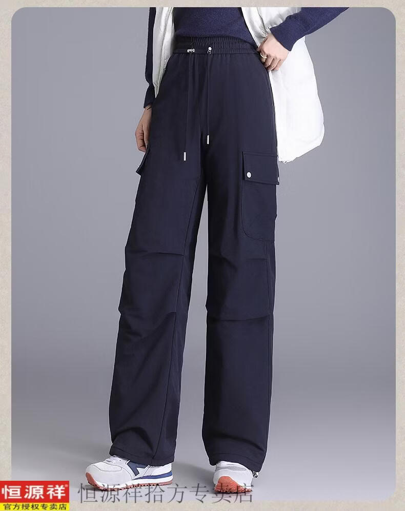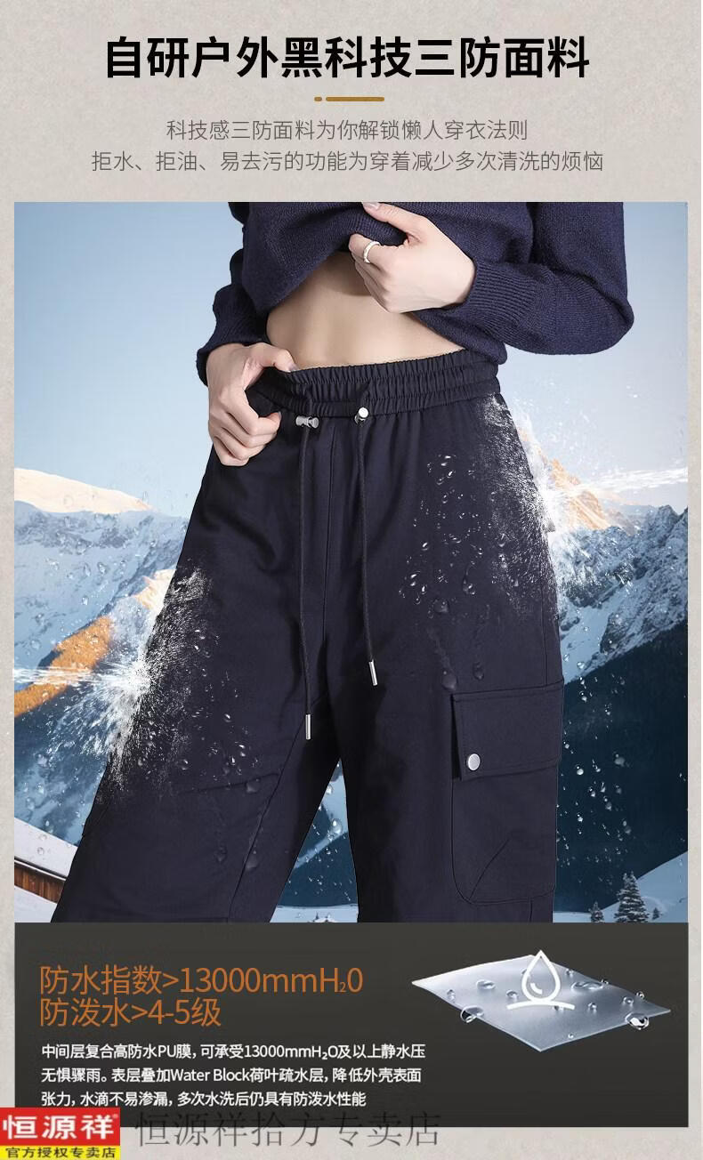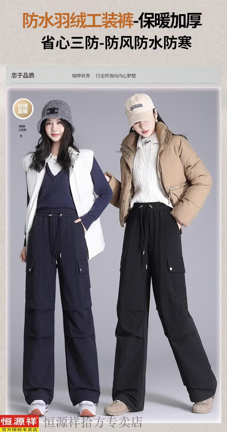 Hengyuanxiang Workwear Down Pants Women's 2026 Winter Outerwear Cotton Pants White Duck Down Plus Velvet Thickened High Waist Straight Leg Waterproof Ski Pants Black 31