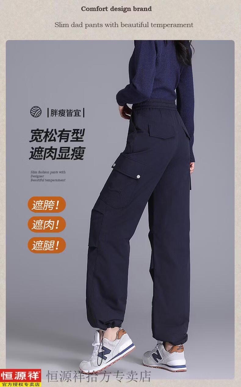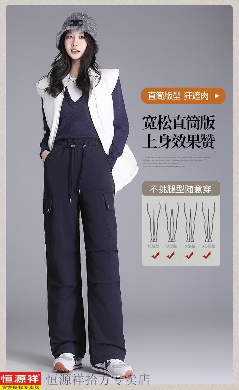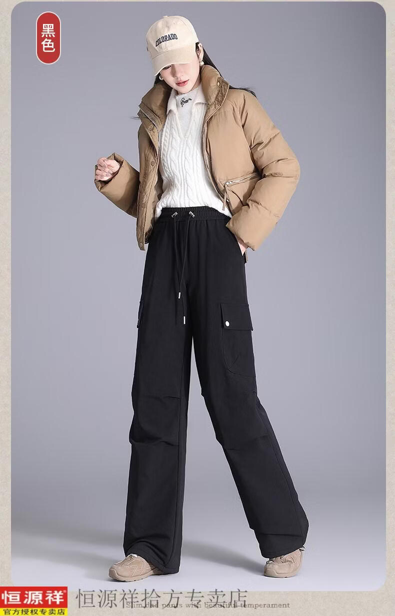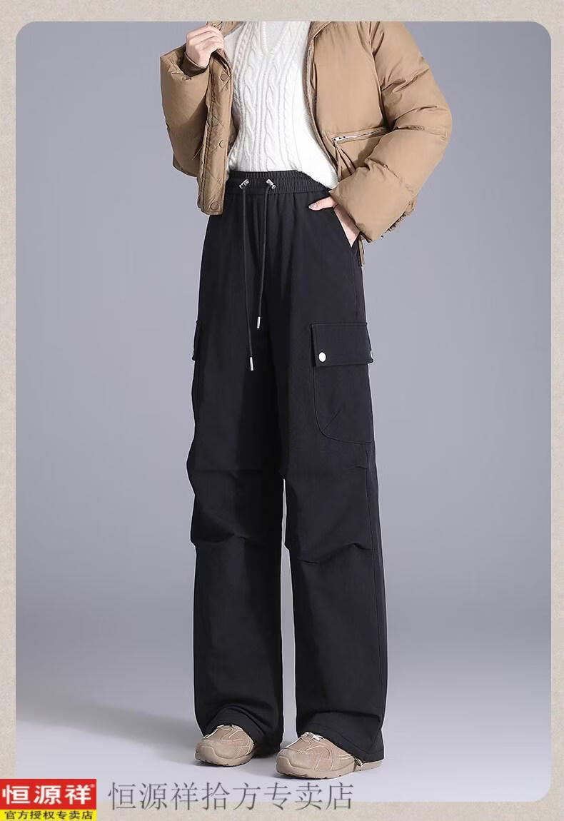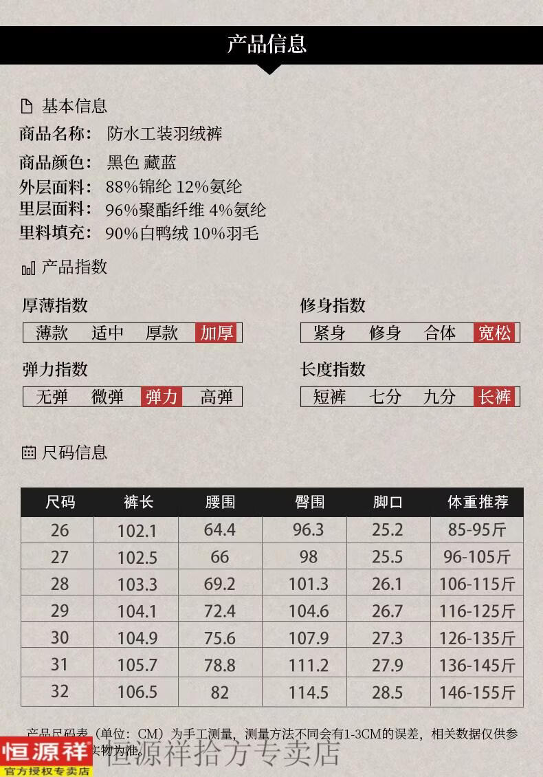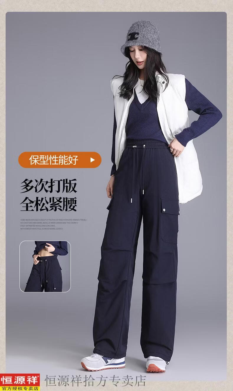 Hengyuanxiang Workwear Down Pants Women's 2026 Winter Outerwear Cotton Pants White Duck Down Plus Velvet Thickened High Waist Straight Leg Waterproof Ski Pants Black 31