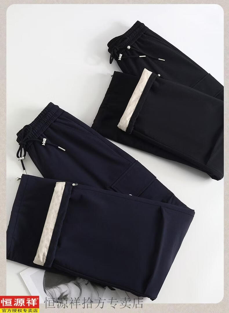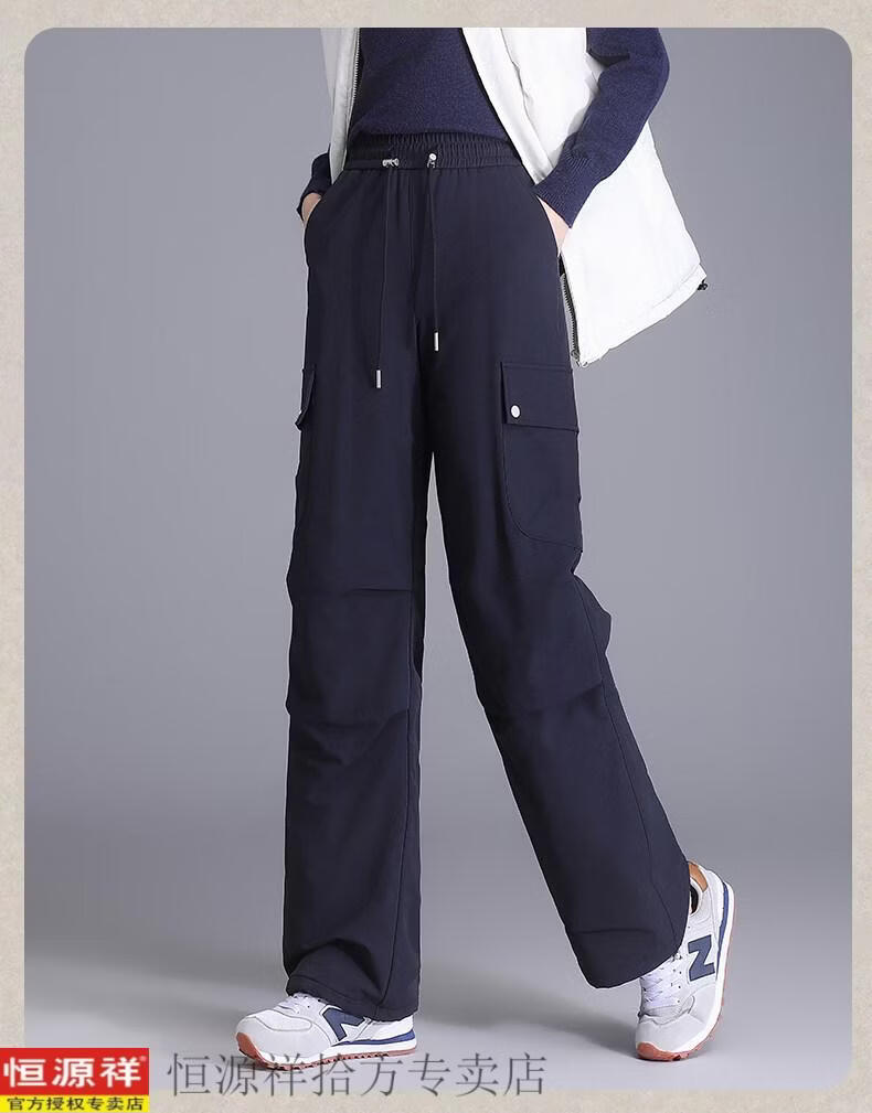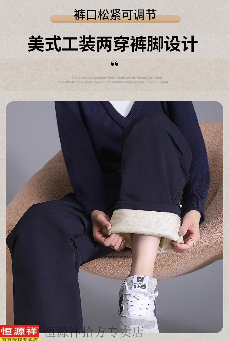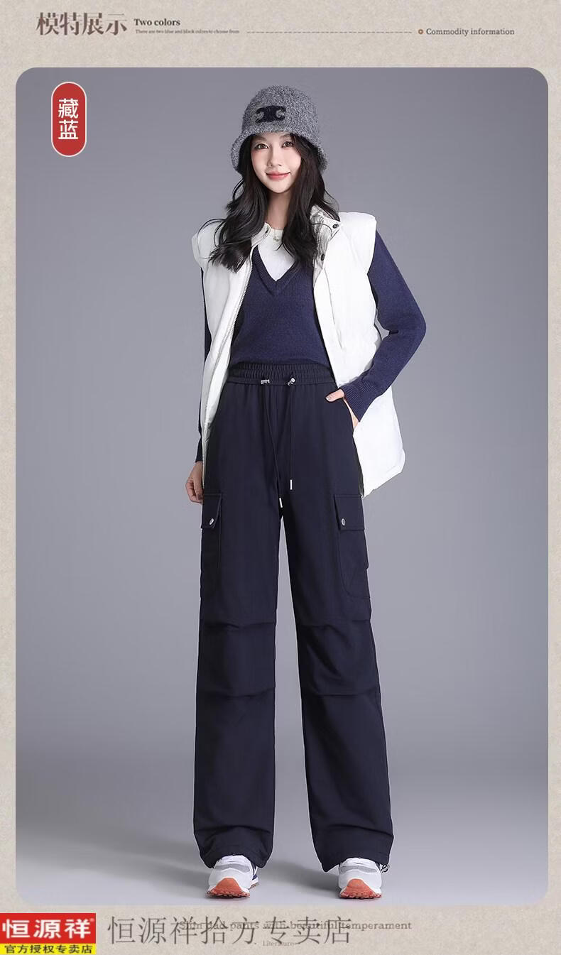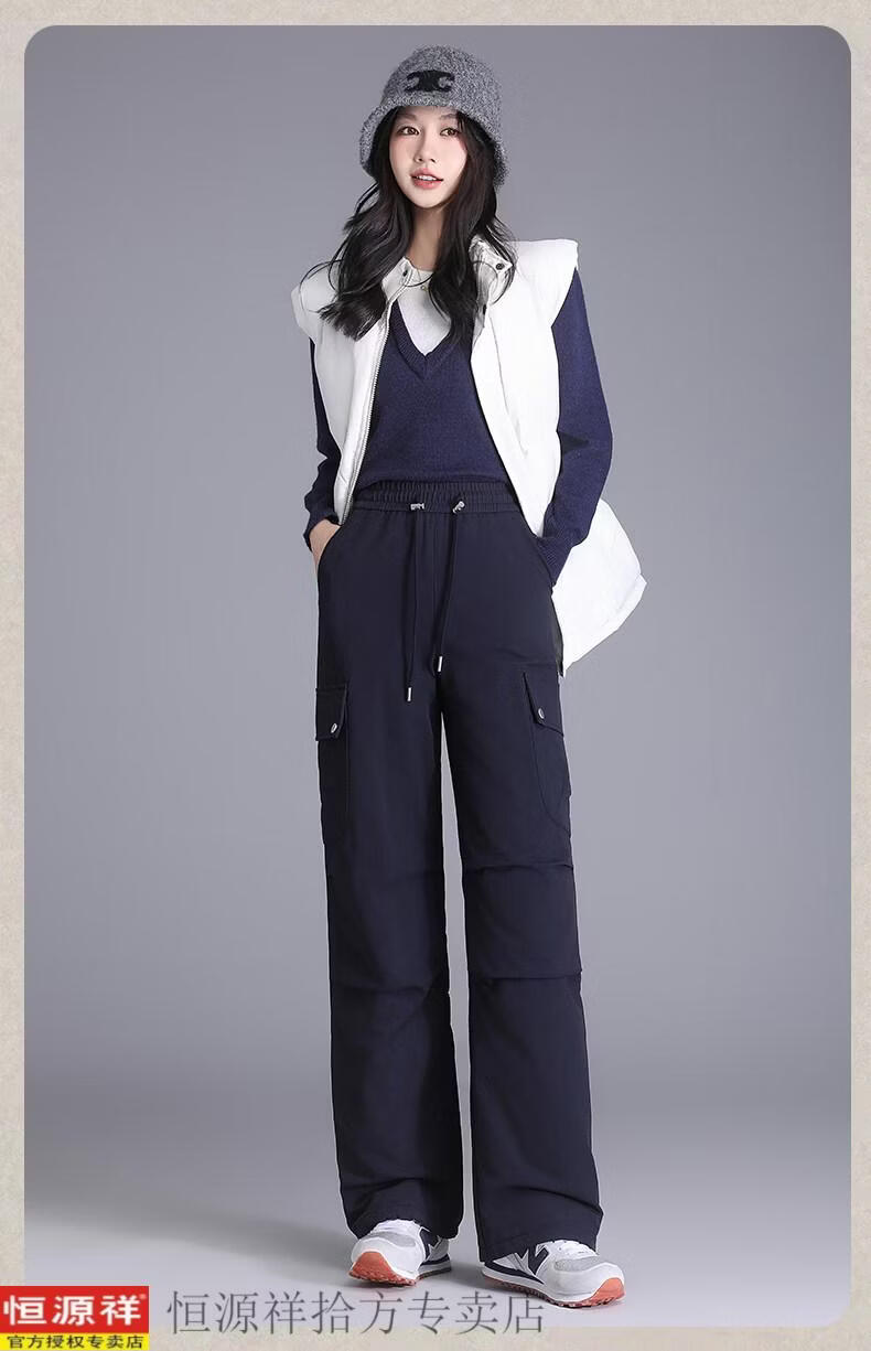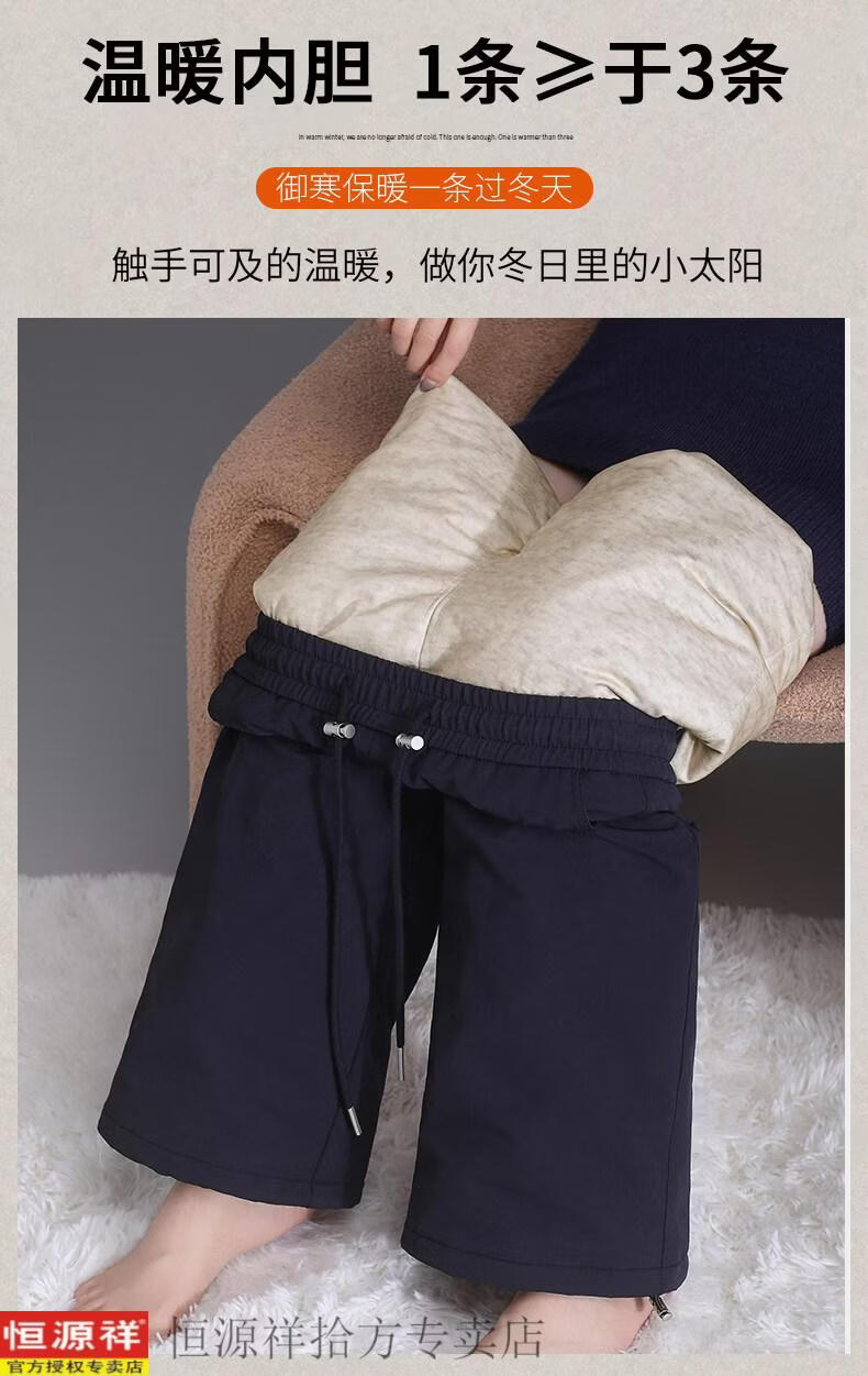 Hengyuanxiang Workwear Down Pants Women's 2026 Winter Outerwear Cotton Pants White Duck Down Plus Velvet Thickened High Waist Straight Leg Waterproof Ski Pants Black 31