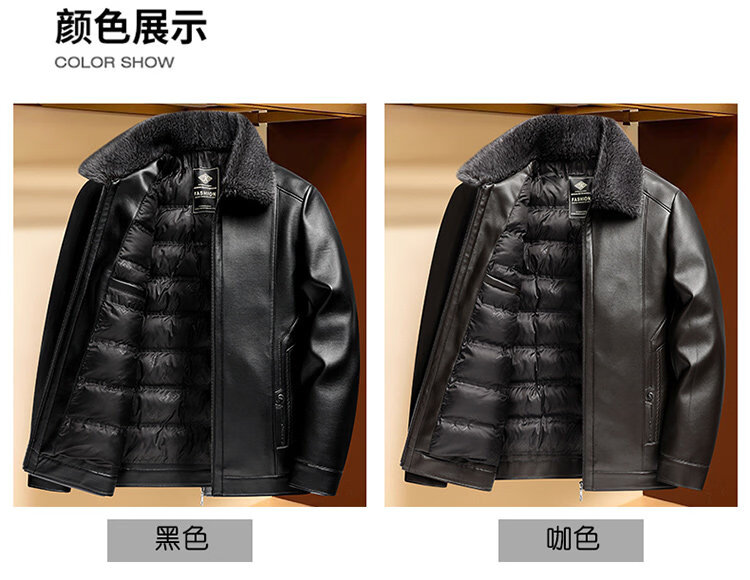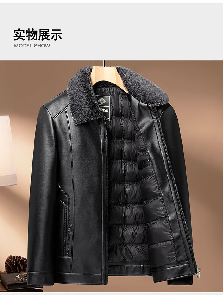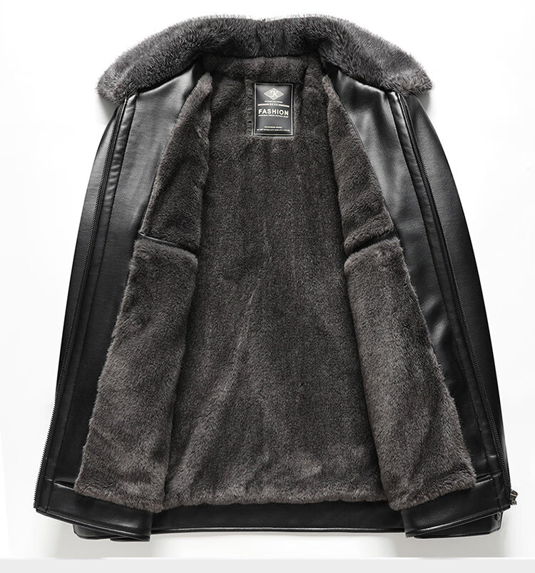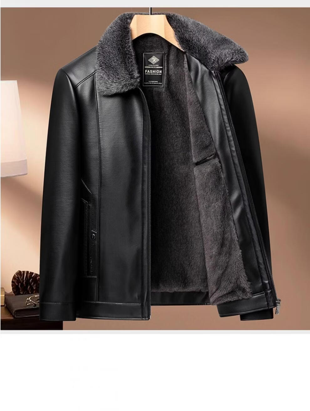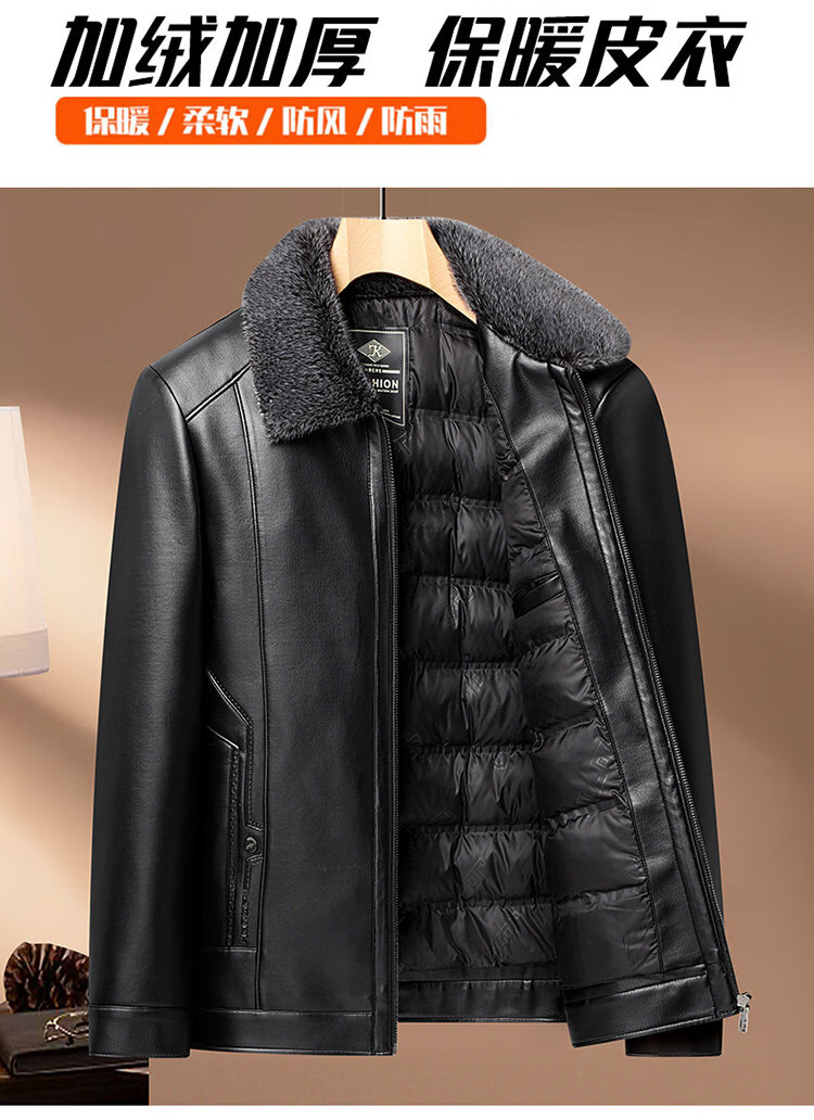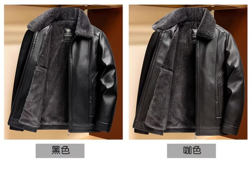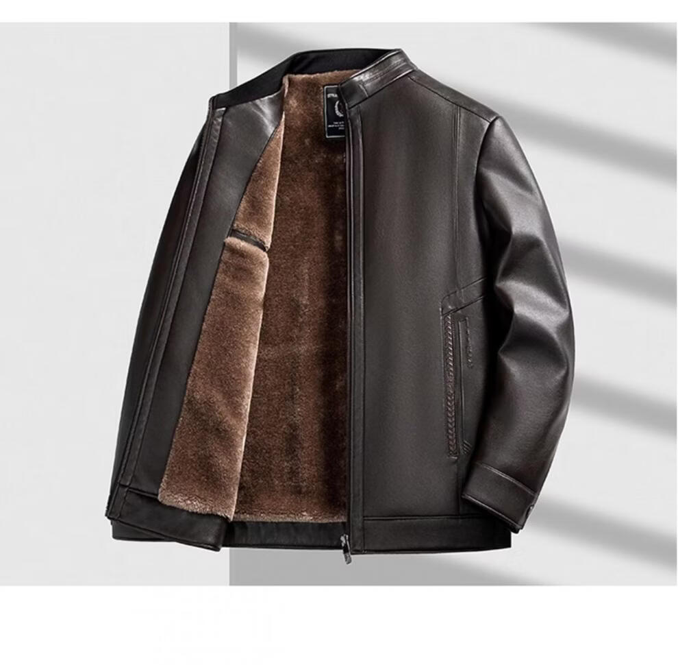 Hengyuanxiang среднего и пожилого возраста папа зимняя кожаная куртка с воротником-стойкой для мужчин 2026 осень и зима новая бархатная утолщенная теплая куртка среднего возраста PY051 черный M 170 подходит для 70Jin Jin равен 0,5 кг -100Jin Jin равен 0,5 кг