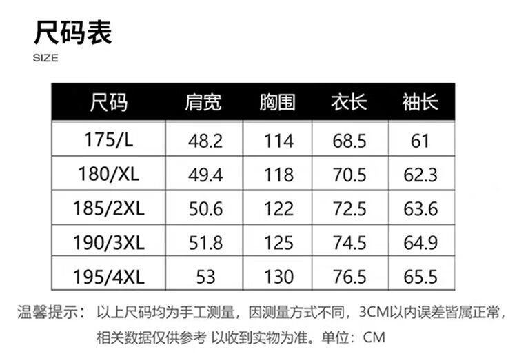 China (cm) 165 / 88-90 170 / 96-98 175 / 108-110 180 / 118-122 185 / 126-130