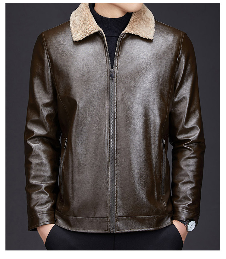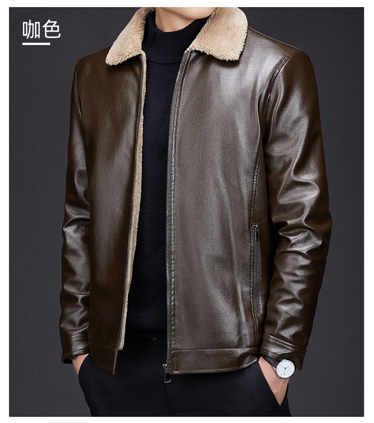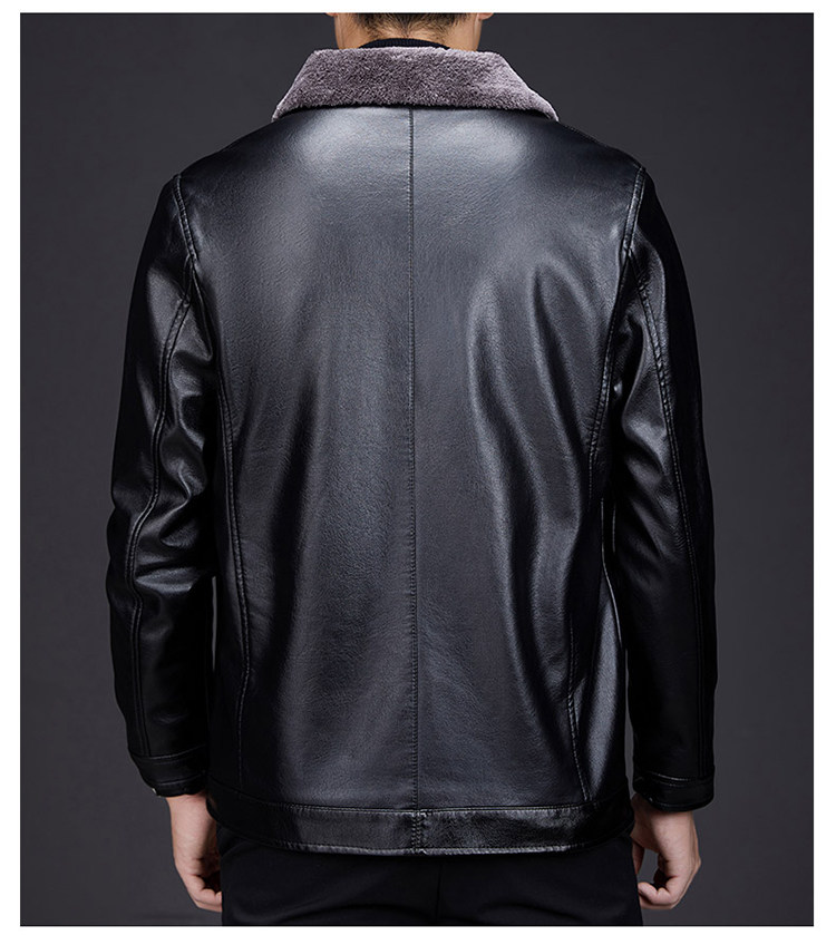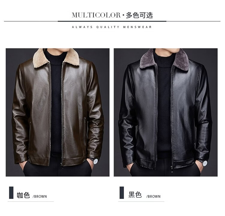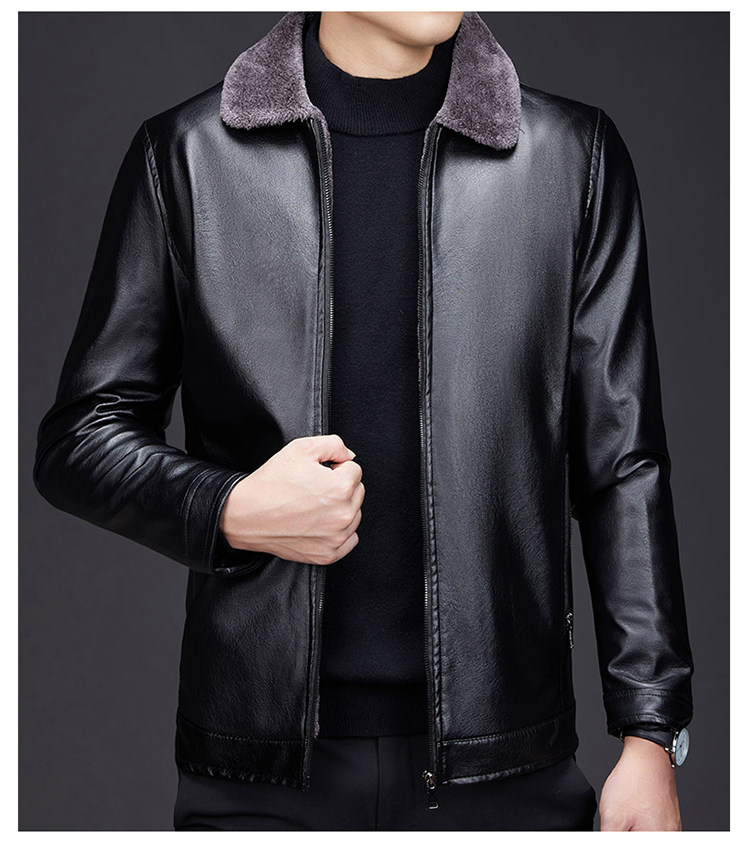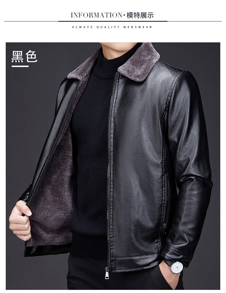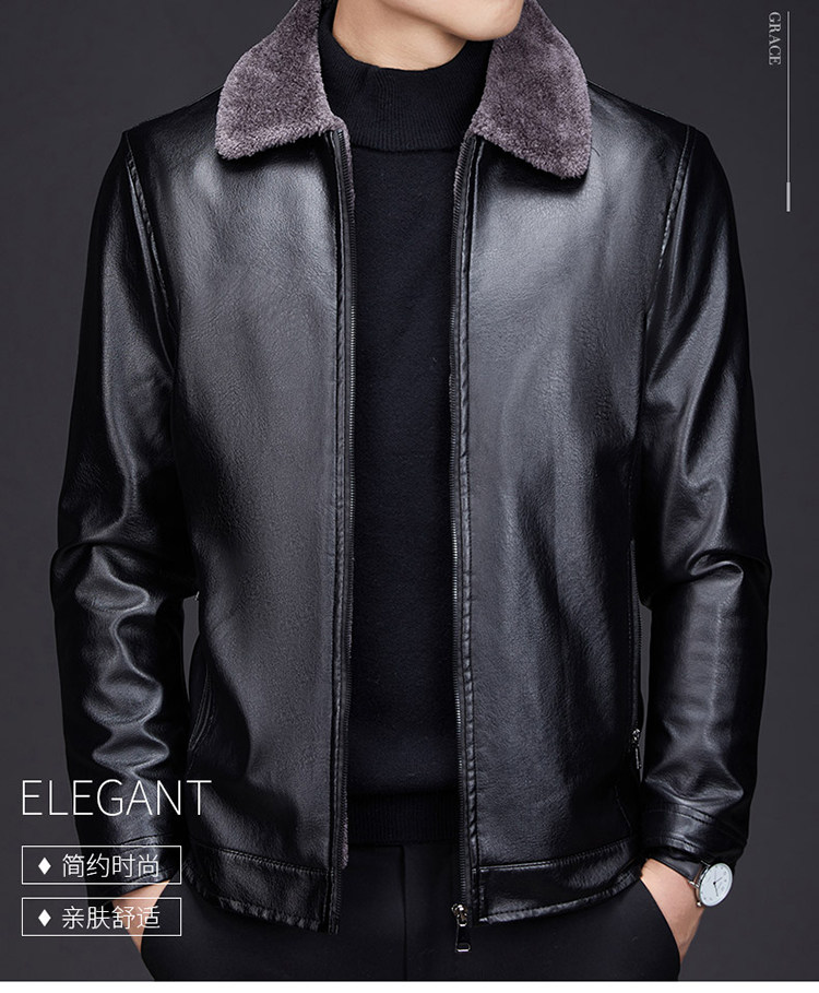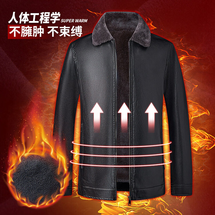 Hengyuanxiang dad winter leather jacket middle-aged and elderly men's velvet thickened cold-proof and warm leather jacket middle-aged stand-up collar top black L 175 recommended 90-115 Jin Jin equals 0.5 kg