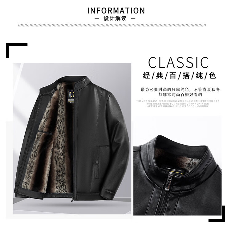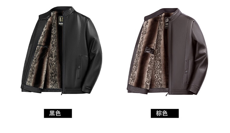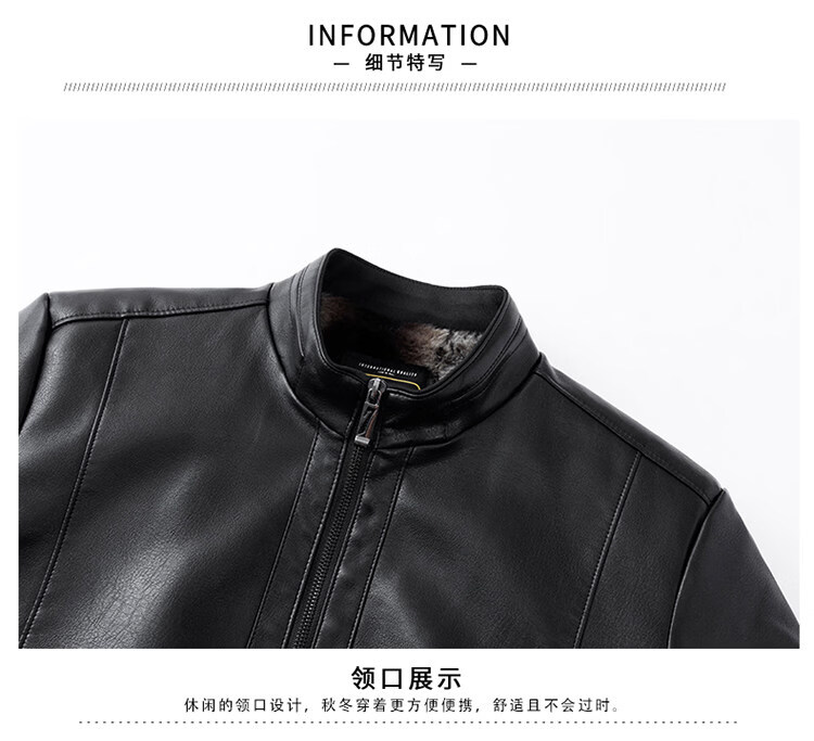 Hengyuanxiang PU simulated leather jacket for men in autumn and winter plus velvet and thickened stand-up collar PU leather jacket for middle-aged and elderly dads HY605-black L 175 recommended 90-110 Jin Jin equals 0.5 kg