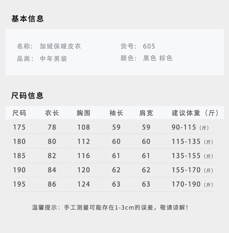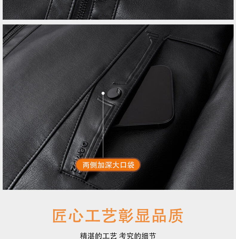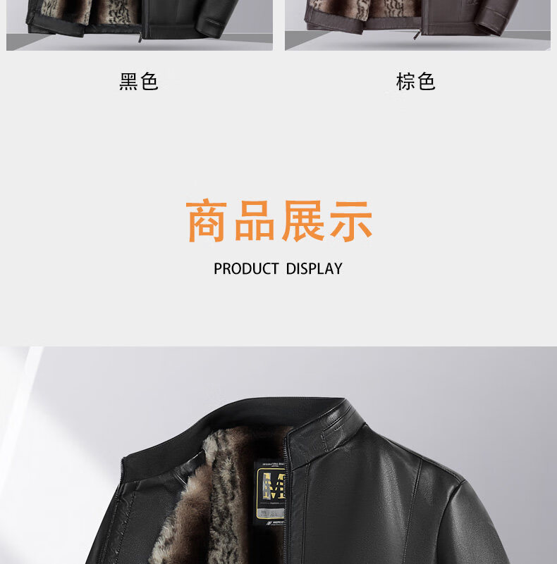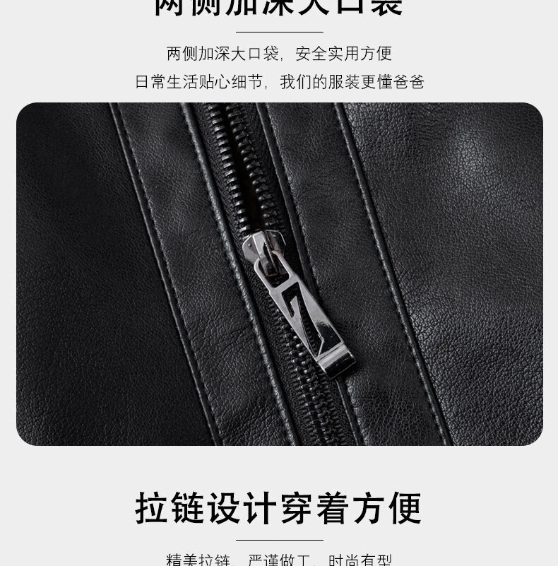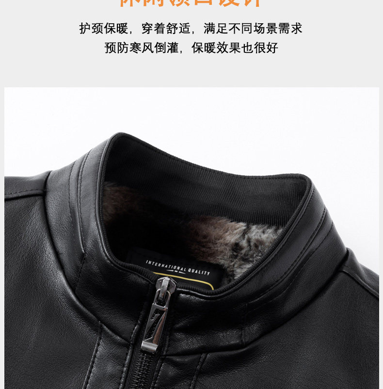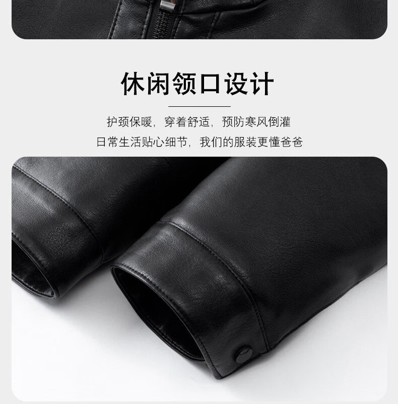 Hengyuanxiang middle-aged and elderly thickened velvet men's leather jacket with stand collar middle-aged warm leather jacket dad's jacket jacket black L recommended 110-125 Jin Jin equals 0.5 kg