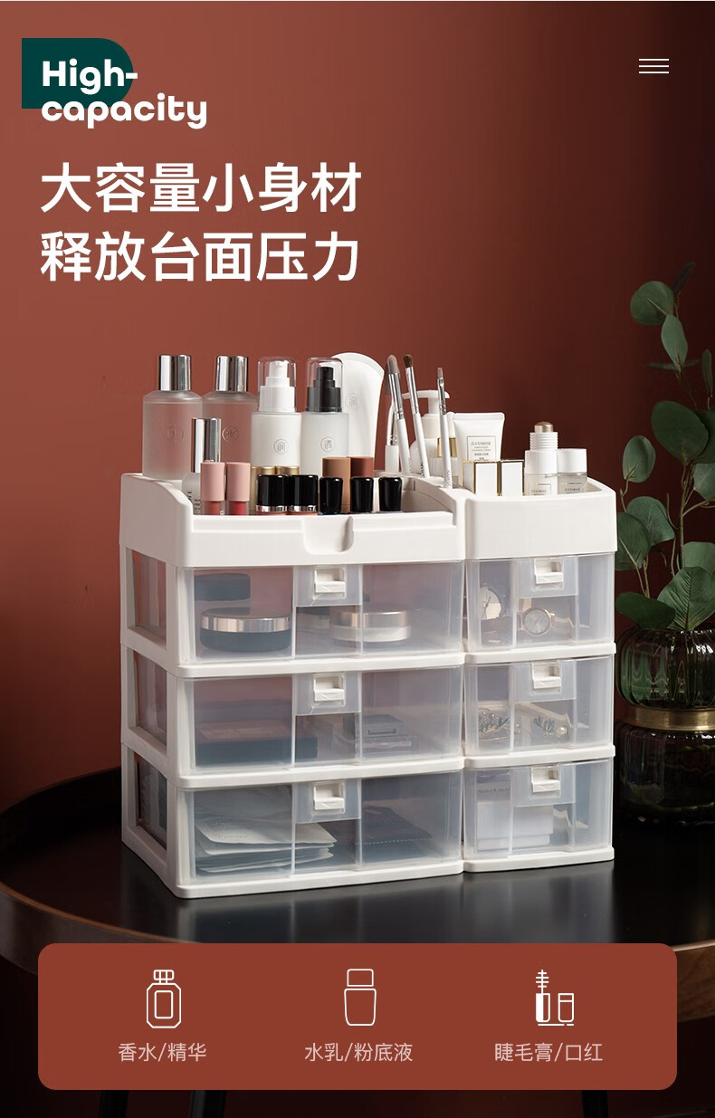 Cosmetics storage box desktop household large-capacity drawer-type dresser organizer box skin care product storage rack extra large transparent model 2 layers