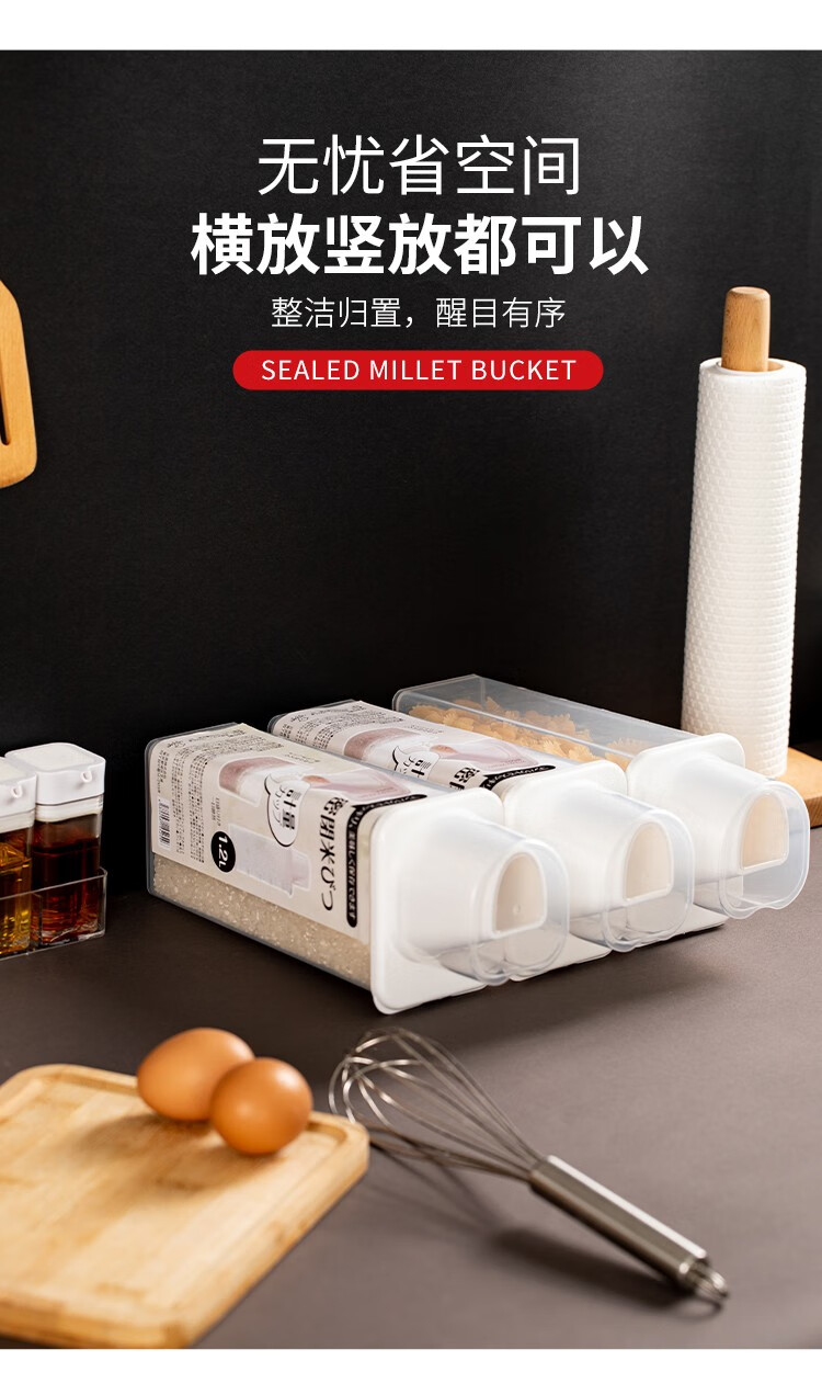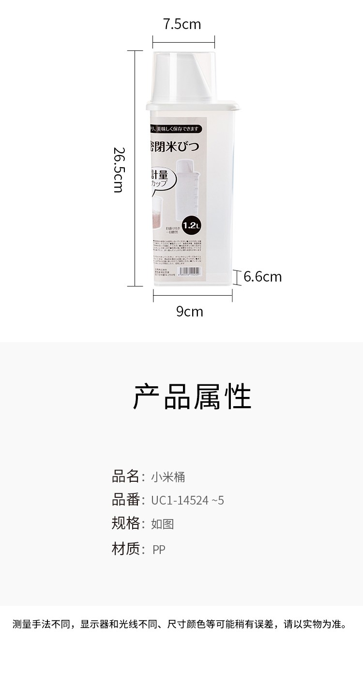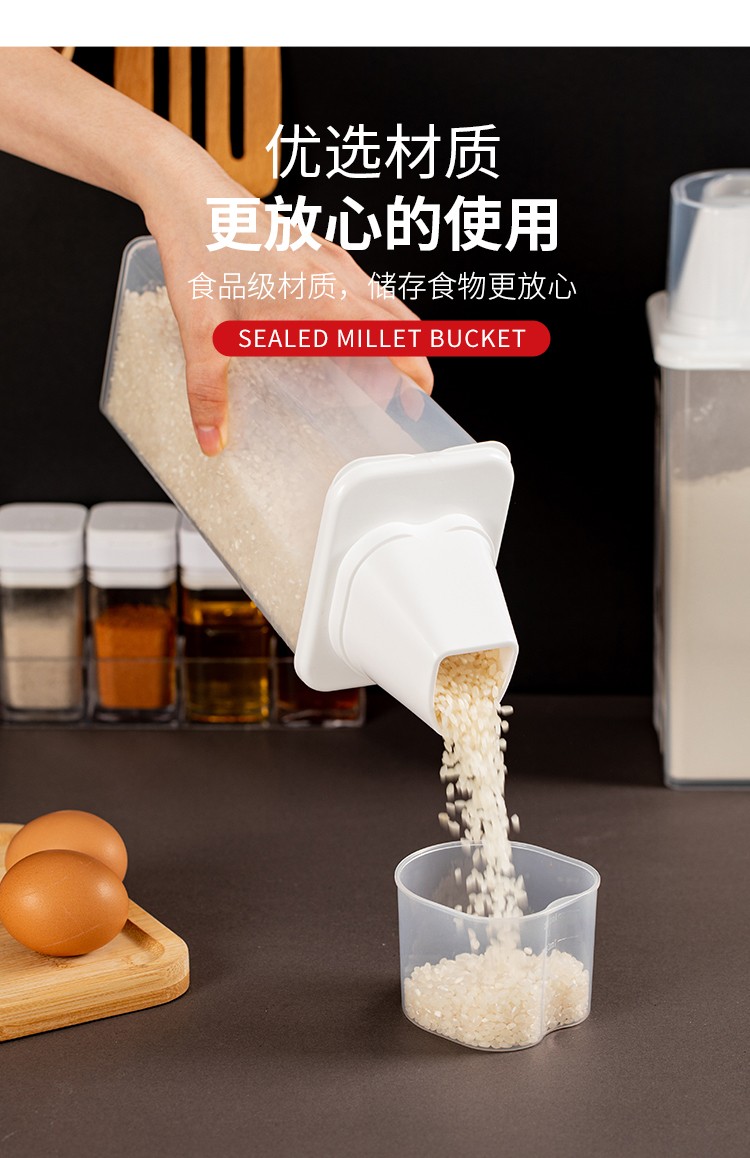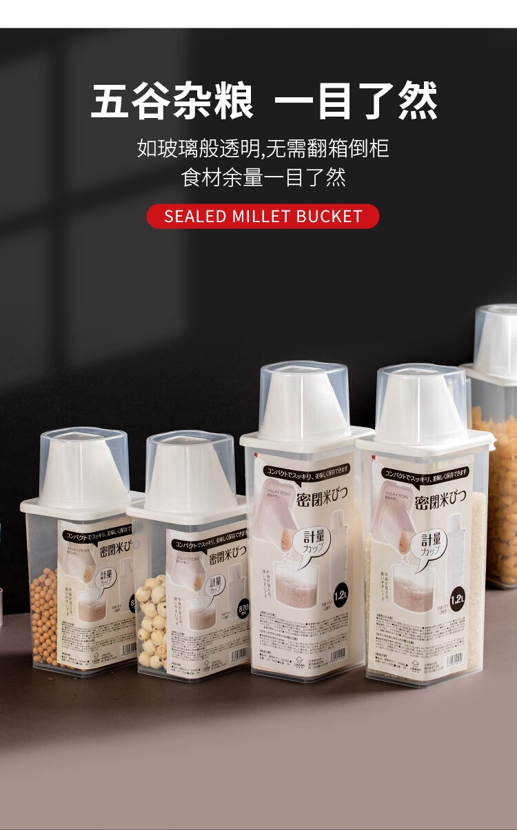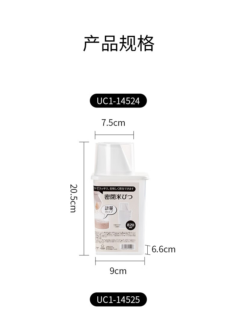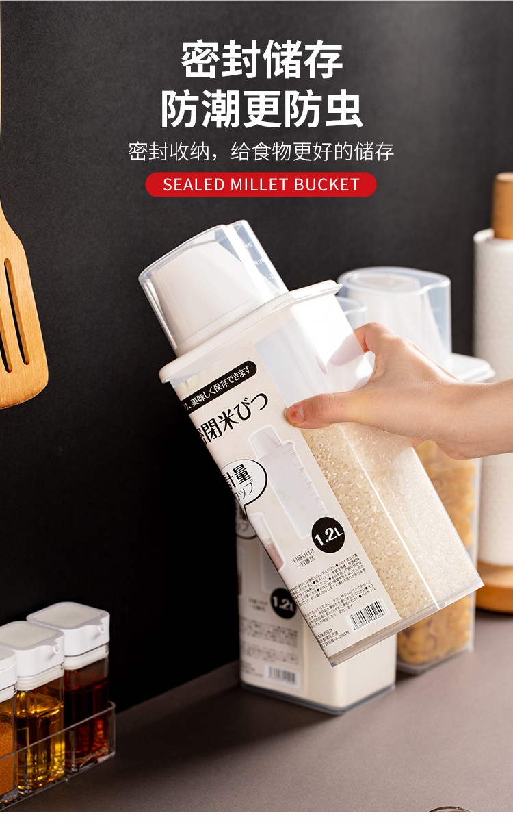 Sungsa Japanese rice bucket kitchen grain storage tank rice noodle sealed moisture-proof and insect-proof storage tank with measuring cup rice cylinder 870ML (pack of 3)