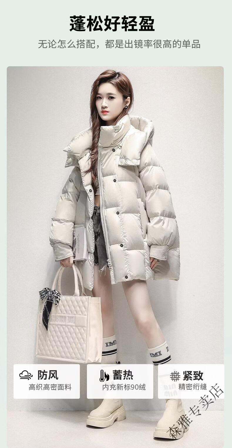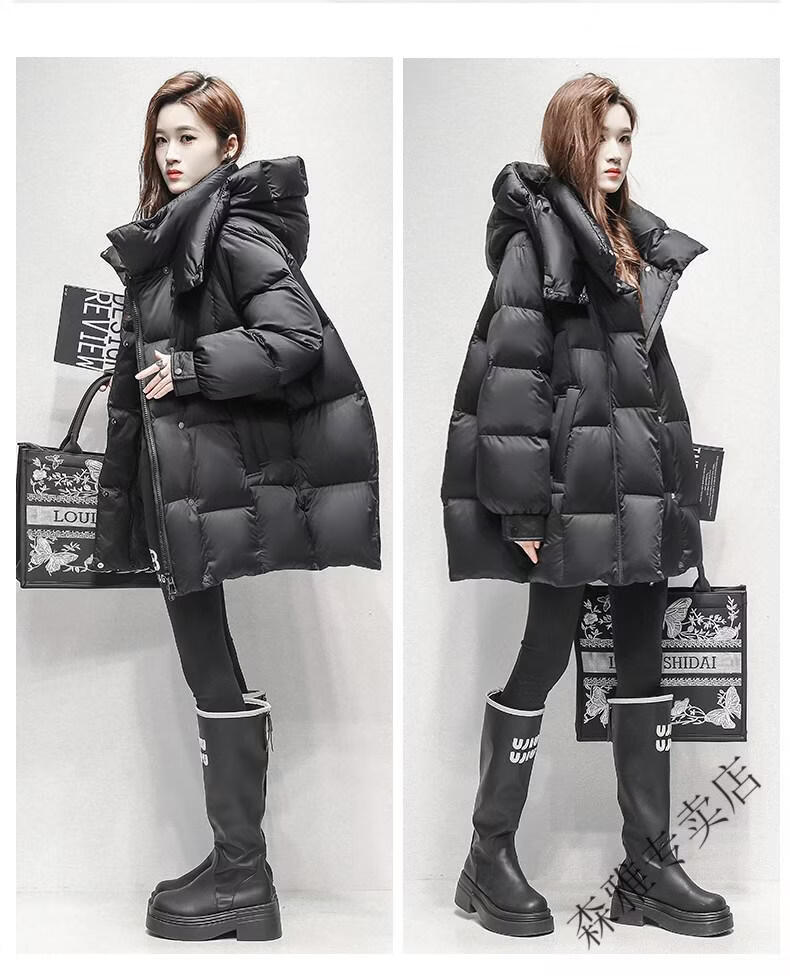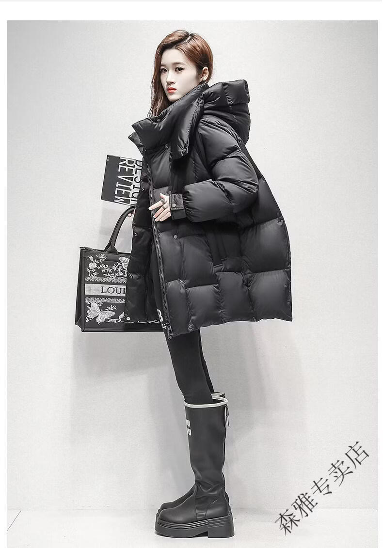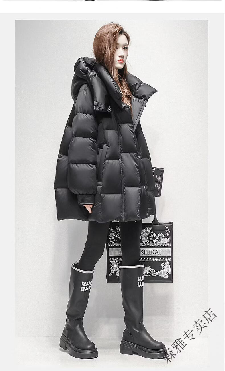 Hengyuanxiang high-end brand down jacket women's mid-length 2026 winter new style detachable hood puff fashion duck down thick coat black XL