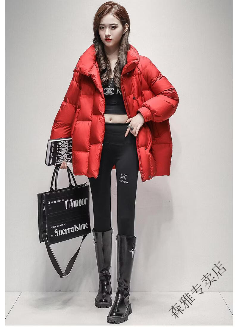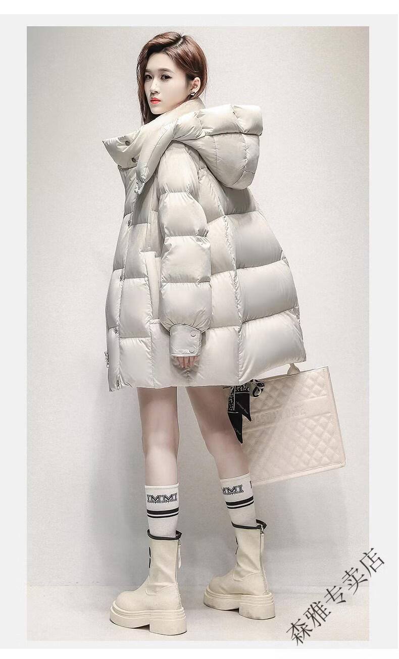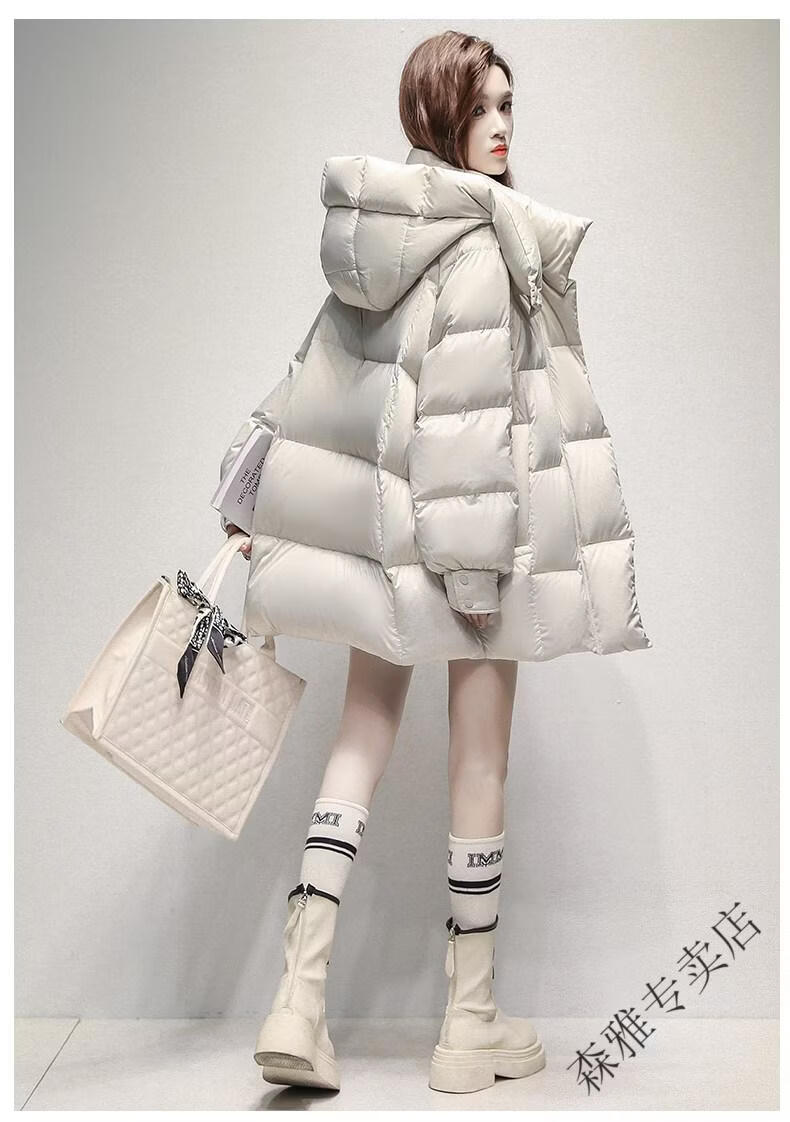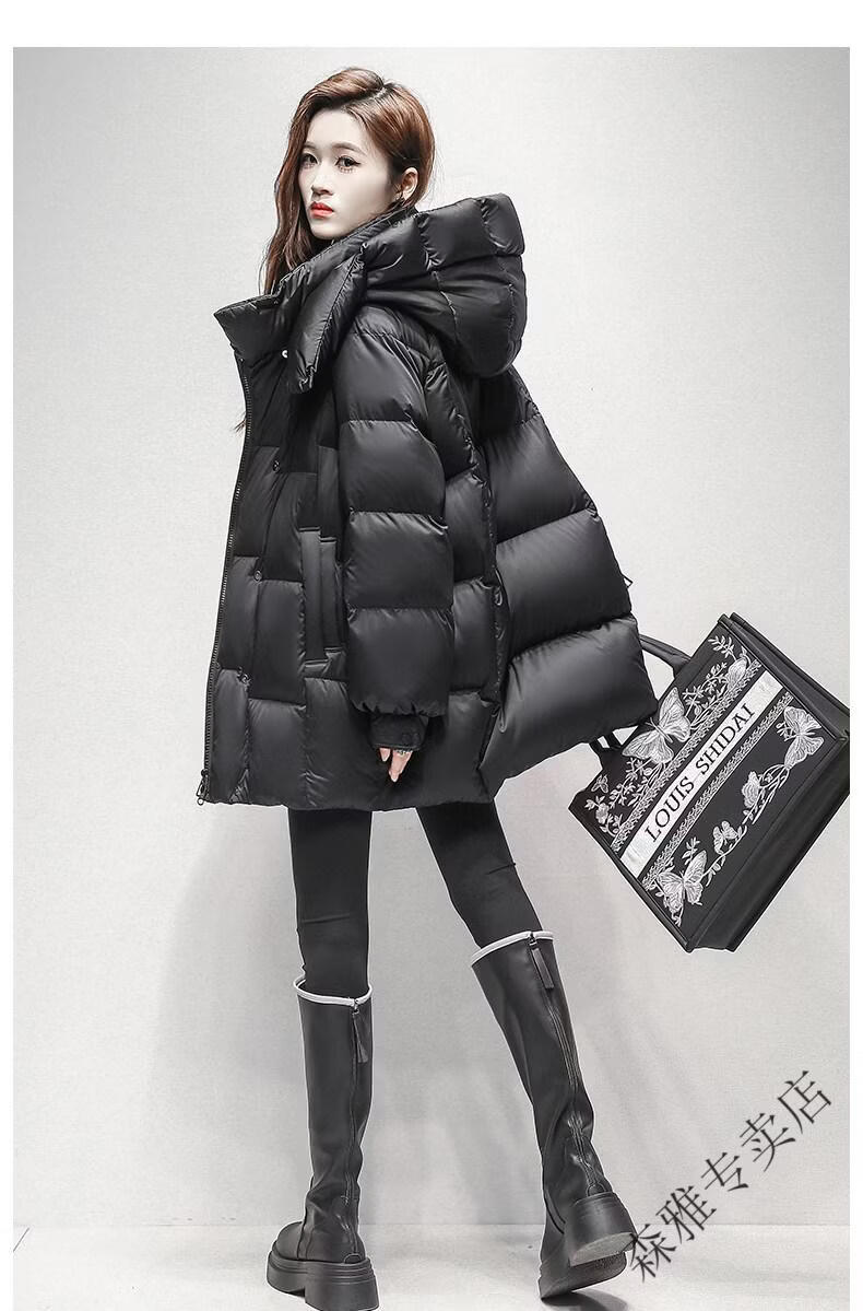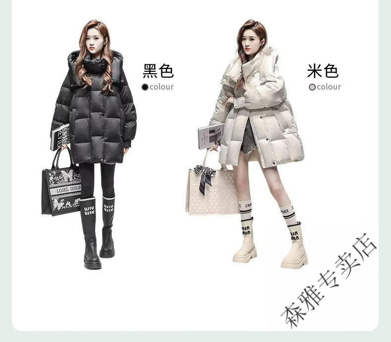 Hengyuanxiang high-end brand down jacket women's mid-length 2026 winter new style detachable hood puff fashion duck down thick coat black XL