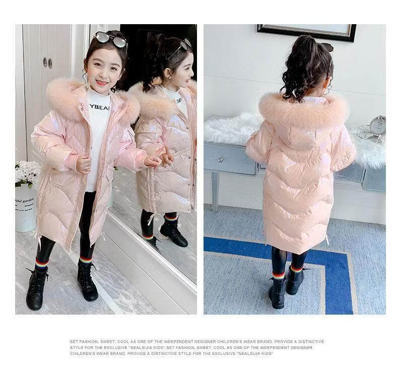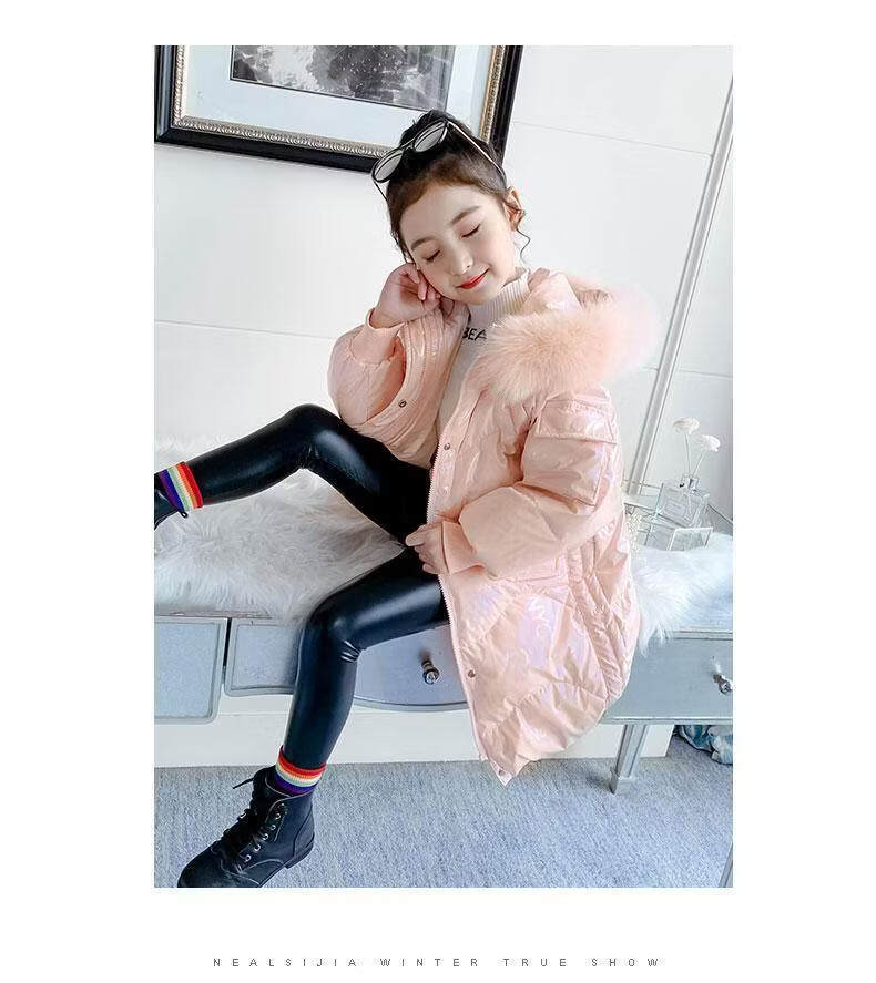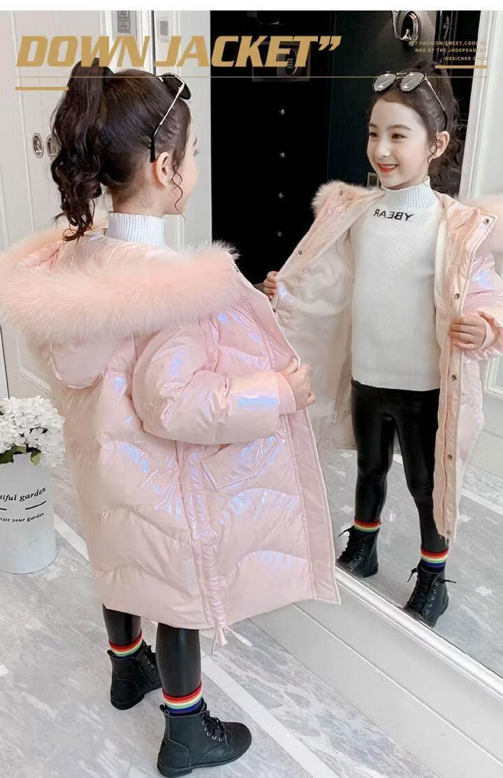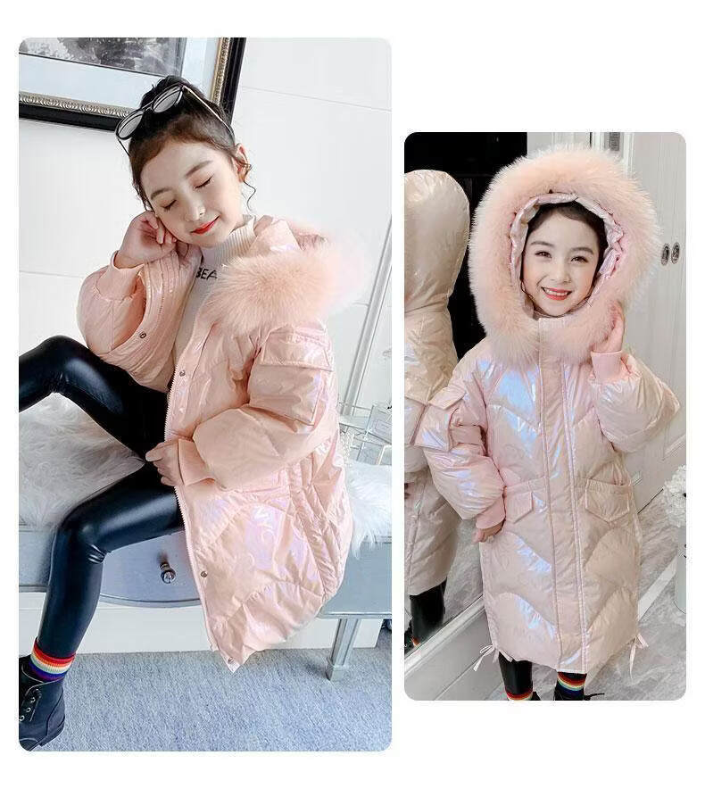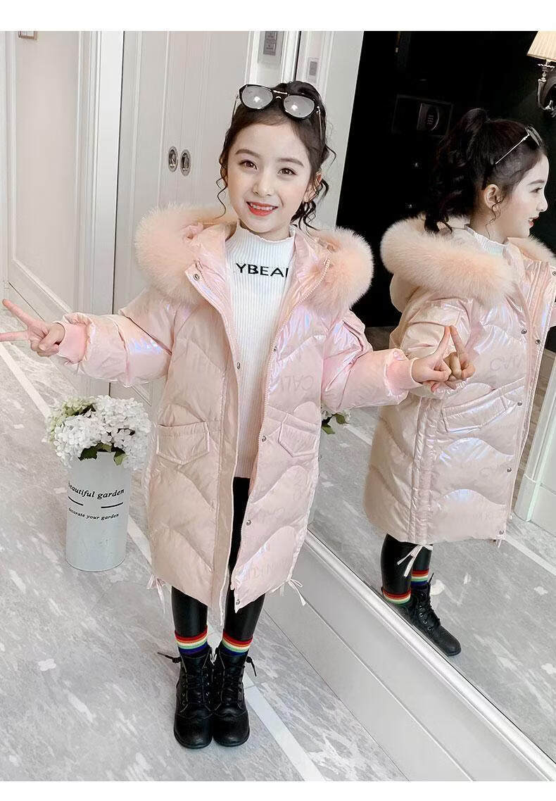 G.duck baby girl down jacket new shiny no-wash trendy winter coat 2025 new plus velvet warm jacket trendy pink 120