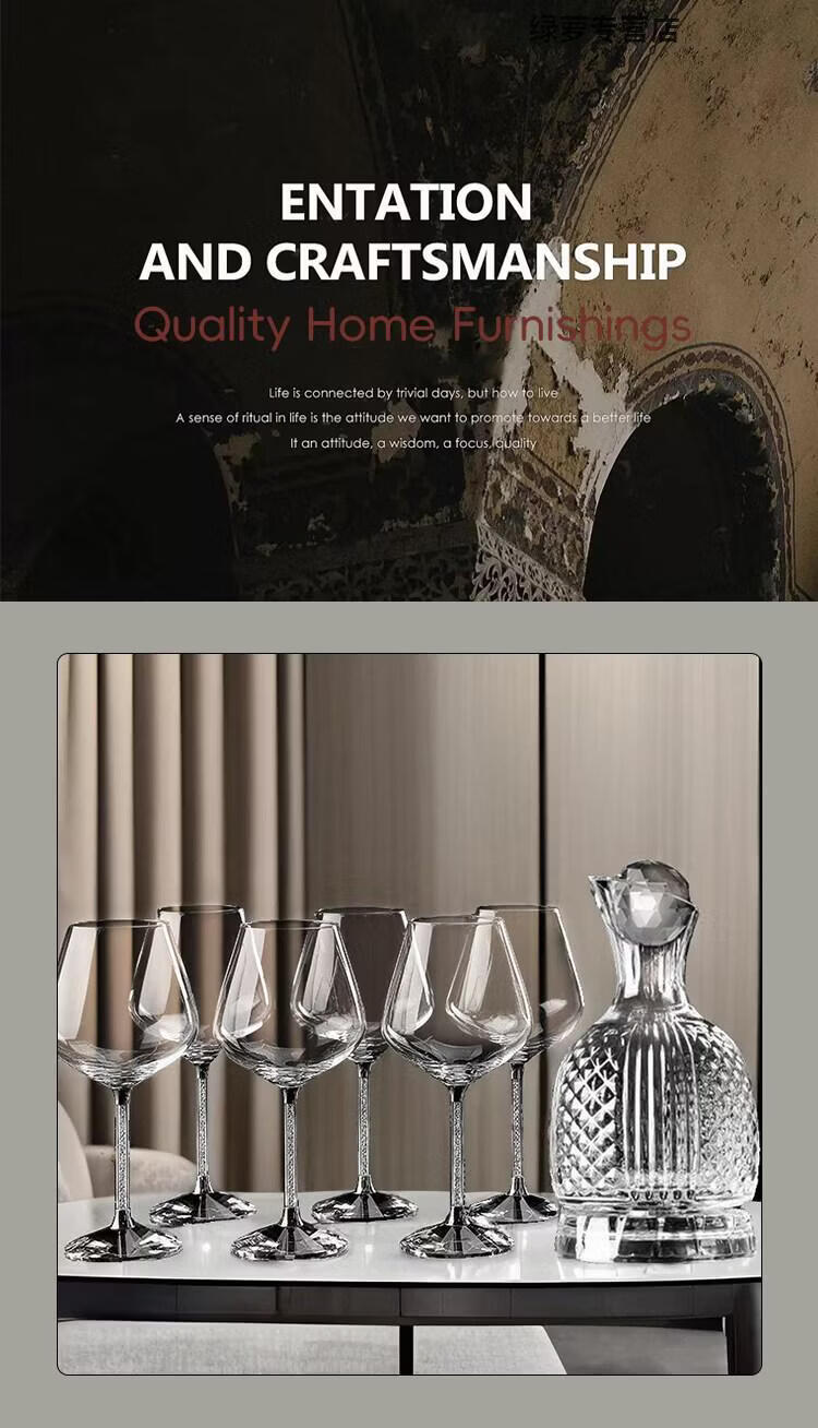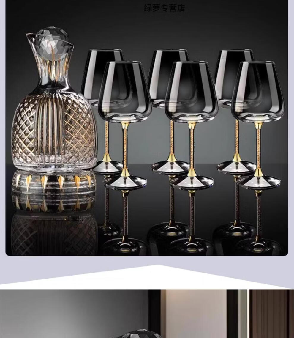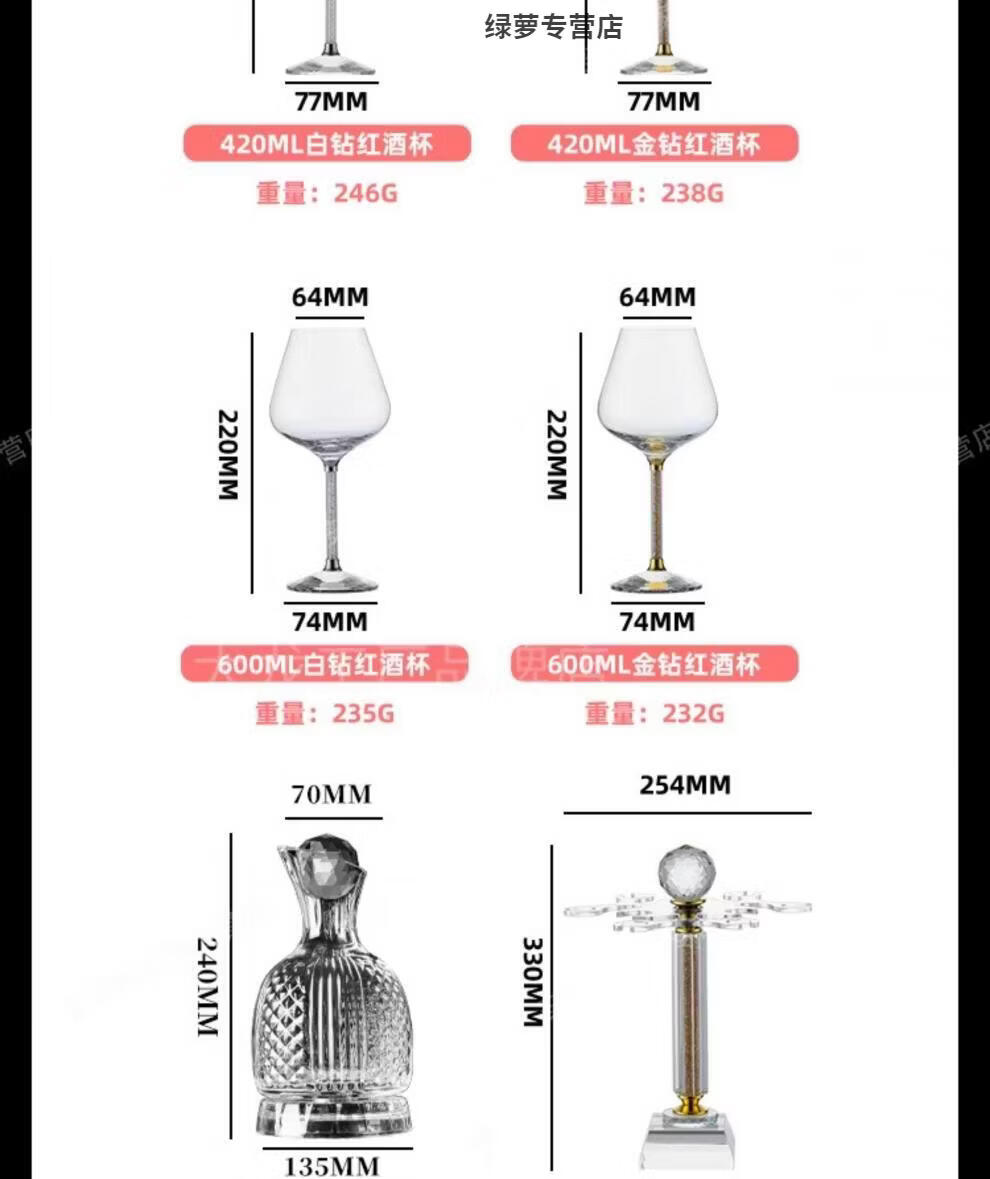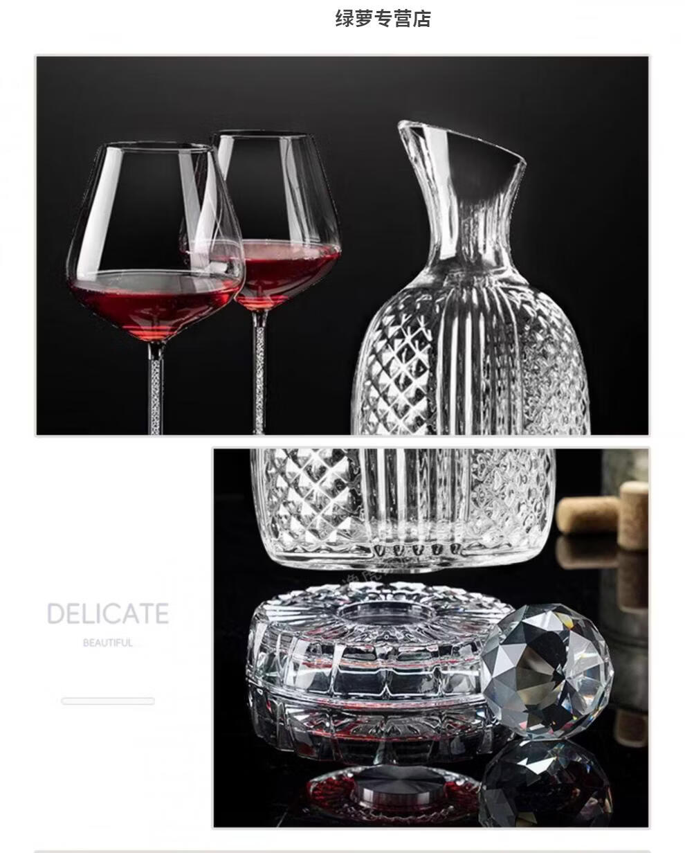 ZFEN imported quality rotating glass decanter from Japan, home crystal red wine decanter, red wine glass, wine glass, leather case, oblique mouth gold vortex decanter + gold diamond red wine glass 420ml
