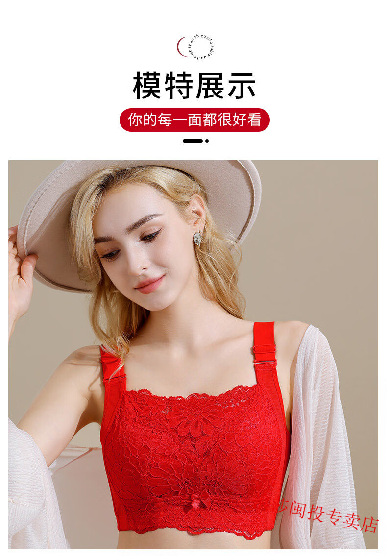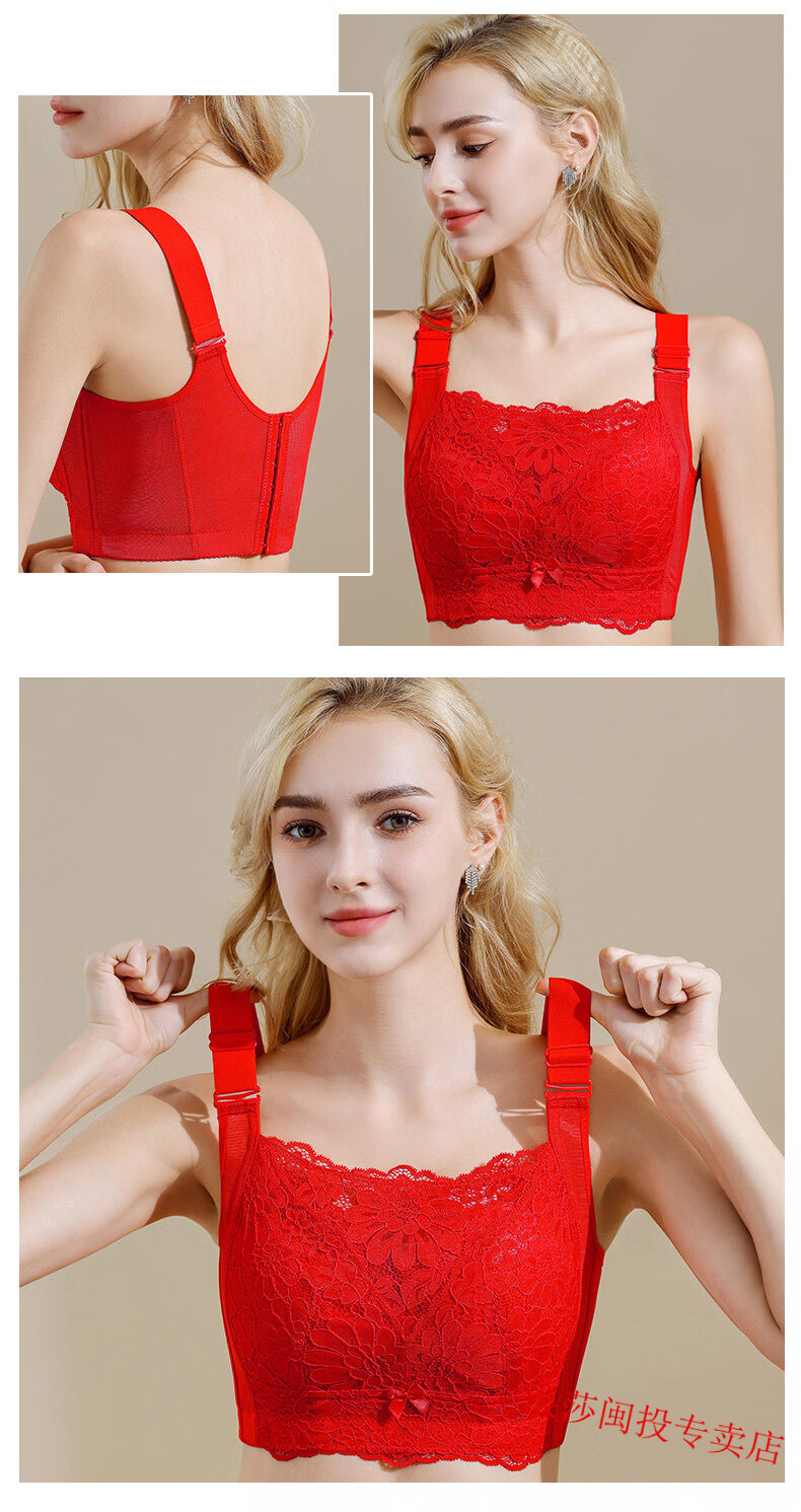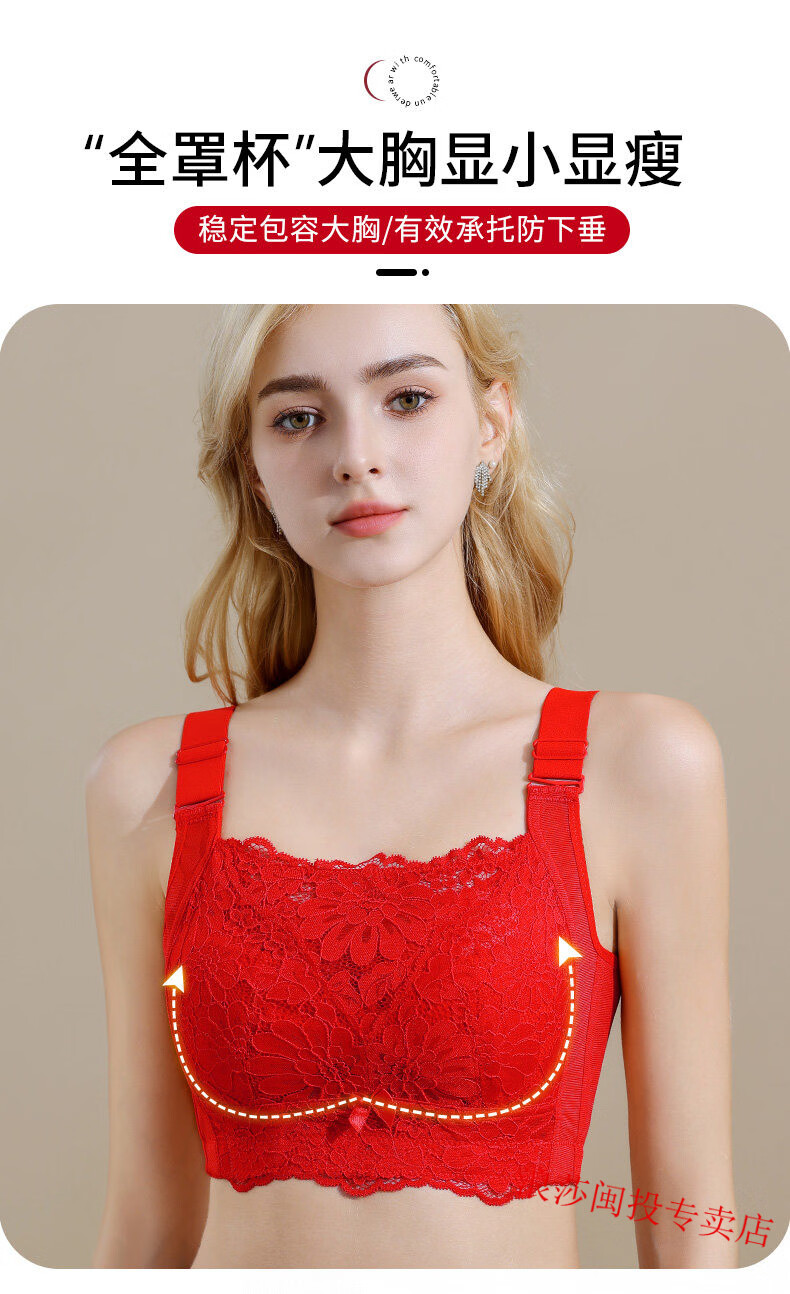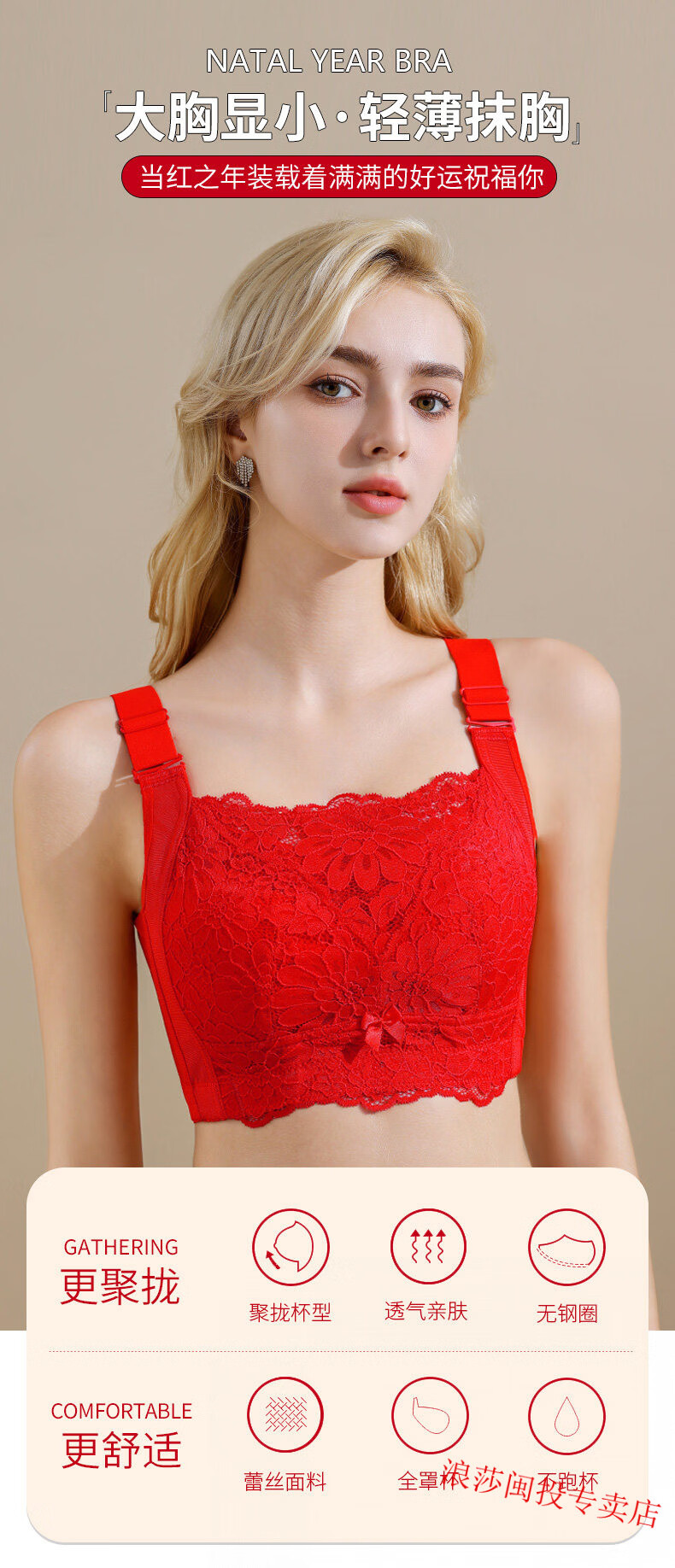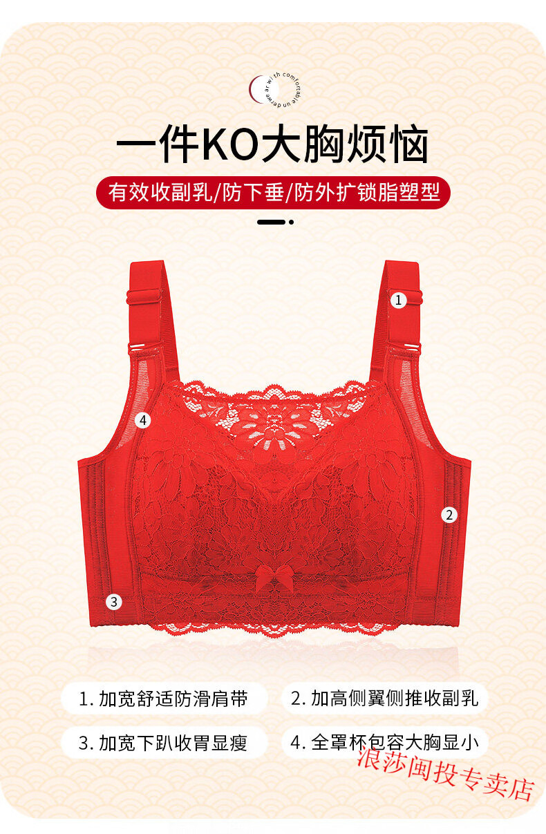 LangSha 2026 Year of the Horse zodiac year red underwear for women with big breasts, full cup push-up, side breasts anti-sagging bra, big red 75B 34