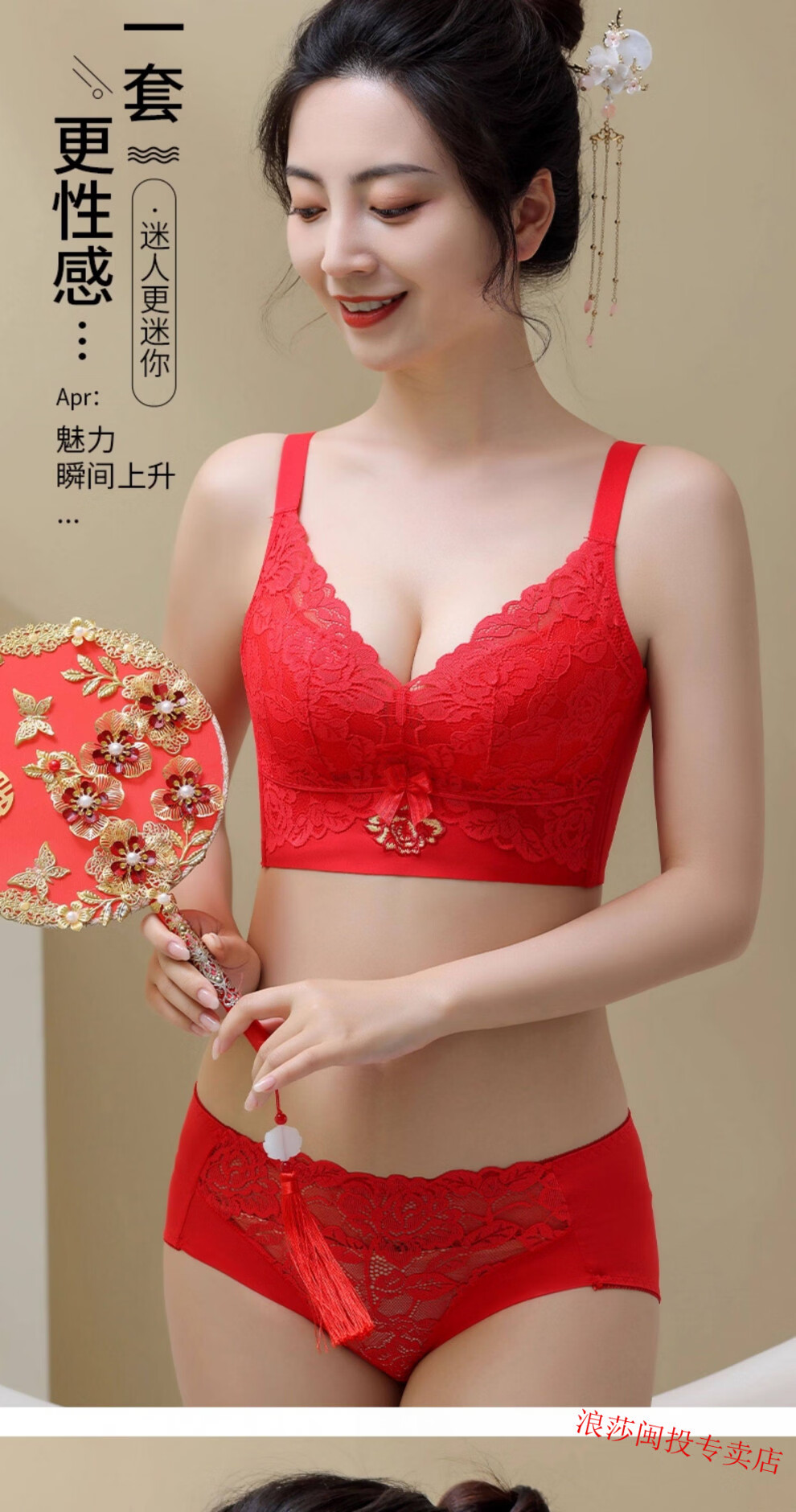 LangSha (LangSha) Year of the Horse red underwear set for the Year of the Horse, small breasts, no rims, widening, auxiliary breasts, five-breasted bra and panties 859 set red 4-breasted (without shawl) 70A 32 medium thick cup