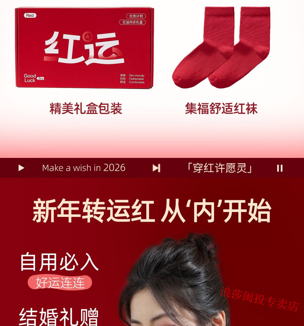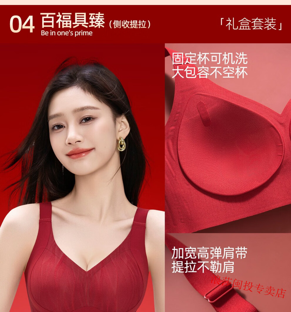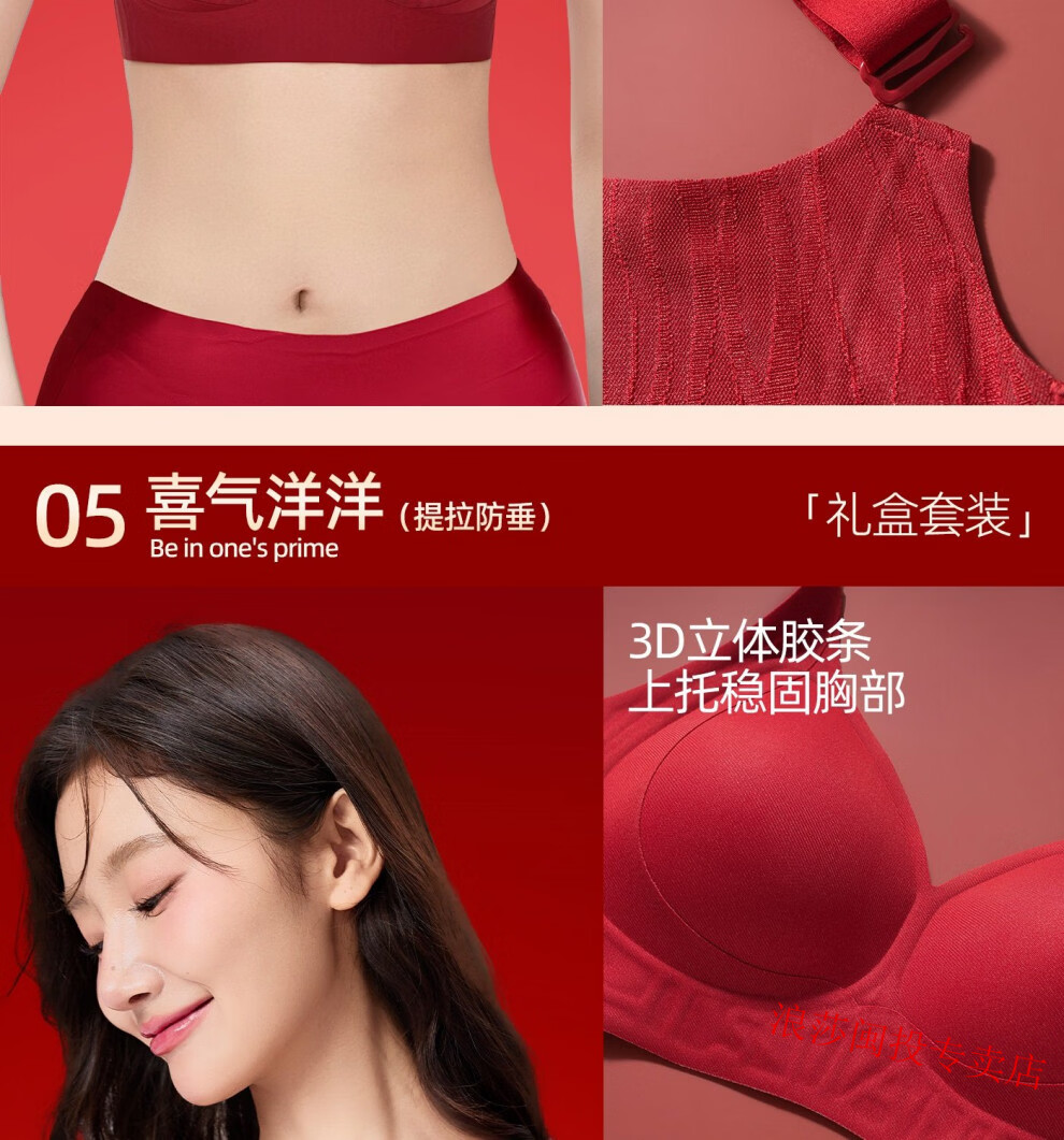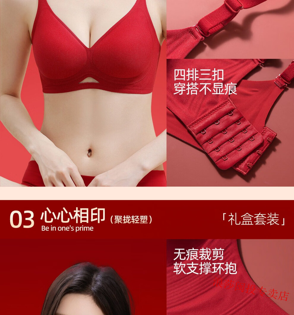 LangSha Red Zodiac Year Underwear Women Small Breast Push Up Bra Panties Set Socks 2026 Year of the Horse Gift Box Wedding Bride Bafang Laicai Underwear + Underwear + Socks + Red Envelope + Gift Box M Recommended 80-105 Jin Jin equals 0.5 kg