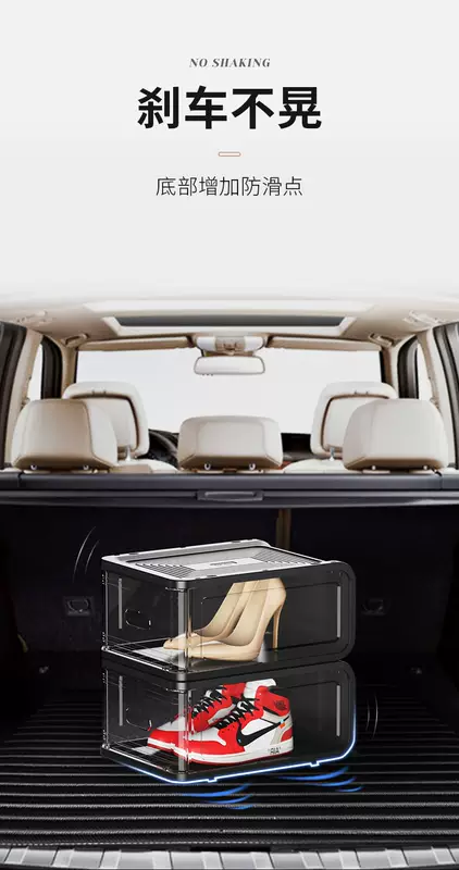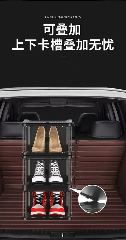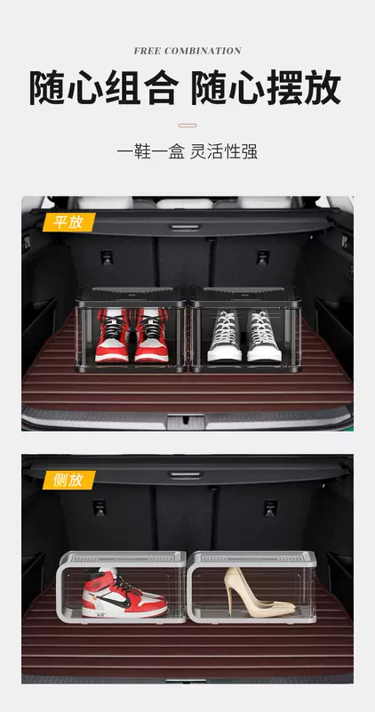 Yusenyi uses a special storage box to store shoes in the car, a car shoe box to store shoes in the trunk of the car, a small transparent shoe cabinet, magnetic suction type (brown panel), 2 pieces, adjustable partitions, 38x28x18cm, 38 pieces, 38x28x18cm
