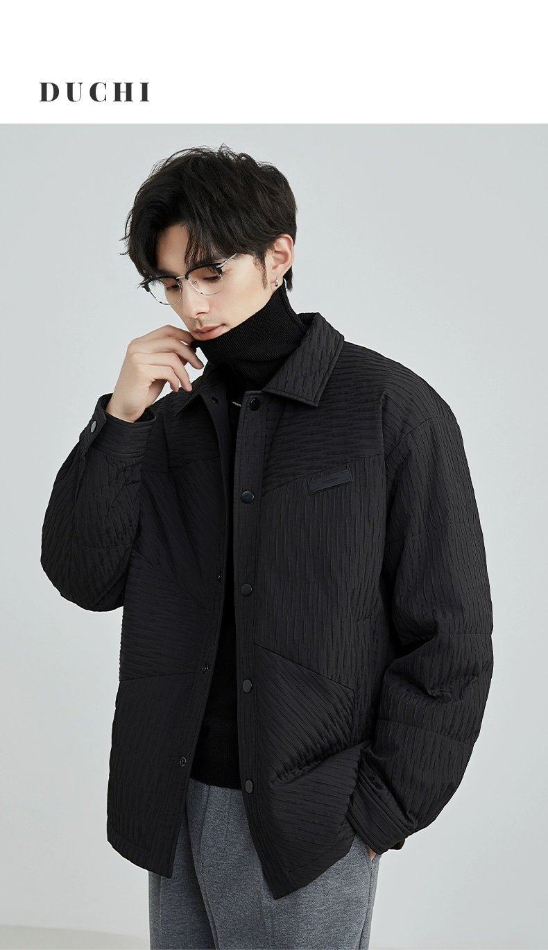 Duchi DUCHI Мужской легкий пуховик Мужская зима 2025 г. Новый стиль рубашки с короткими лацканами Белый утиный пуховик Черный XL Рекомендуемый вес 151-170Jin Jin равен 0,5 кг