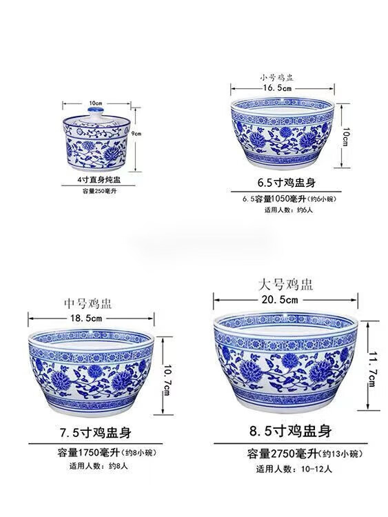 Blue and white porcelain lotus chicken cup bowl ceramic self-service seasoning bowl tableware stew cup soup bowl special catering hotel 6.5 inch chicken cup