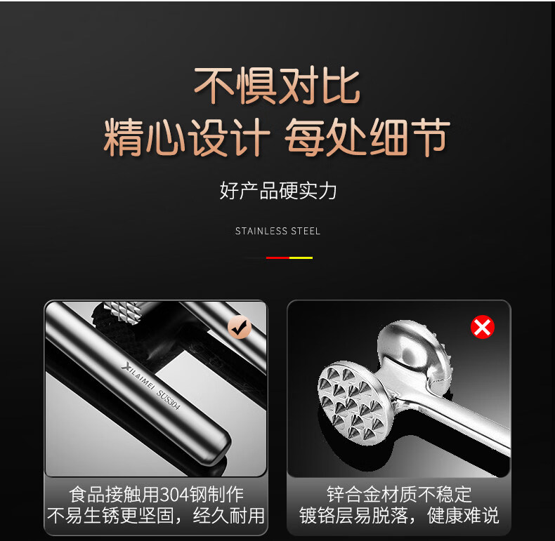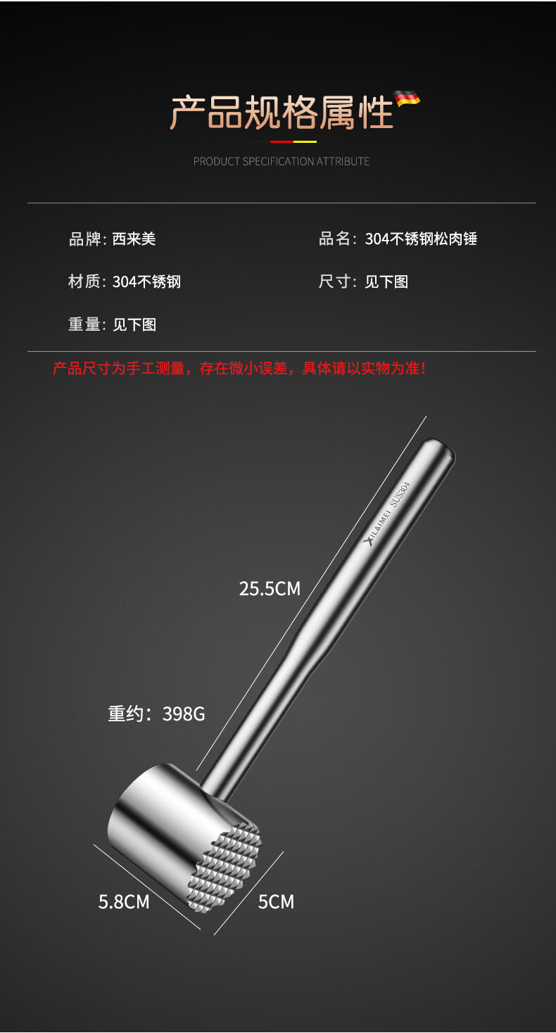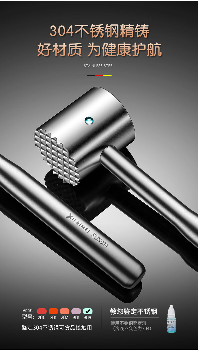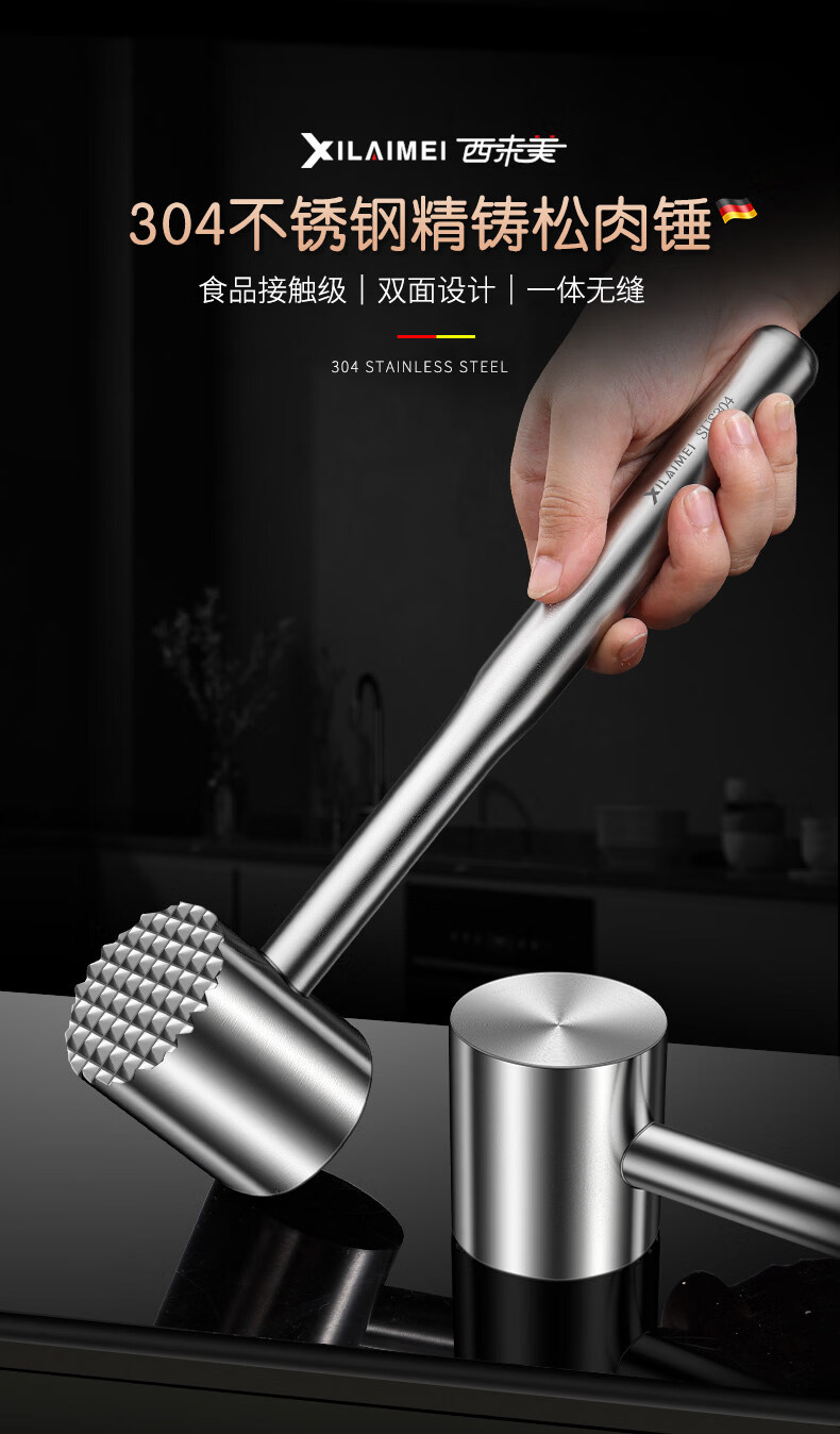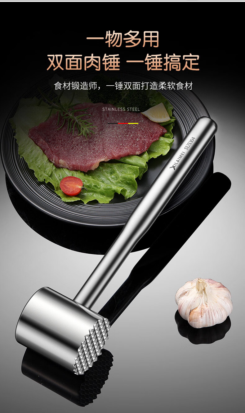 Aoyanlai 304 ablandador de carne de acero inoxidable herramienta para romper tendones y filetes domésticos acero 304 (estilo recto)