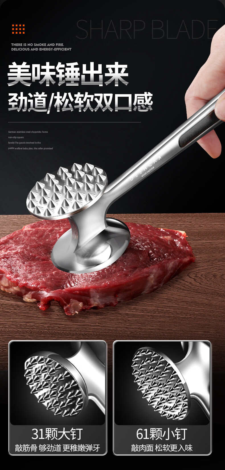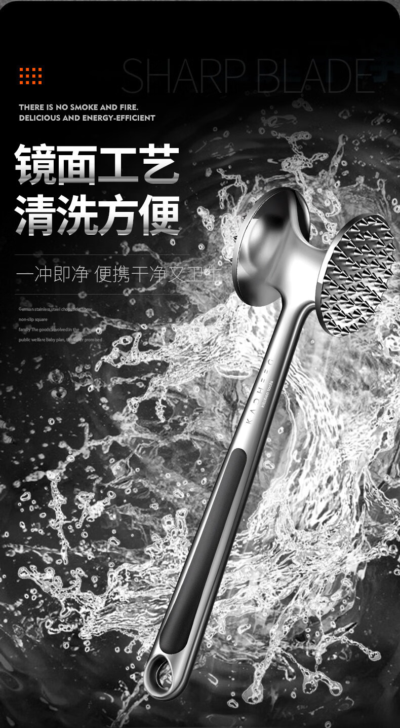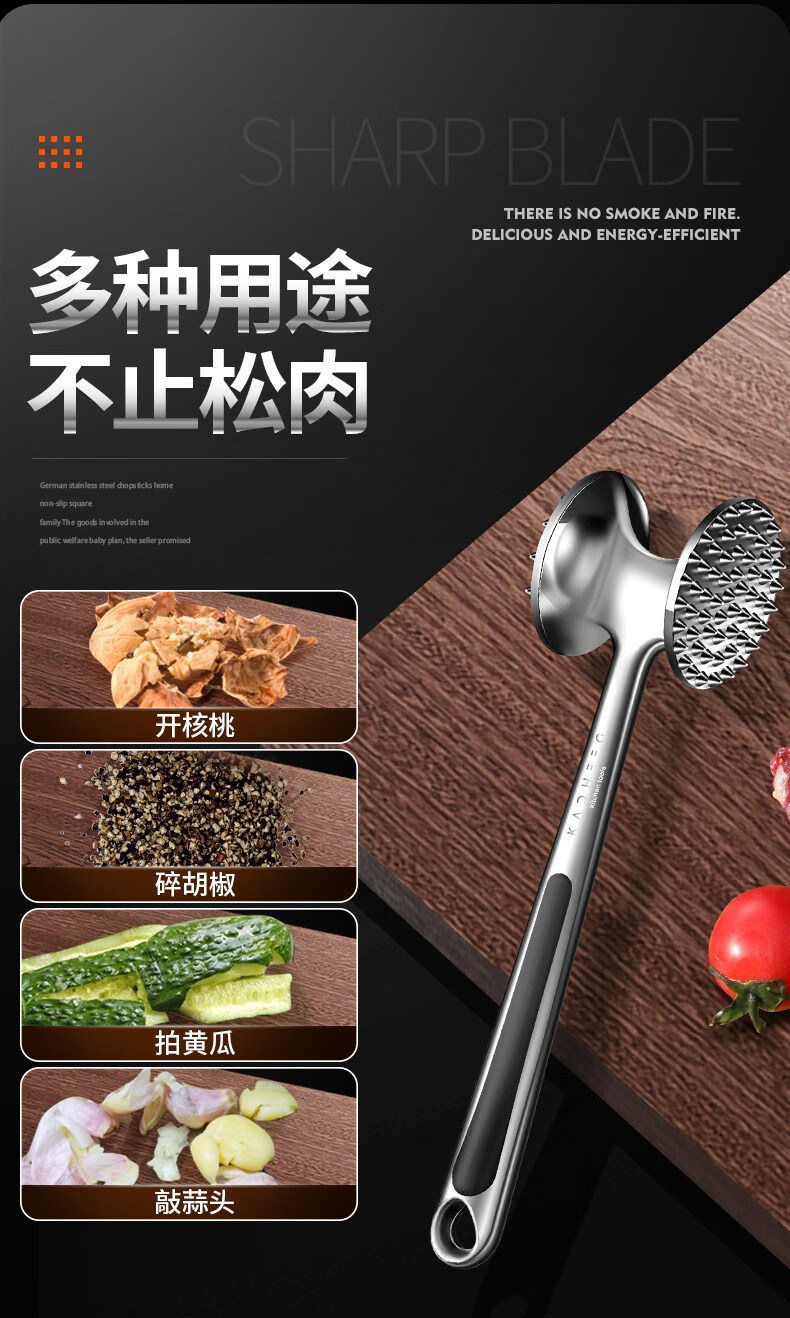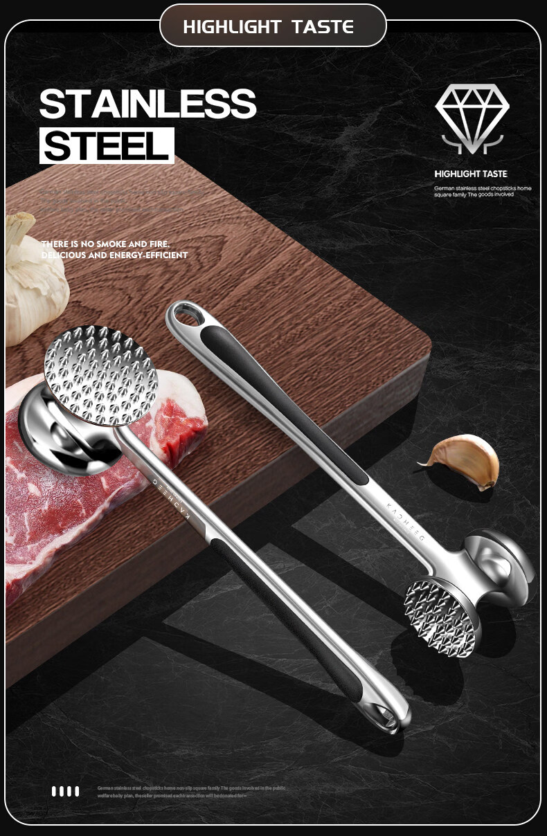 澳颜莱不锈钢牛排锤家用松肉神器敲打断筋器大排锤子 小号双面松肉锤鎹:油刷
