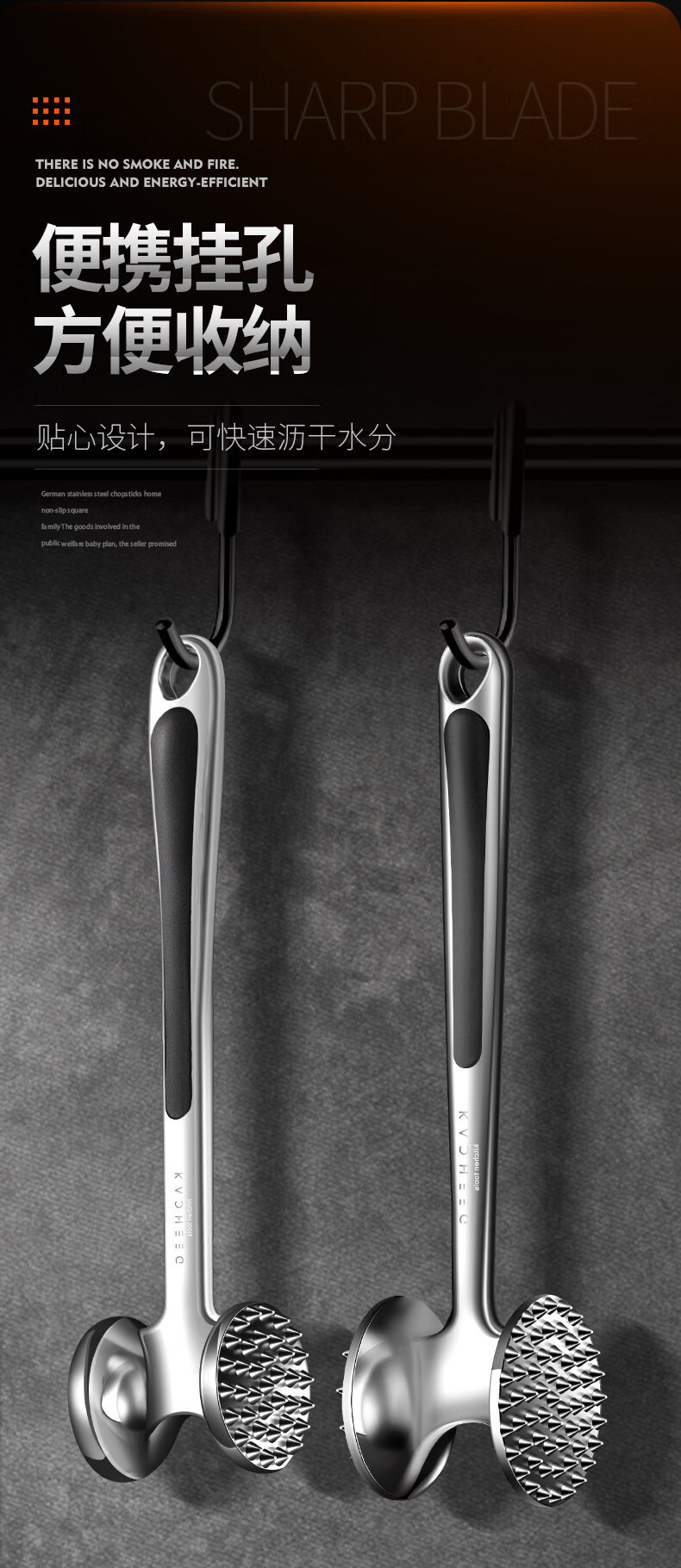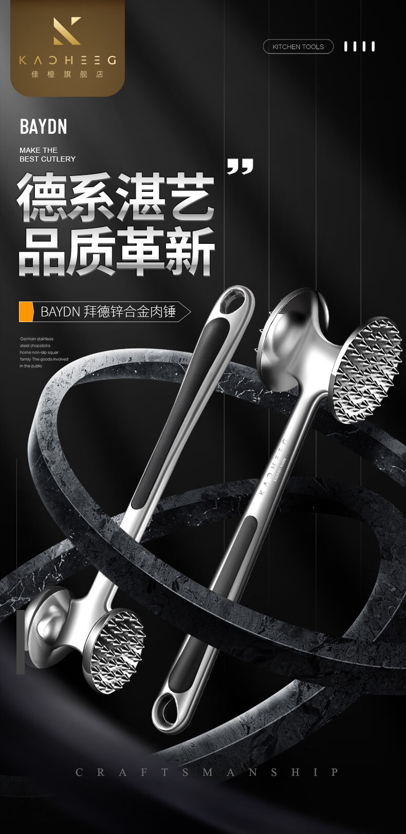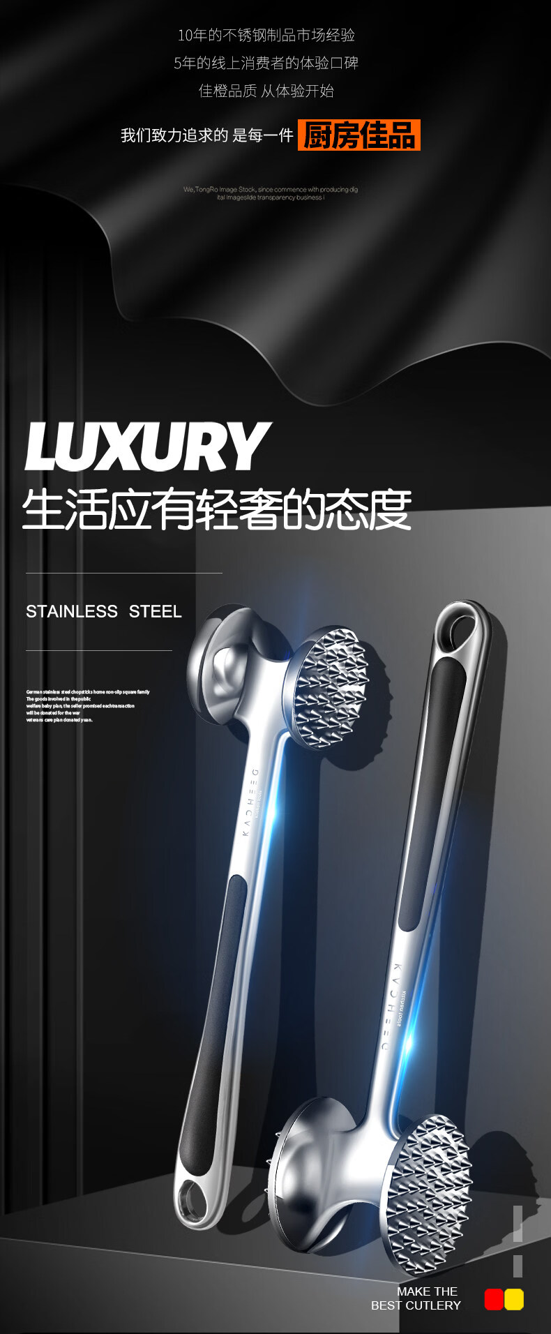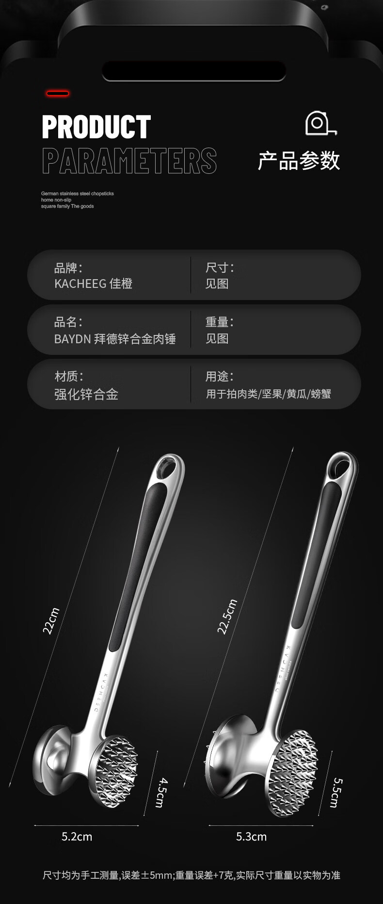 澳颜莱不锈钢牛排锤家用松肉神器敲打断筋器大排锤子 小号双面松肉锤鎹:油刷