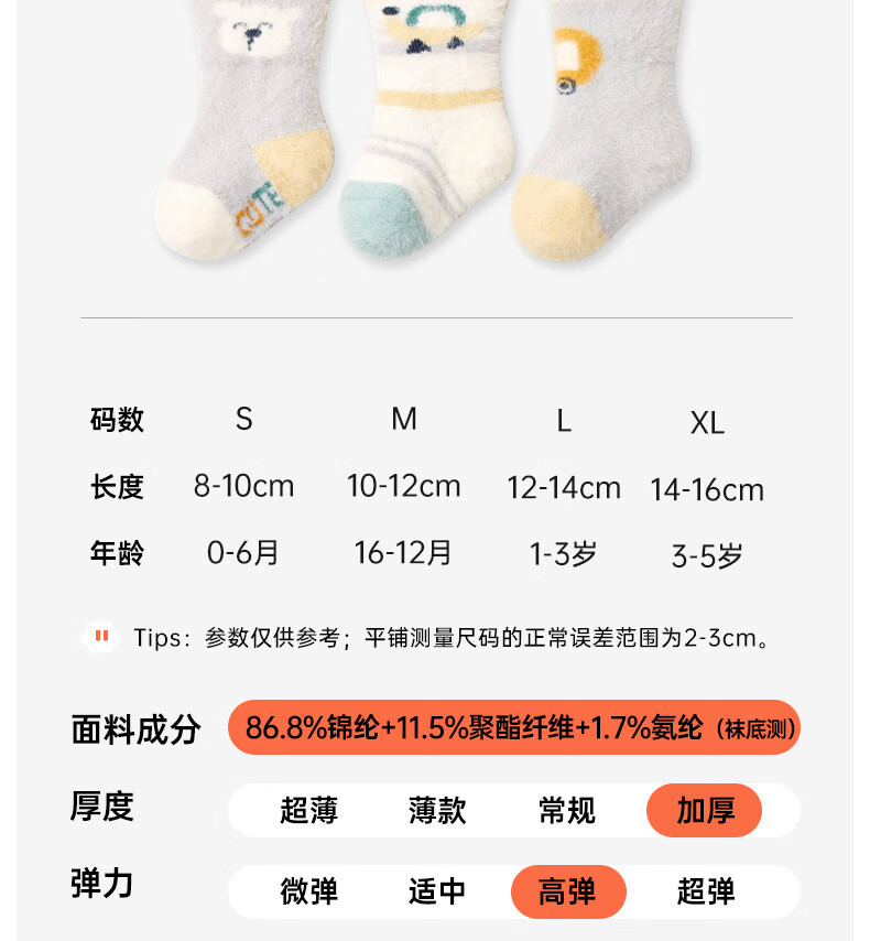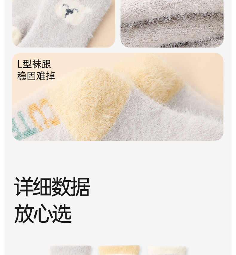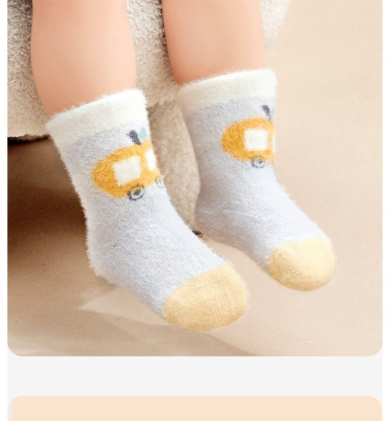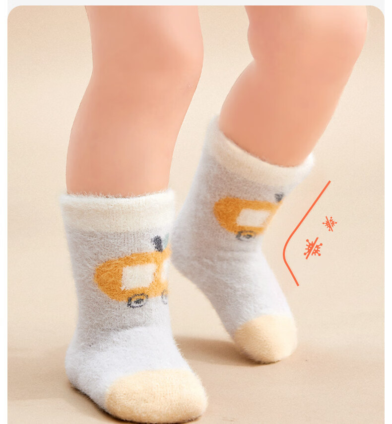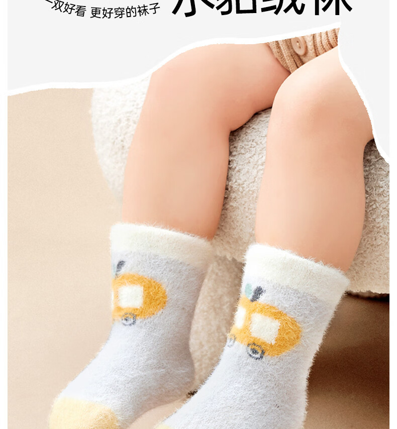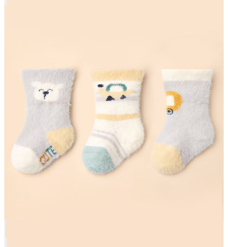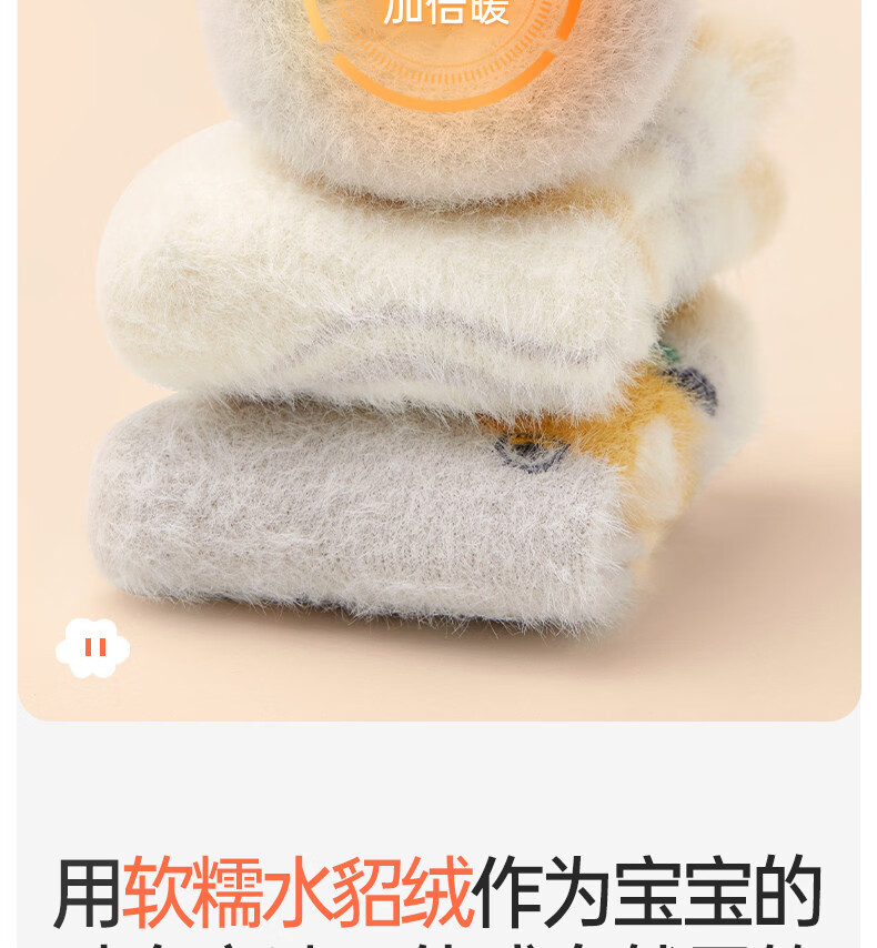 Cotton baby socks plus velvet for boys and girls in winter warm mink socks thickened cartoon plush autumn and winter mid-calf socks 3 pairs B5039-Adventure Bear Set 3 pairs warm mink velvet 1-3 years old - recommended foot length 12-14CM
