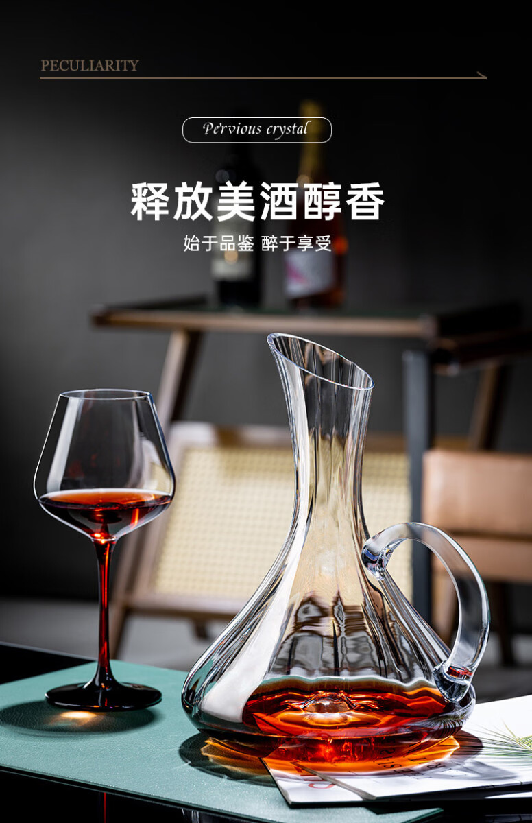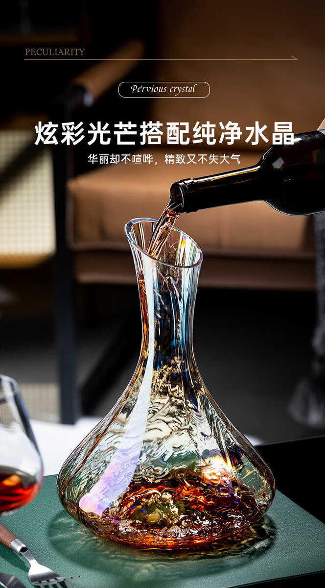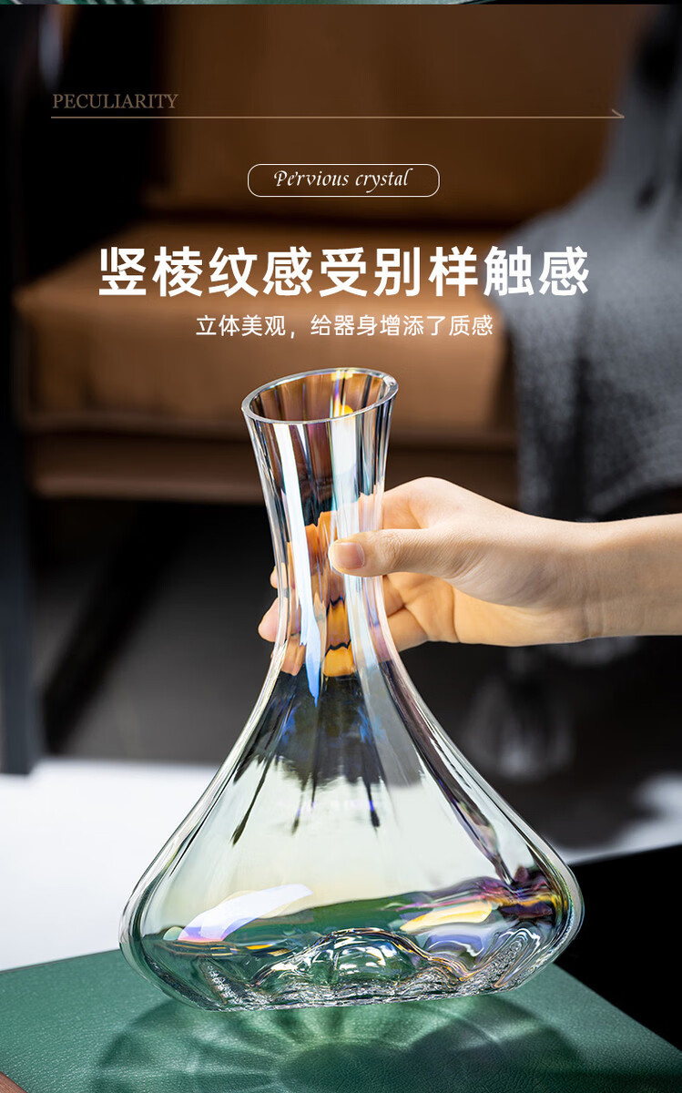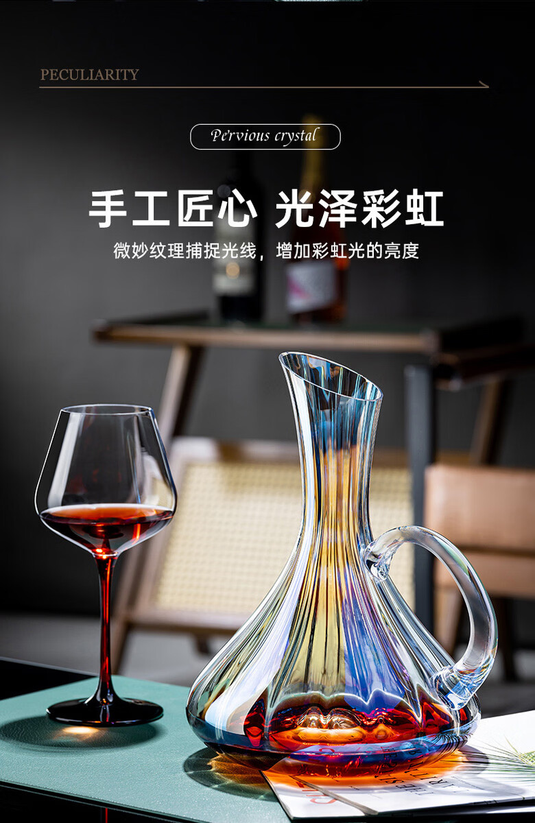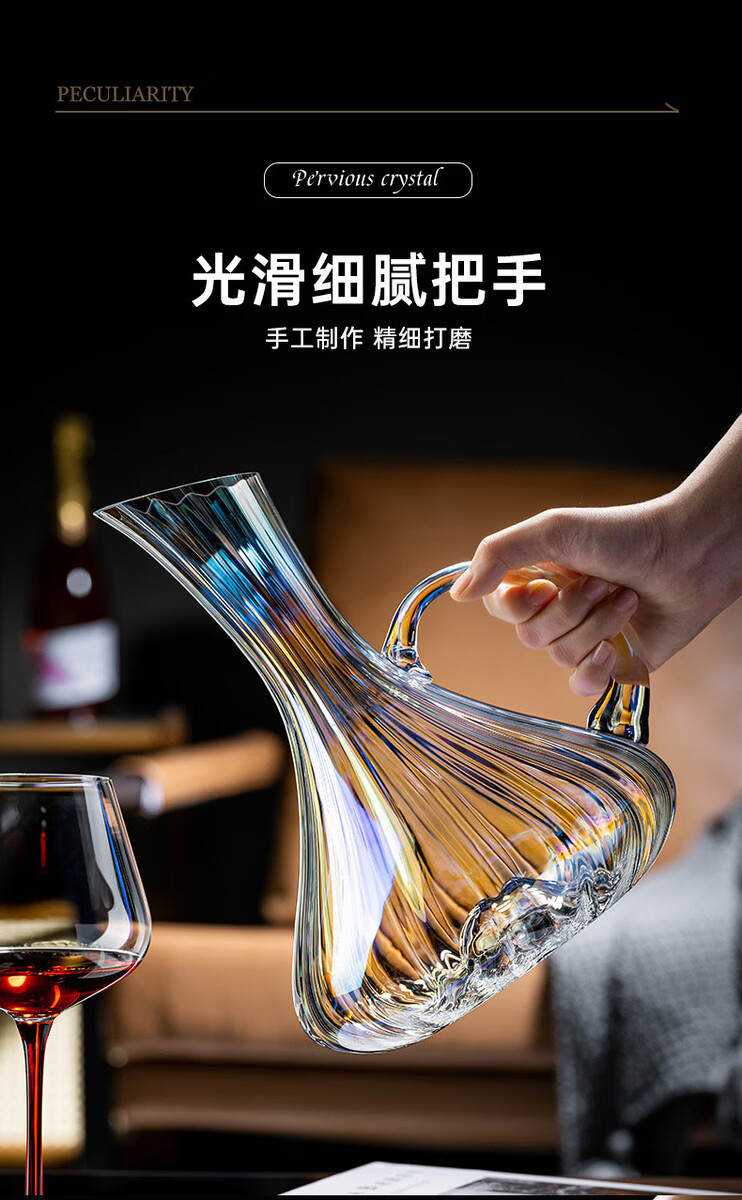 Fantasy high-end crystal glass red wine decanter, creative and personalized household large-size wine quick wine flask wine set, with handle decanter 2.2L, free decanter brush
