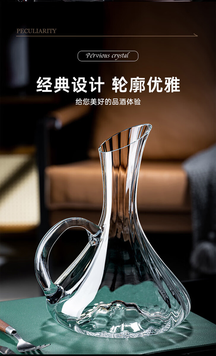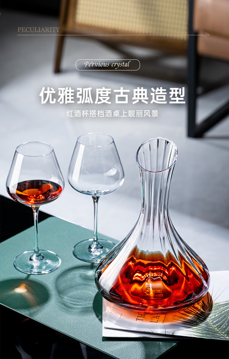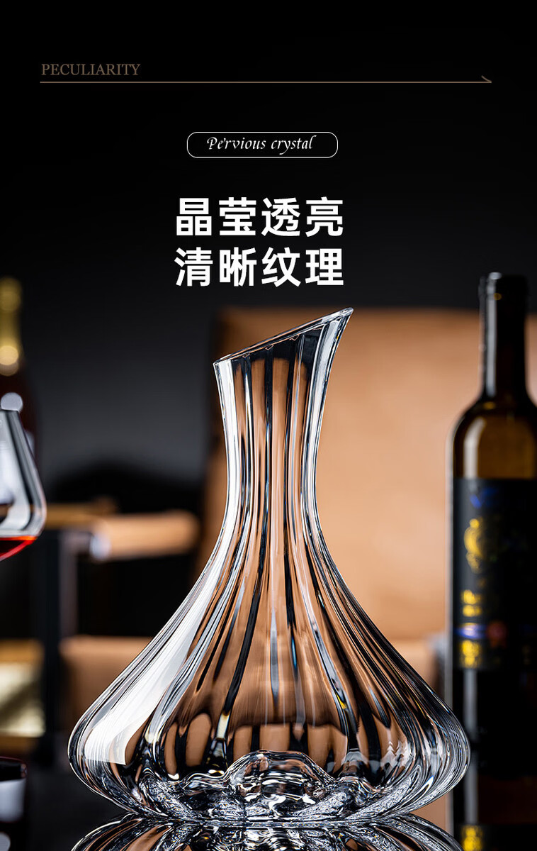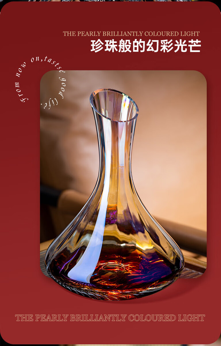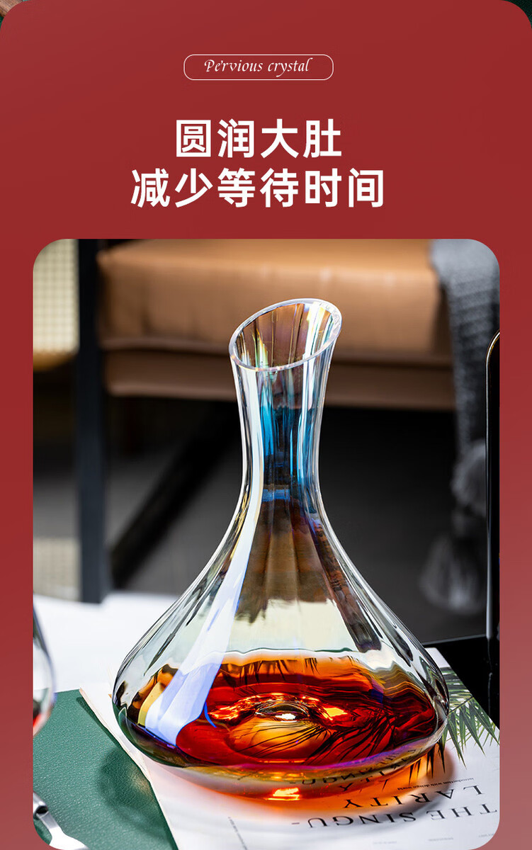 Fantasy high-end crystal glass red wine decanter, creative and personalized household large-size wine quick wine flask wine set, with handle decanter 2.2L, free decanter brush