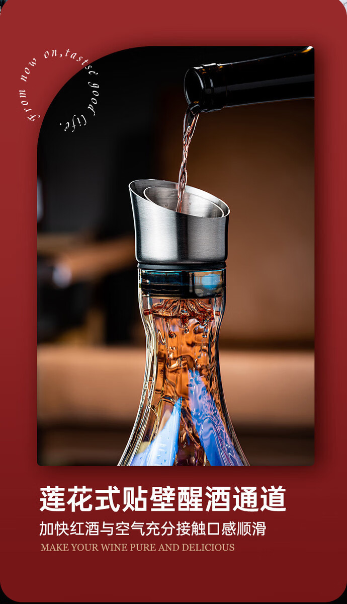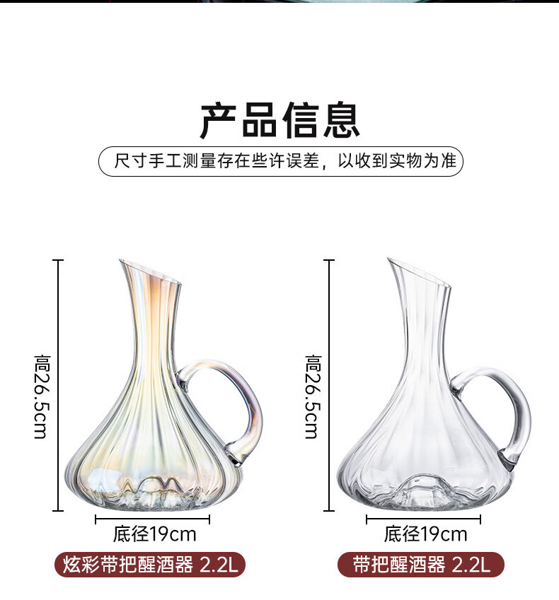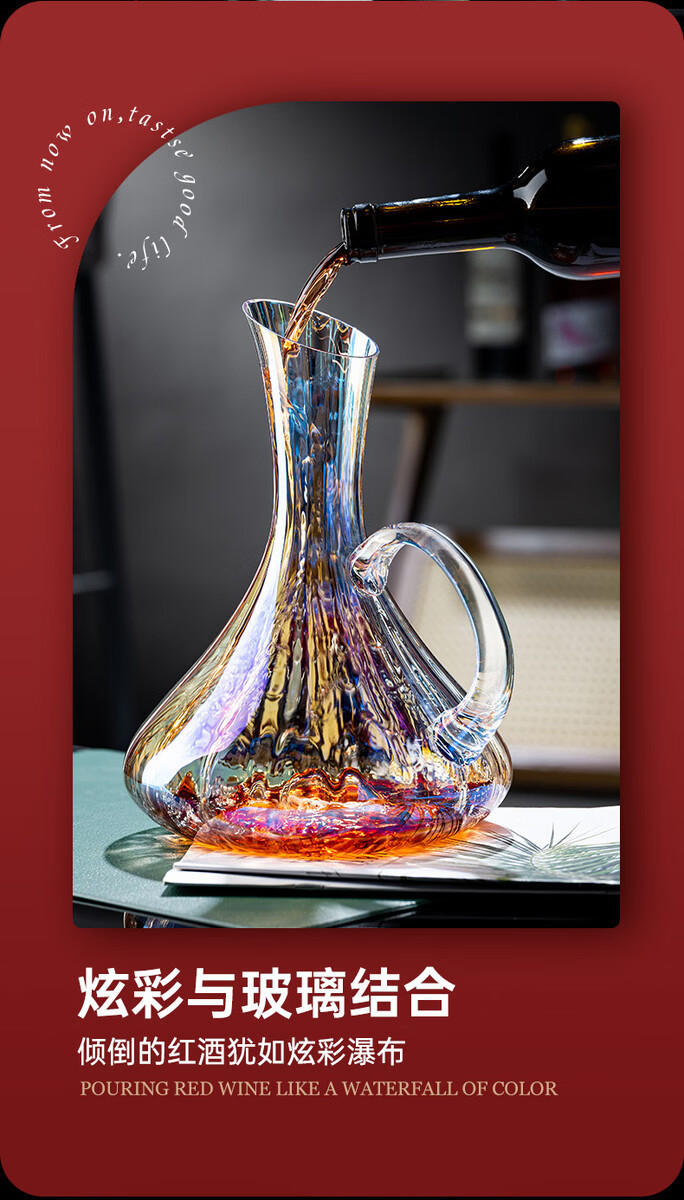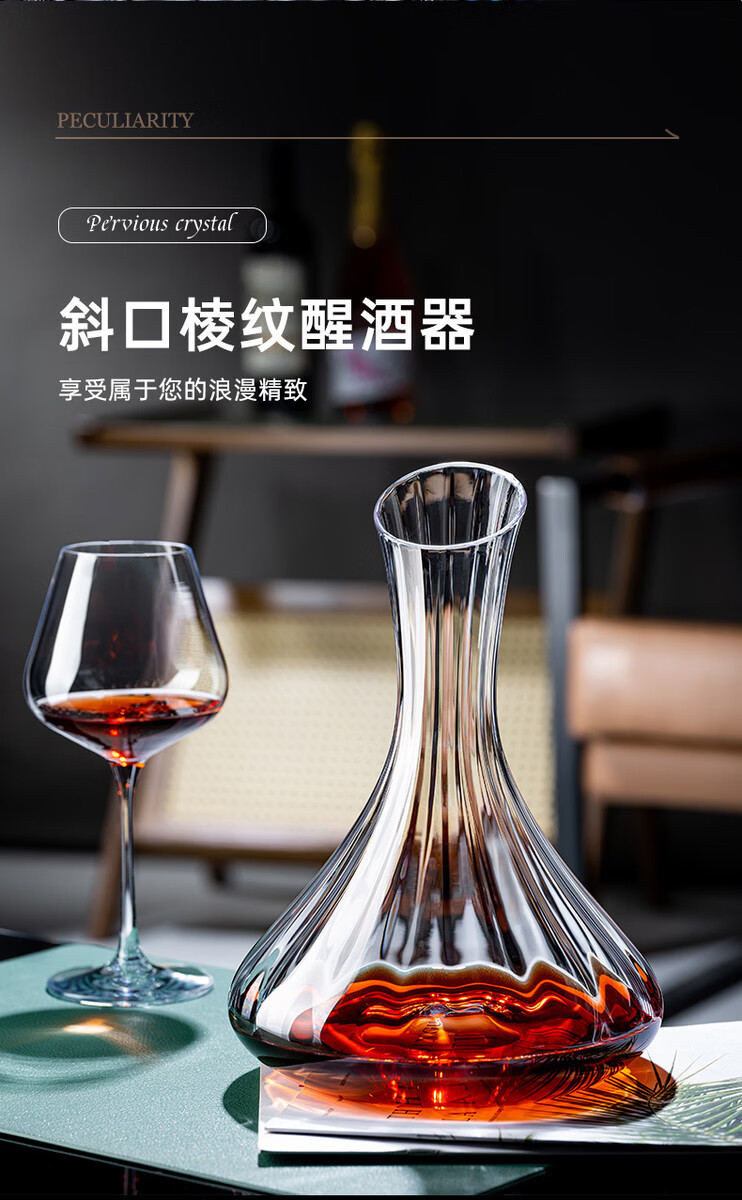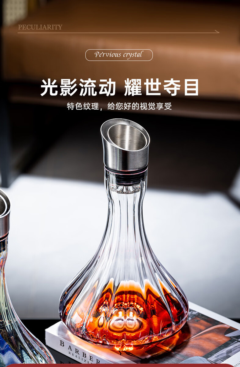 Fantasy high-end crystal glass red wine decanter, creative and personalized household large-size wine quick wine flask wine set, with handle decanter 2.2L, free decanter brush