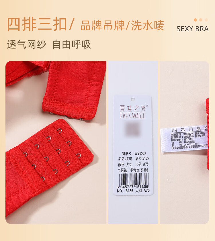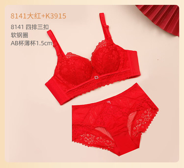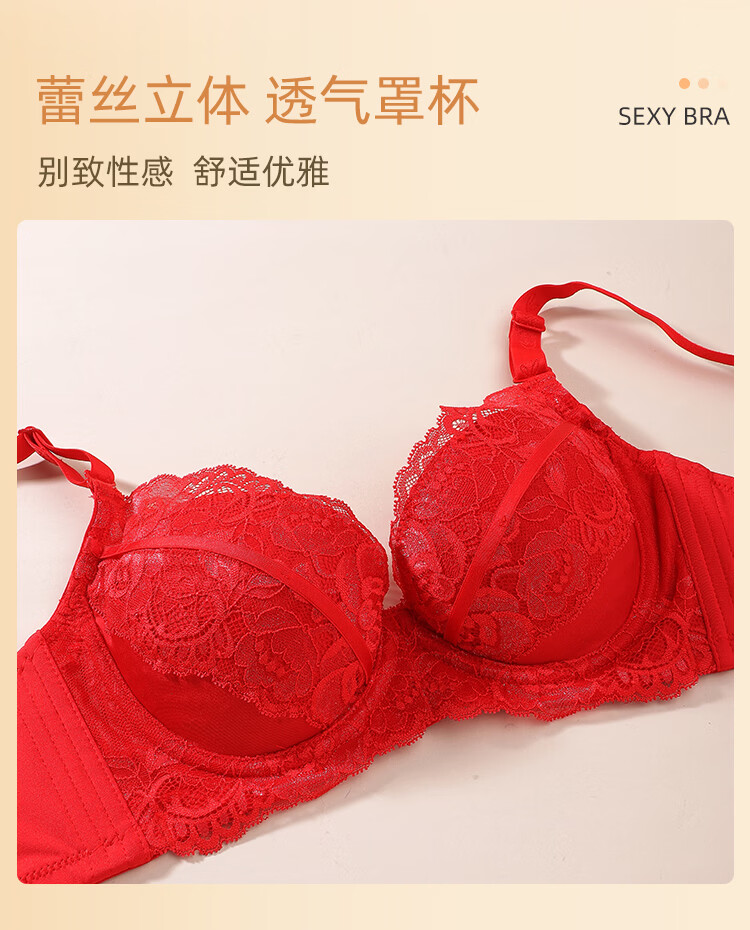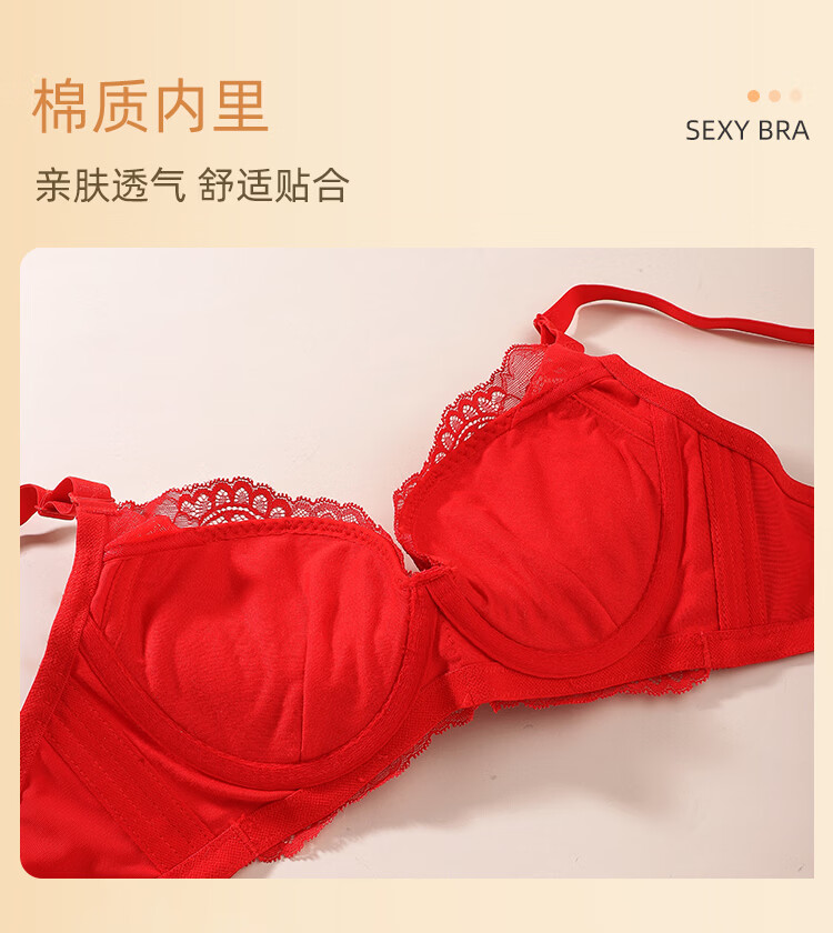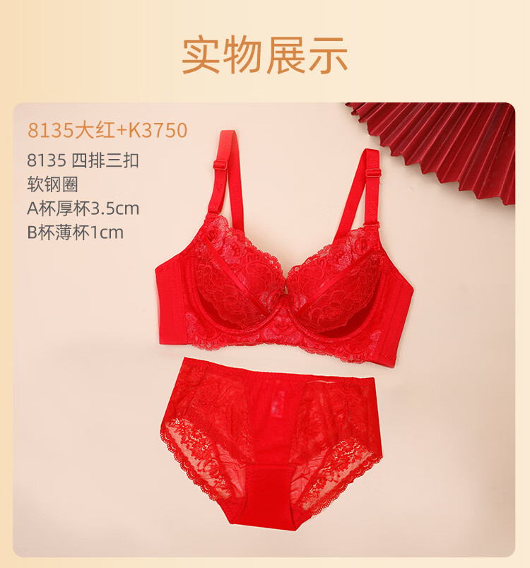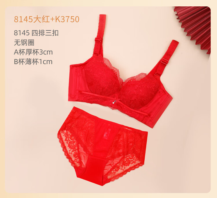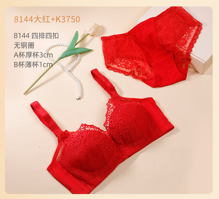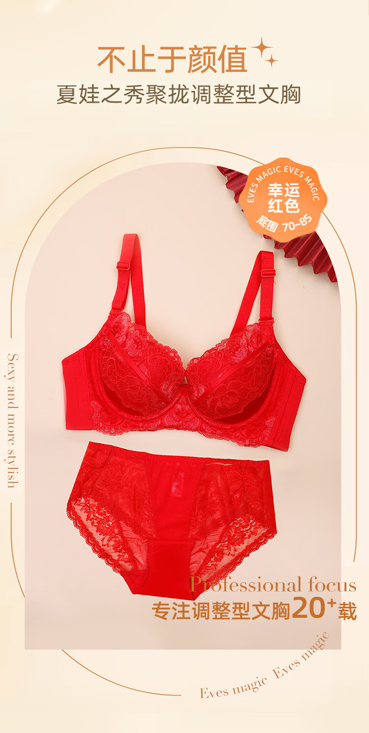 Eve's Show Red Underwear Women's Small Breasts Push Up Big Bra Panties 2026 Wedding Bride's Zodiac Year Set Big Red Set (3721) 75A /34A