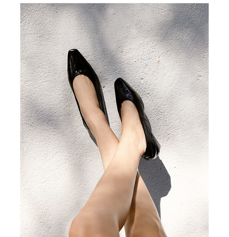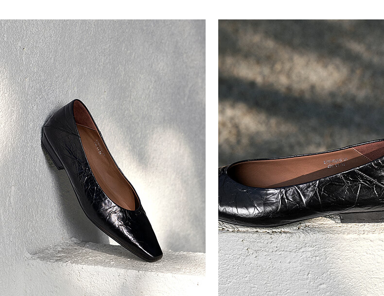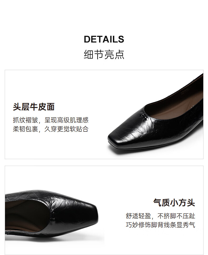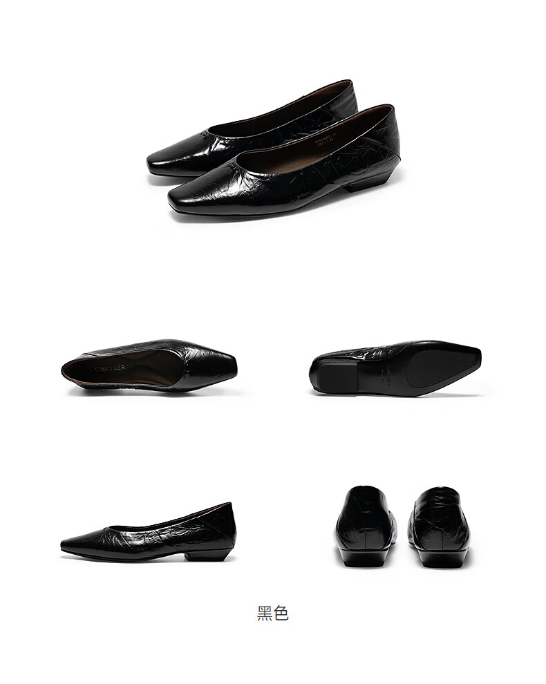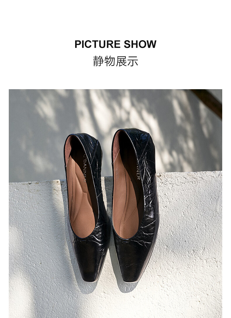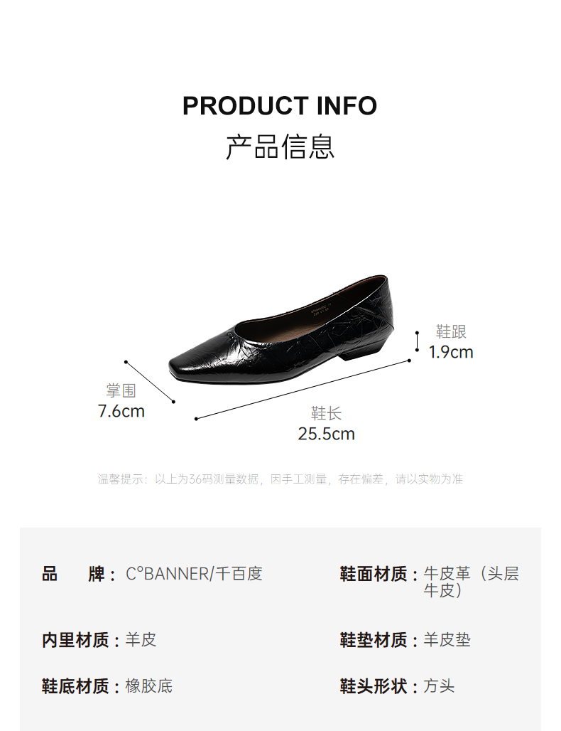 C.BANNER Low Heel Square Toe Shallow Mouth Shoes Women's 2026 Spring New Genuine Leather Commuting Flat Shoes Black 36 (230mm)