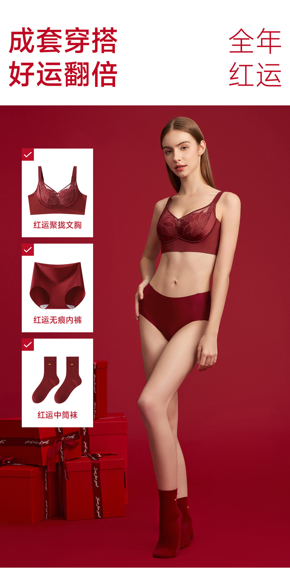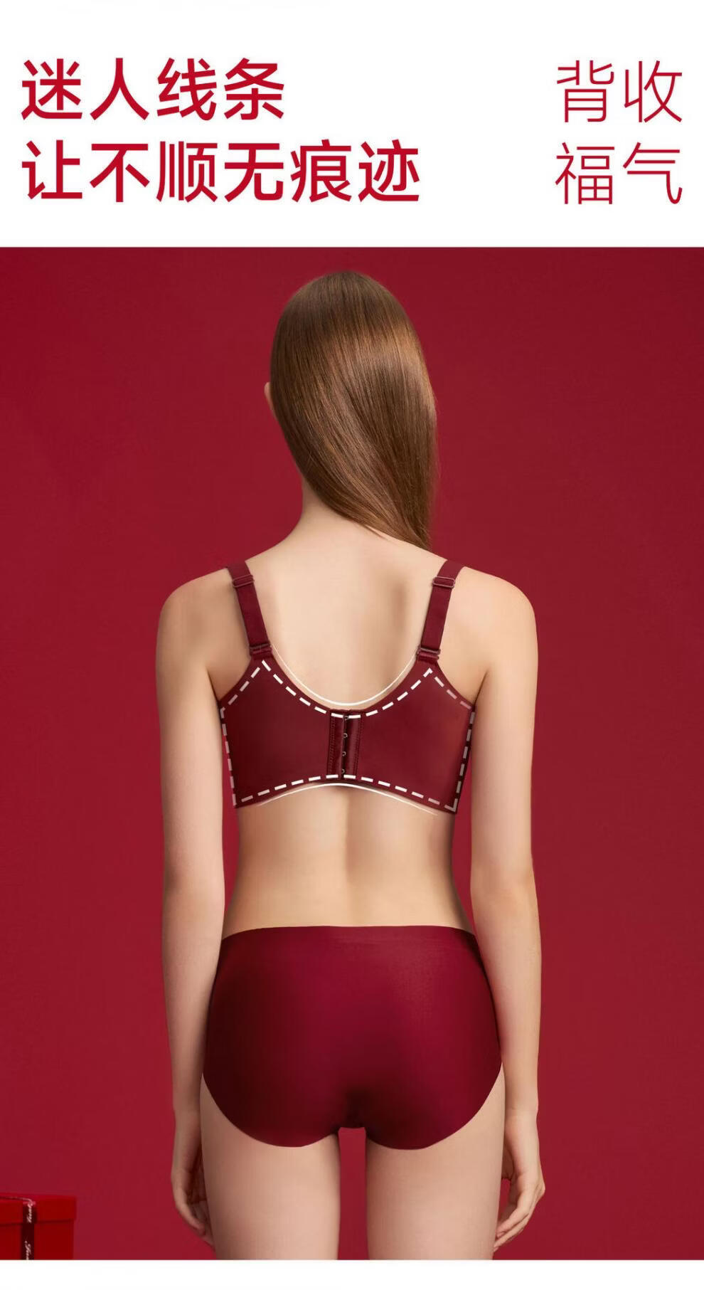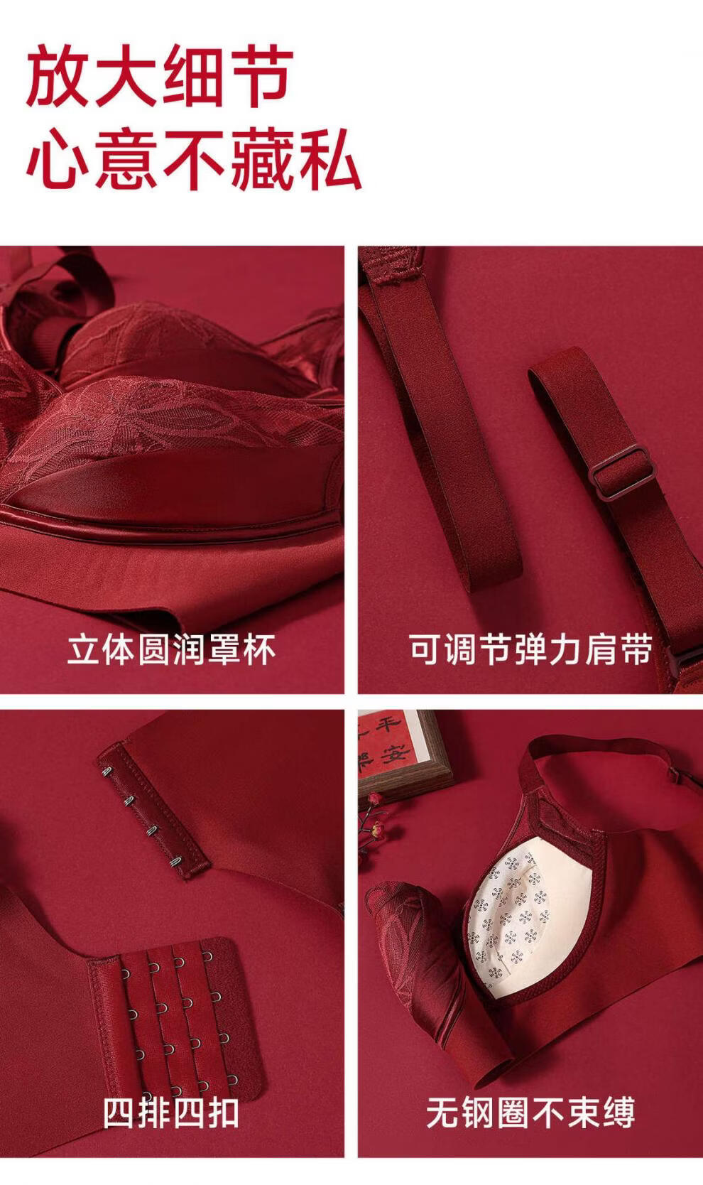 Yalu Lace Red Underwear Bra Set Gift Box Gathering Bridal Wedding Pull-Up Anti-sagging Soft Support Underwear ZH8266-C Single/Pack + Gift Box 90C Recommended Weight 155 170Jin Jin is equal to 0.5 kg