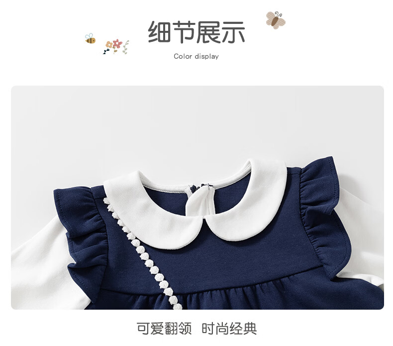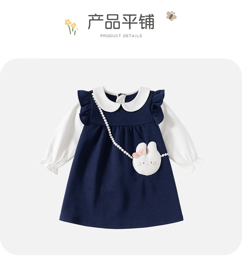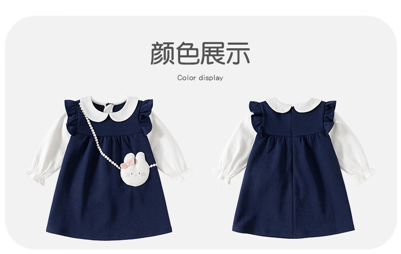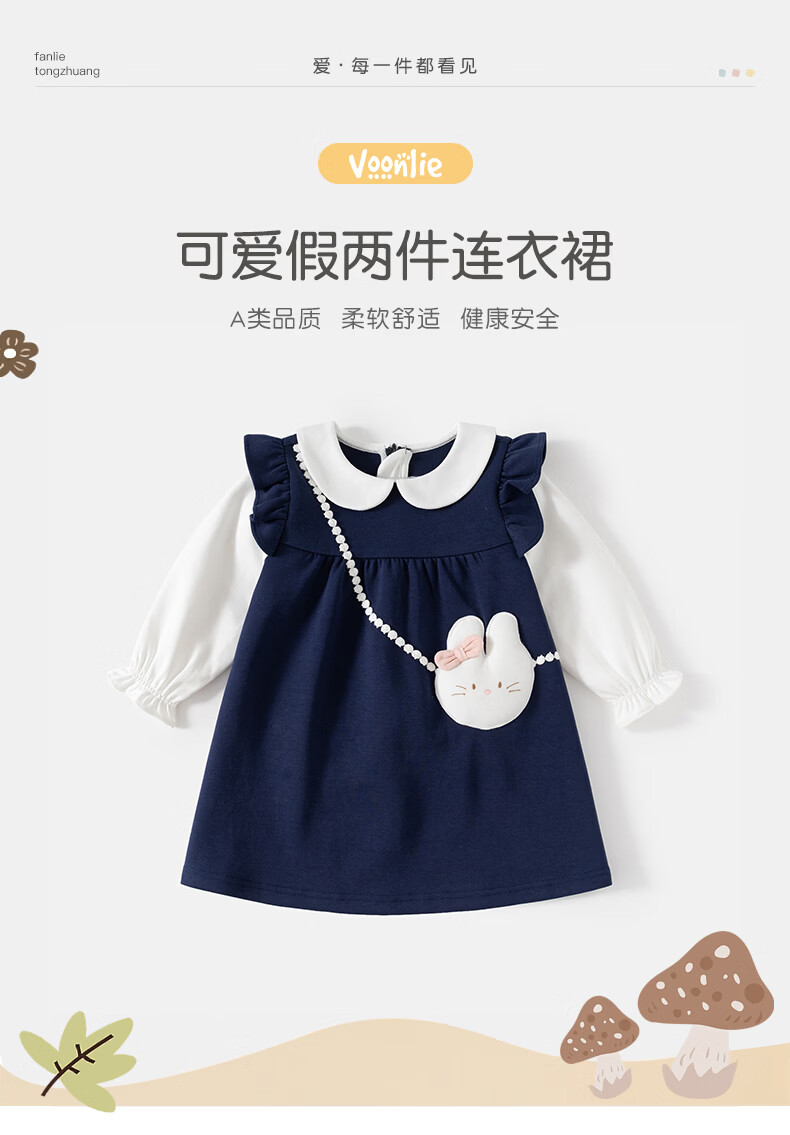Fanlie VOONLIE girls dress spring 2026 new style children's fake two-piece princess dress baby one-year-old dress spring and autumn blue 80 cm