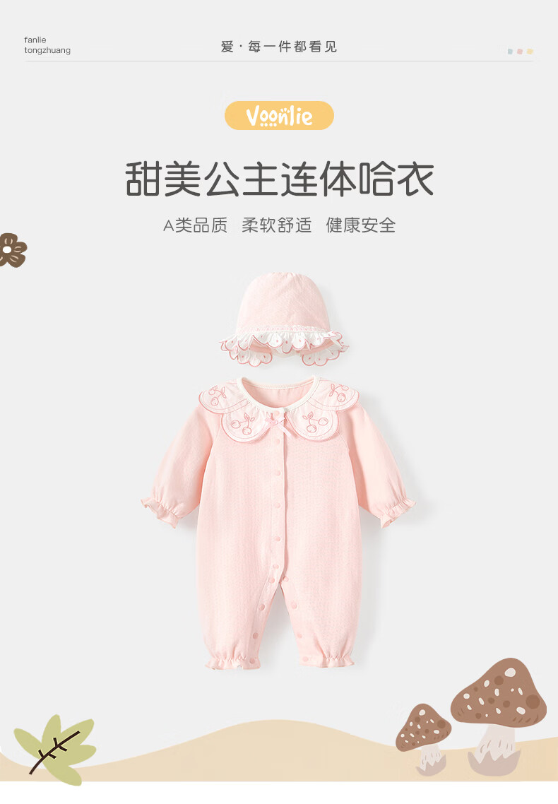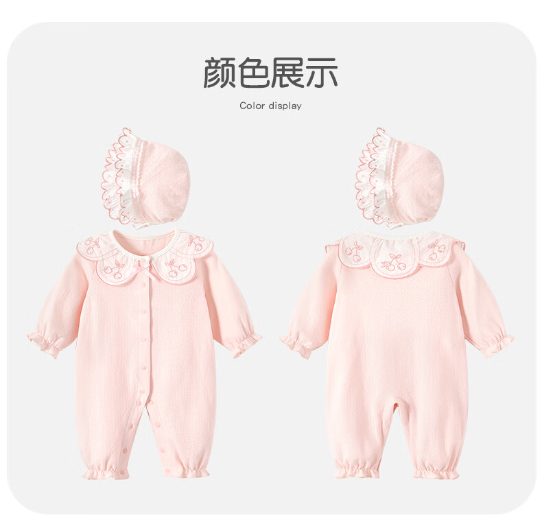 Fanxian baby clothes spring newborn baby girl onesie full moon hundred days princess outing clothes spring and autumn pink 66cm