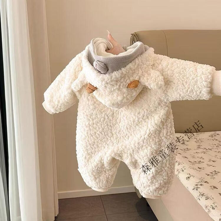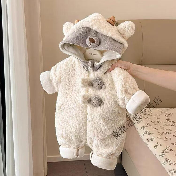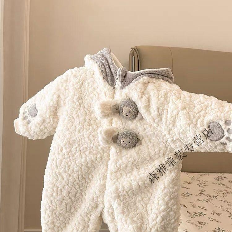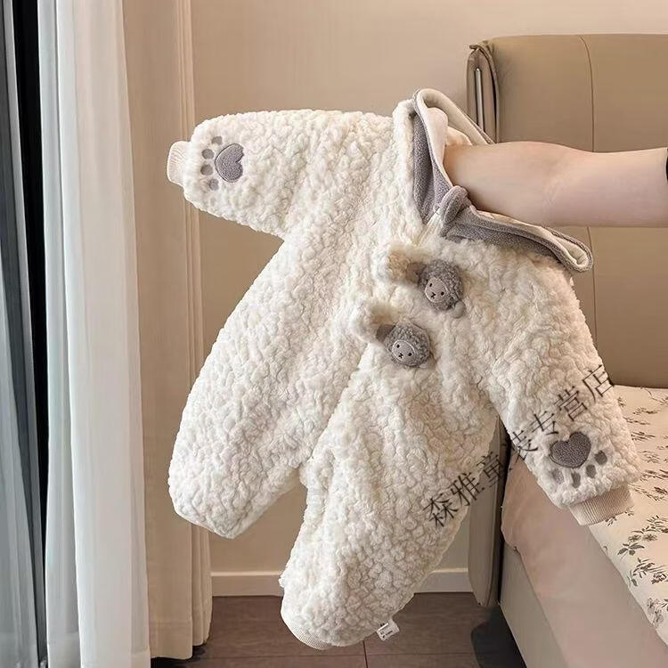 Mumuwu 2026 Autumn and Winter Baby Clothes Cute and Cute Velvet One-Piece Cotton Clothes for Little Baby Winter Outings and Cuddle Clothes Beige Bear Plus Velvet Thickened One-Piece Clothes 73cm