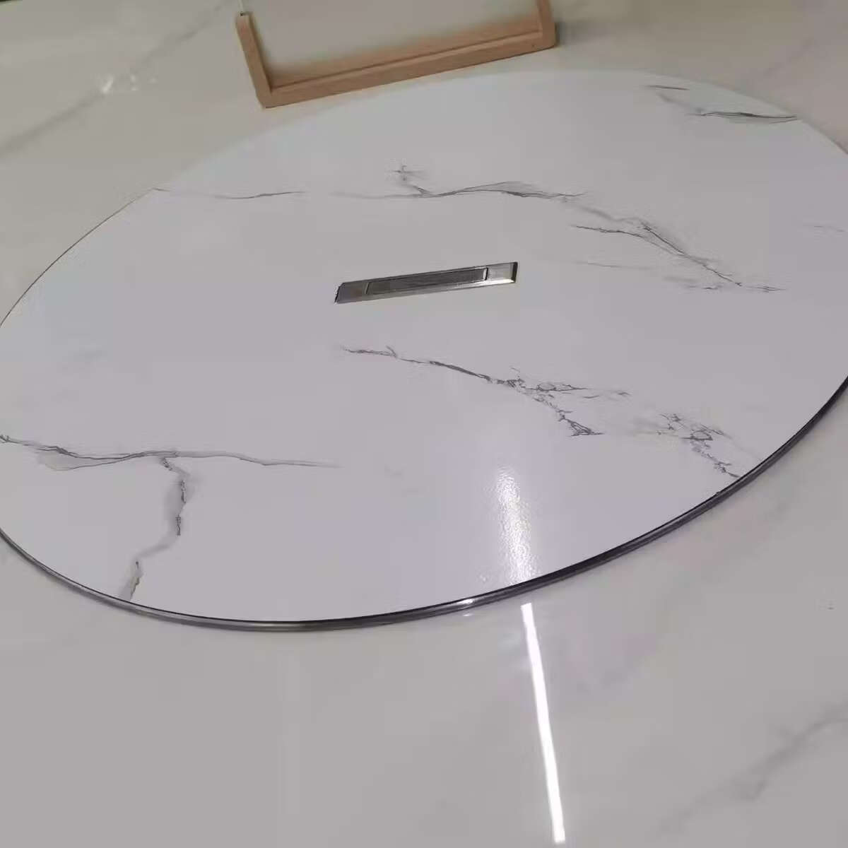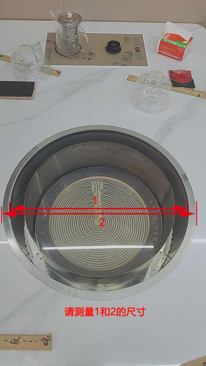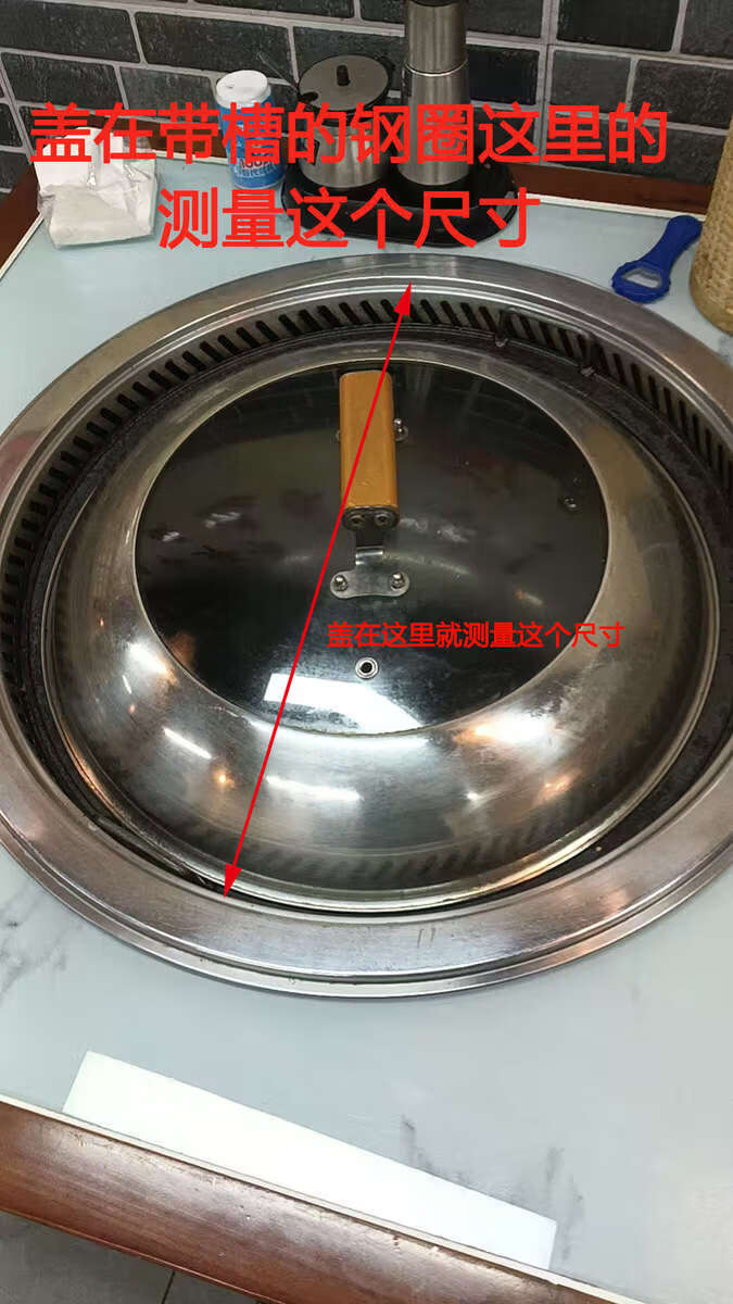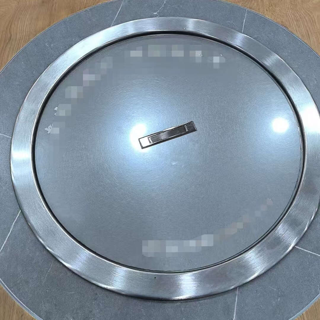 Yusenyi iron pot stew table top cover, hole-patch cover, hot pot steel ring cover, smoke ring cover, hot pot sunken pot ring cover for placing vegetables, white marble pattern stainless steel flat cover, 54cm base plate customization