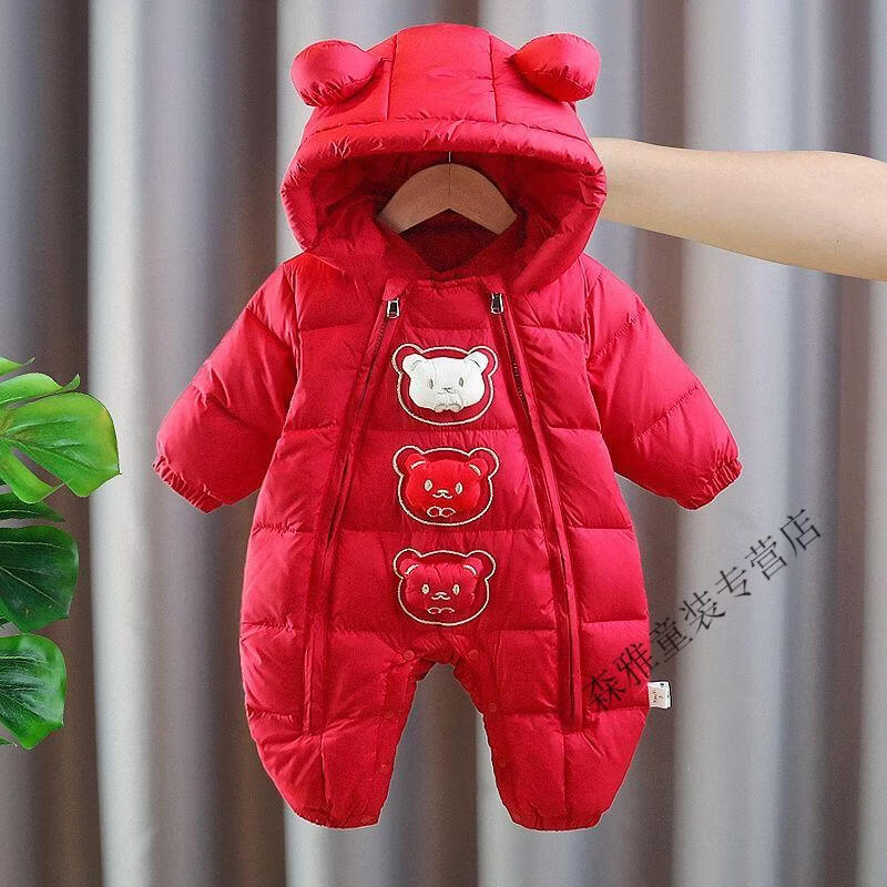 Mumuwu (mumuwu) baby outing clothes, winter clothes, winter New Year clothes, jumpsuit, baby girl, warm newborn, thickened velvet khaki PF133 80cm