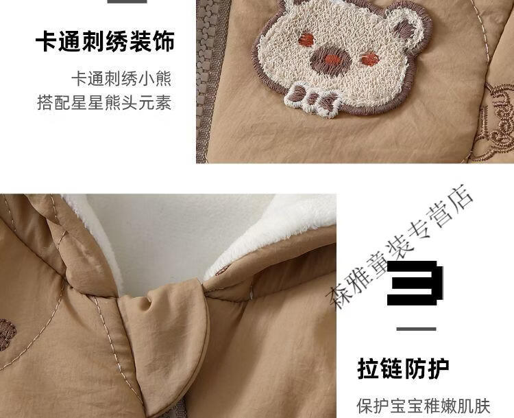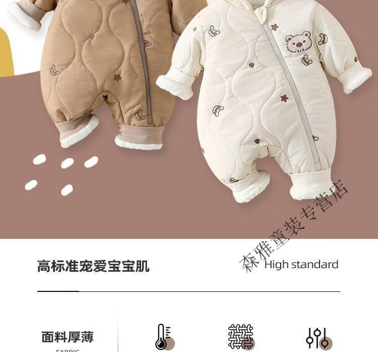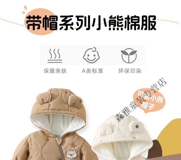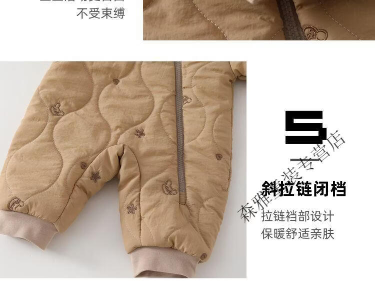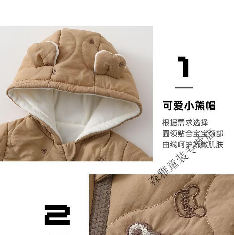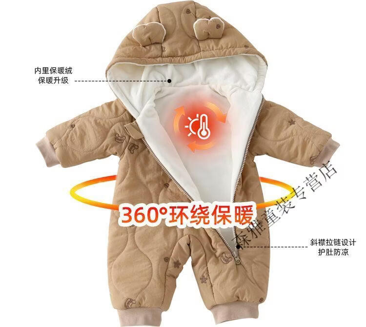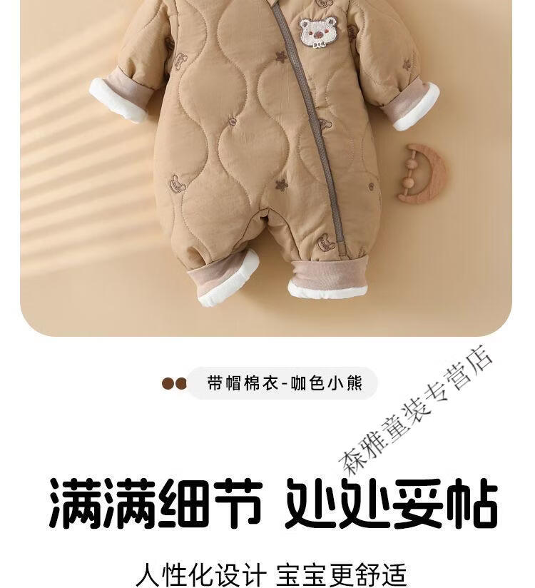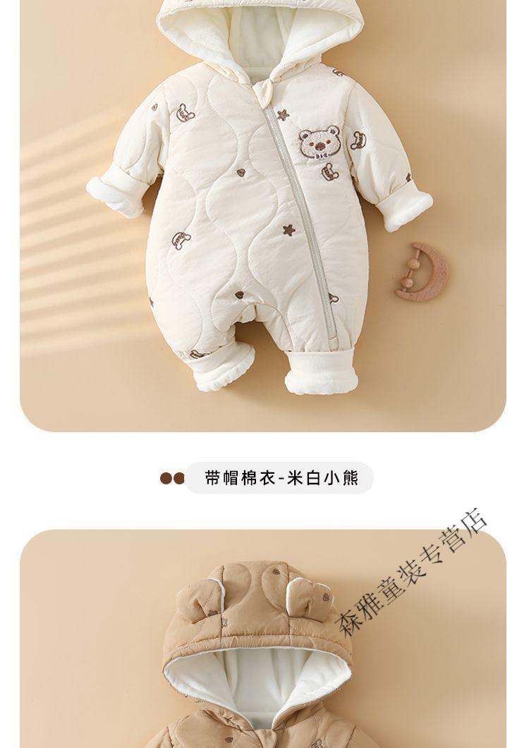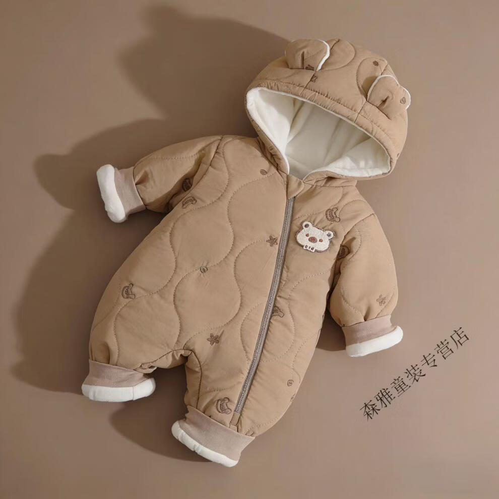 Mumuwu (mumuwu) baby winter jumpsuit, winter clothing, men's and women's cotton clothing, baby outing clothing, thickened and velvet winter clothing, warm clothing, hooded cotton clothing-Beige Bear 66cm, suitable for babies under 64cm