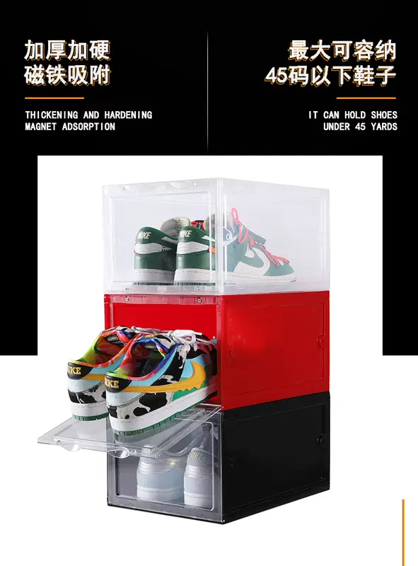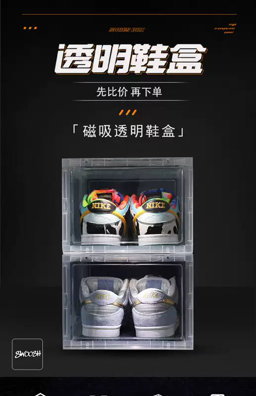 Yusenyi SWOOSH magnetic acrylic shoe box storage box transparent aj football shoes anti-oxidation plastic home shoe cabinet shoe wall magnetic black 8 pieces magnetic black 8 pieces 34x26x19cm 34 34x26x19cm